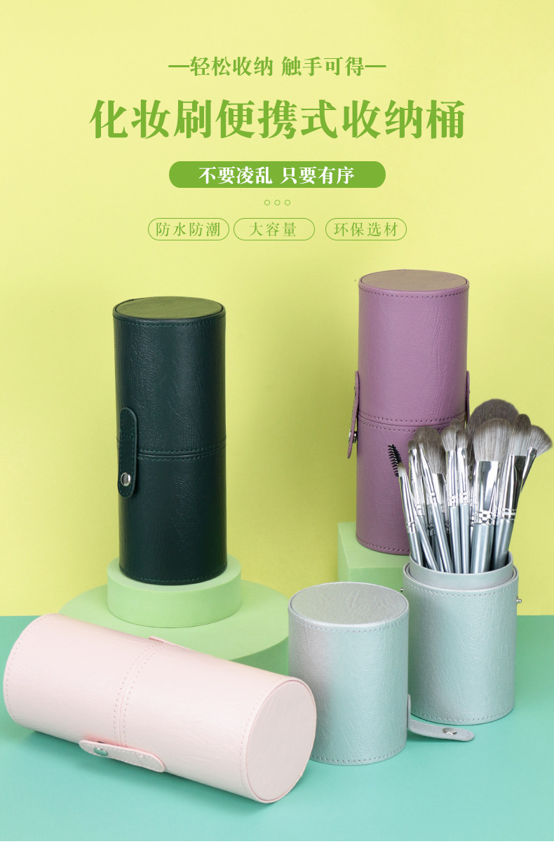 Barril de cepillo de maquillaje portátil nubes claras barril de escritorio pu piel de pie polvo de pie portátil de gran capacidad en stock