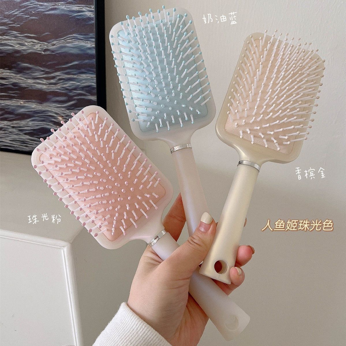 Almohadilla de aire de sirena para mujer, hogar, perlado antiestático, bolsa de aire grande para estudiantes, peine de masaje, peine de bolsa de aire para niñas, peine grande