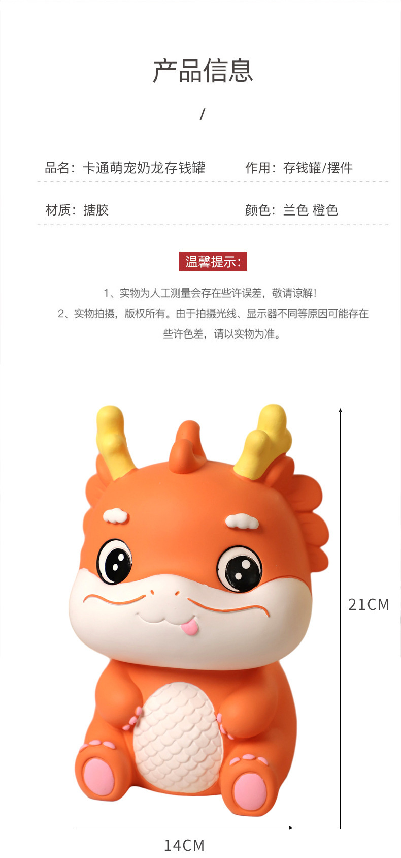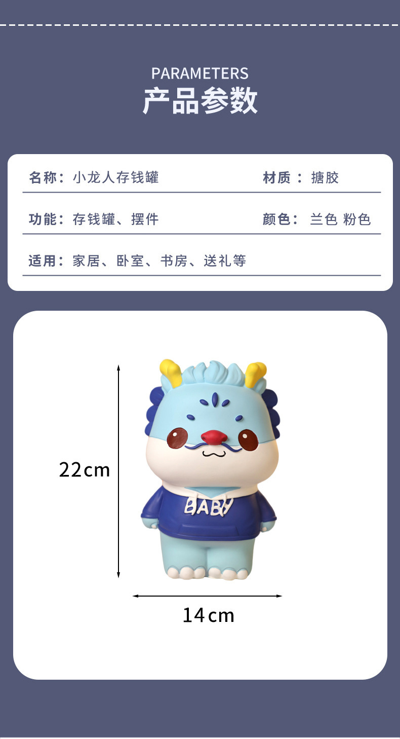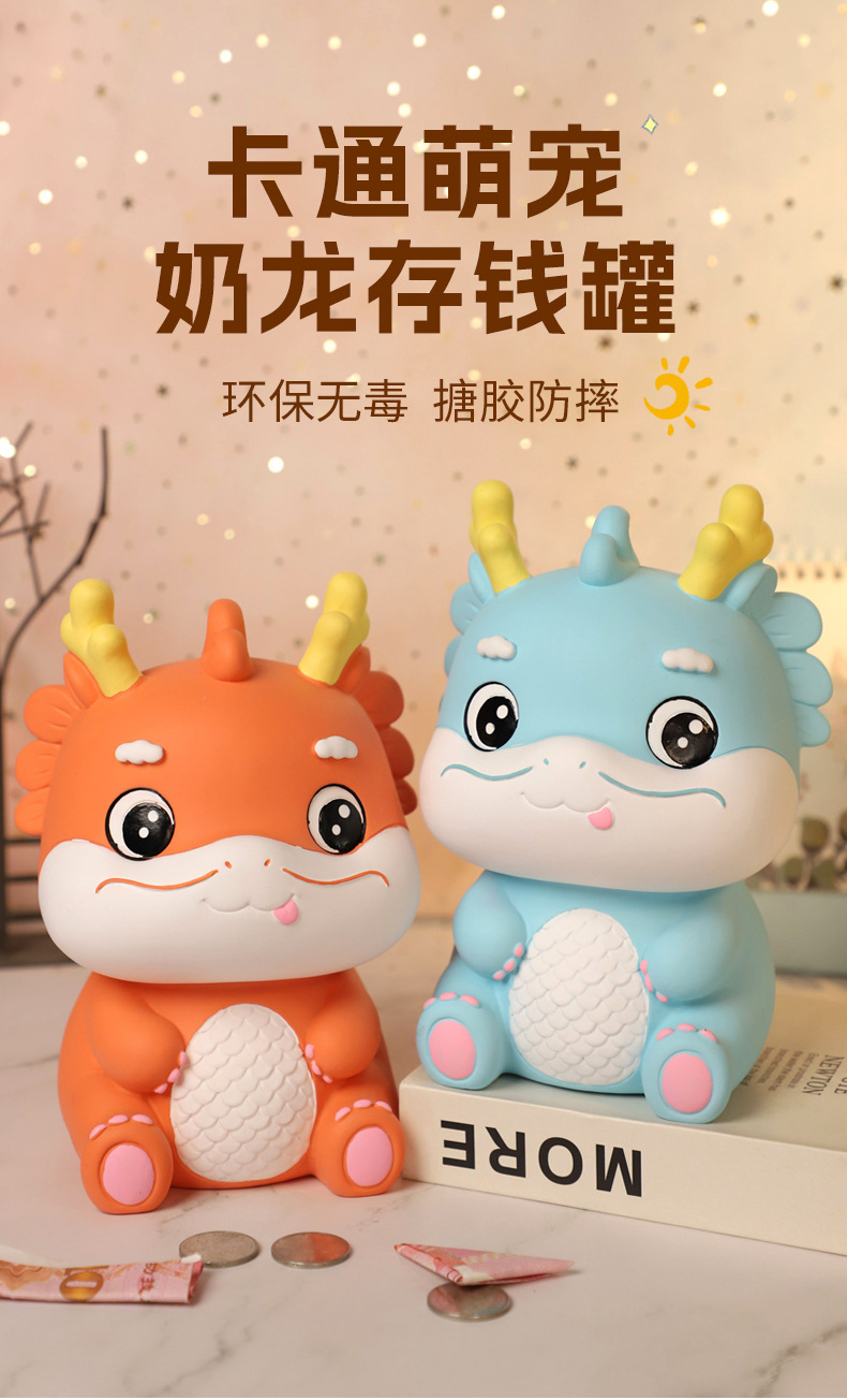 Dibujos animados lindo mascota dragón año Piggy Bank resistente a la caída resistente a los golpes Caja de Ahorro regalo decoración de escritorio muñeca