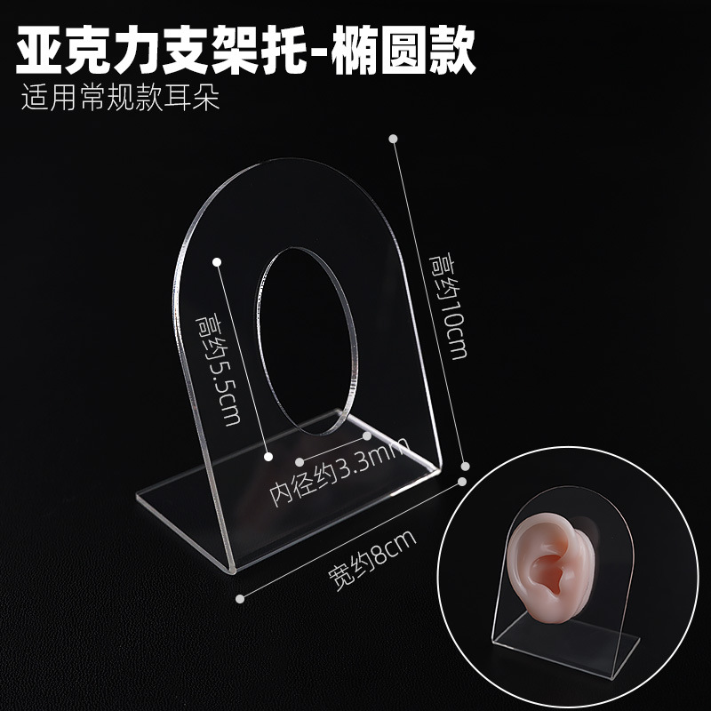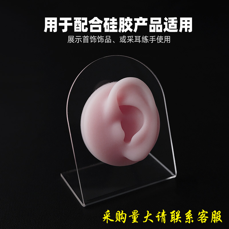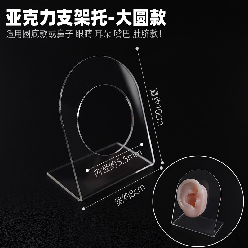 Acrílico transparente soporte simulación modelo de oreja de silicona fondo redondo nariz de silicona ojos lengua a juego