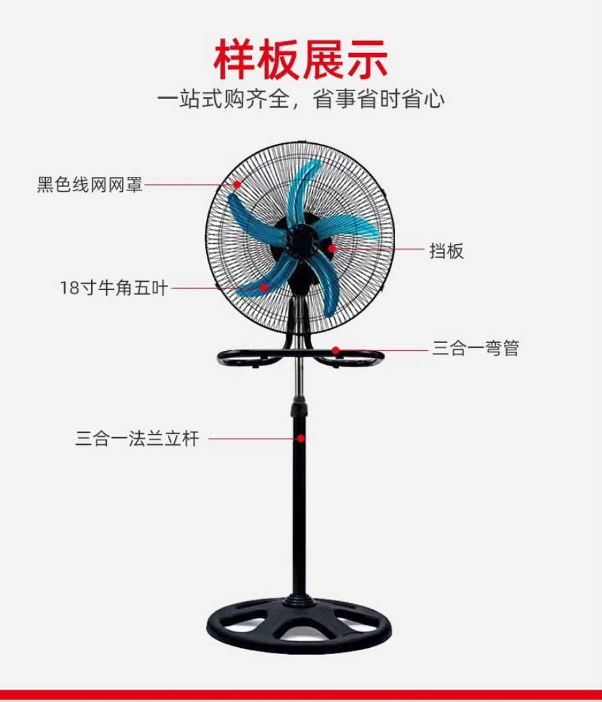 Ventilador eléctrico de comercio exterior personalizado transfronterizo de la ciudad de Zhongshan Ventilador de piso industrial de 18 pulgadas Ventilador de cabeza tres en uno Ventilador vertical