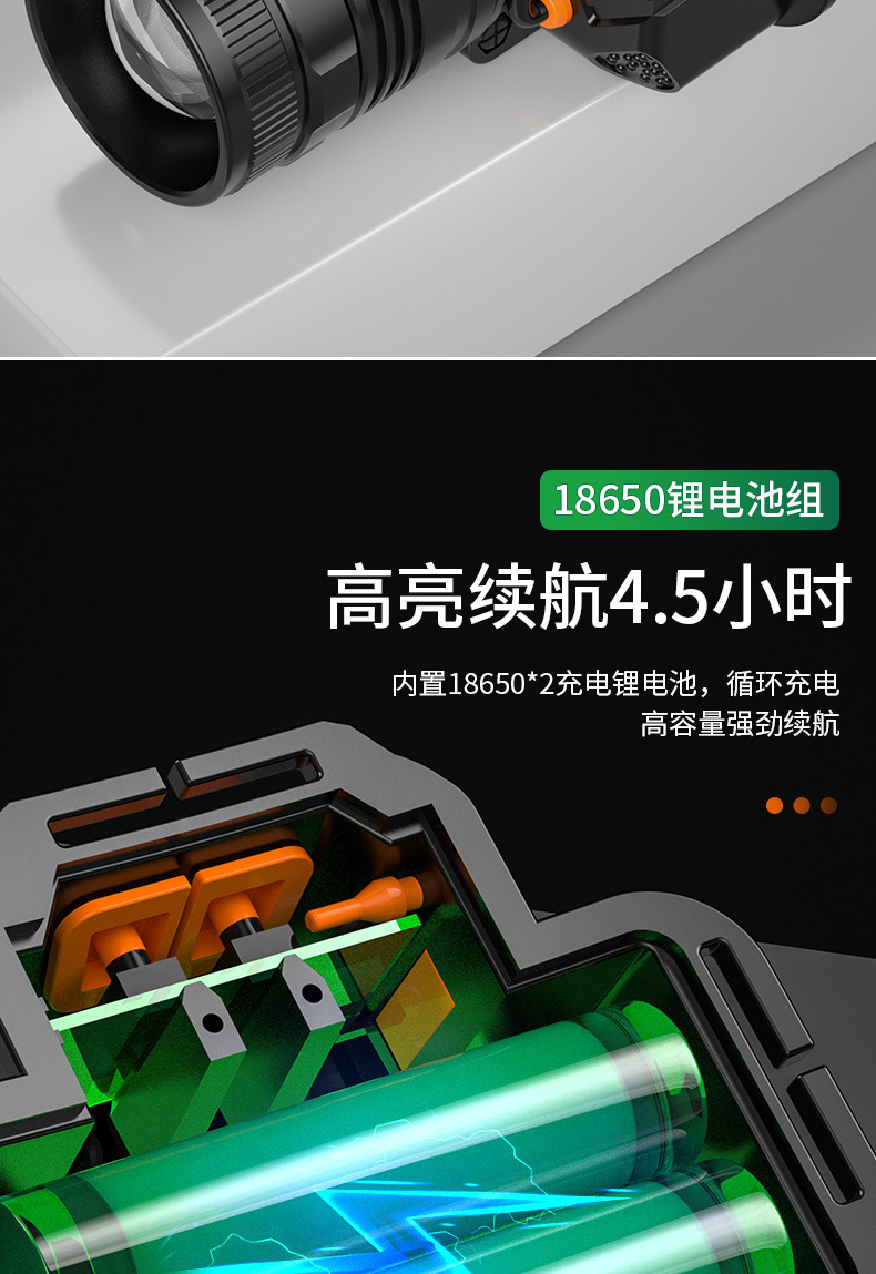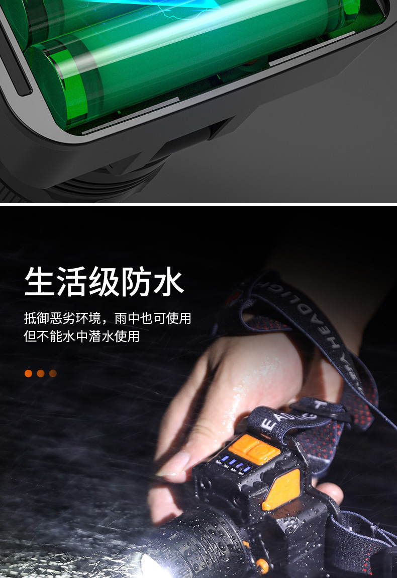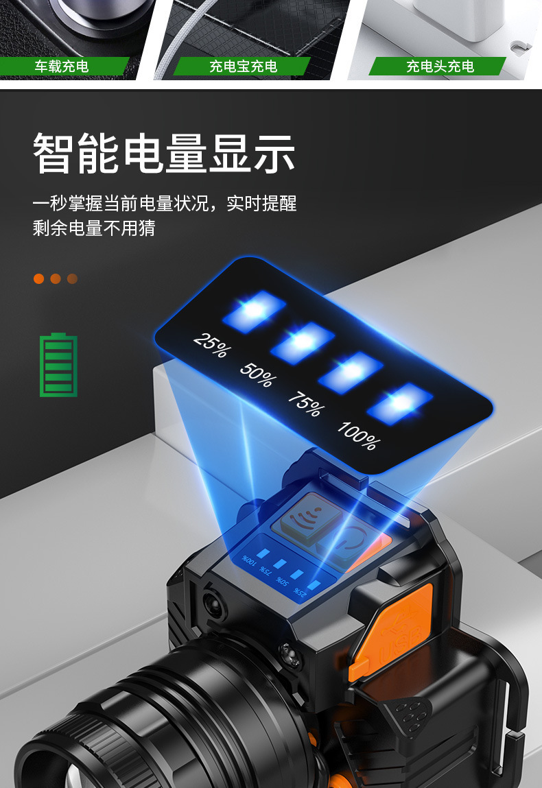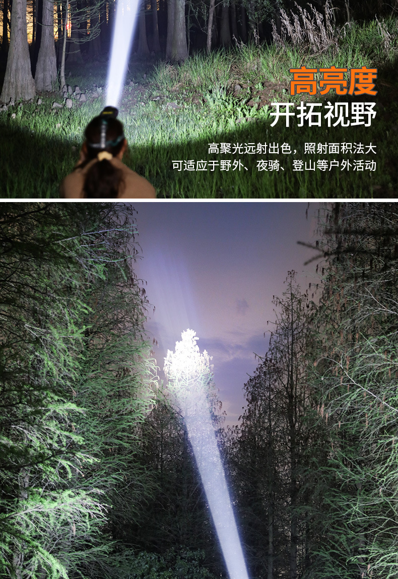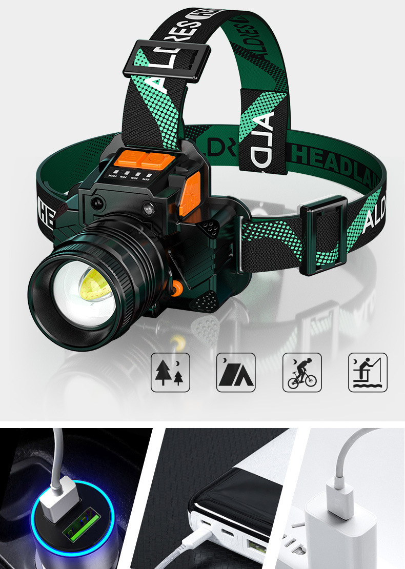Fuerte luz Super brillante impermeable carga larga resistencia LED al aire libre cabeza-montado pesca noche pesca zoom inducción faro al por mayor