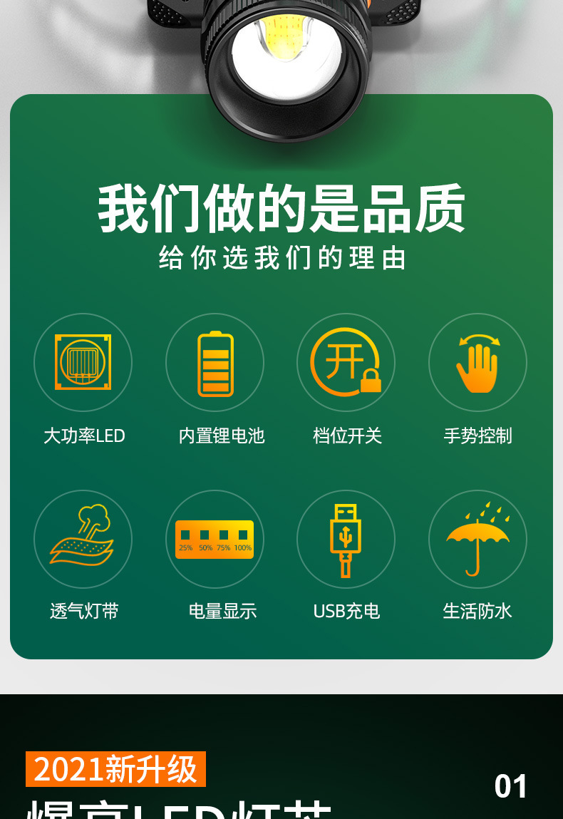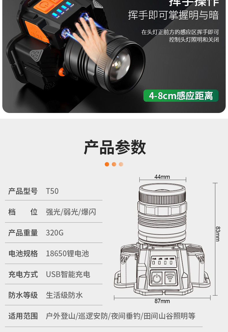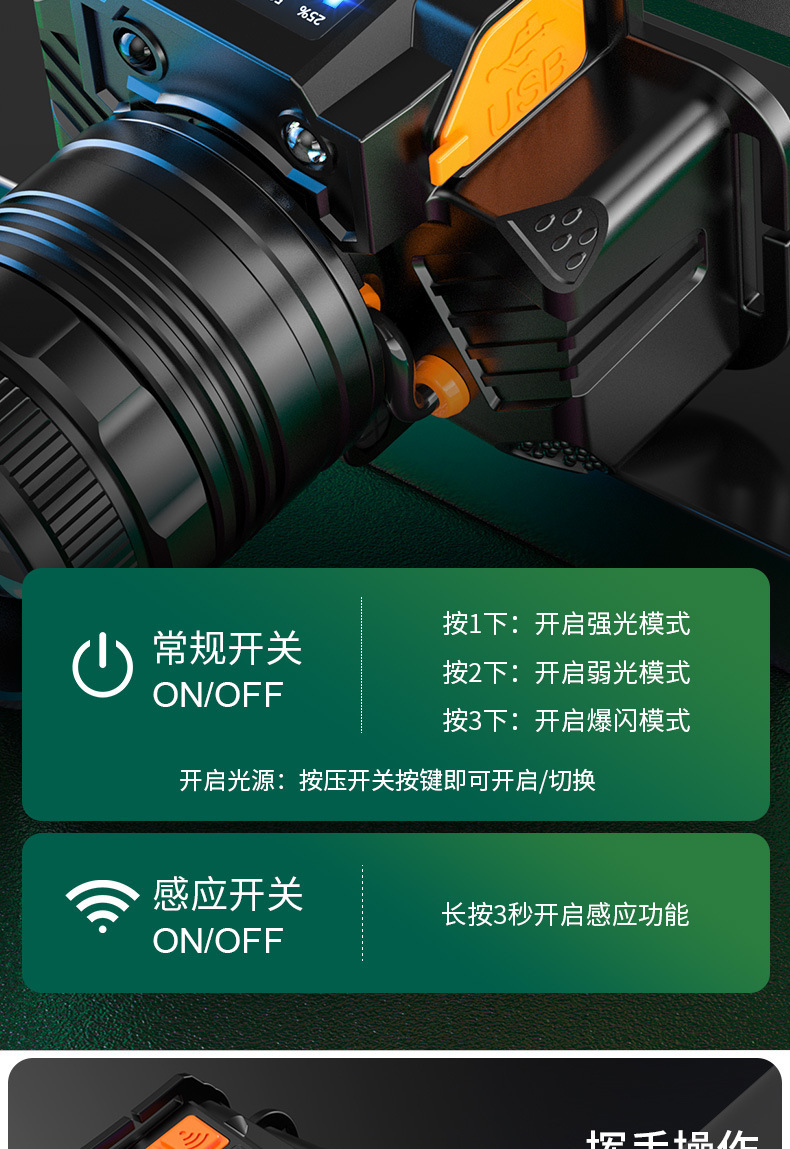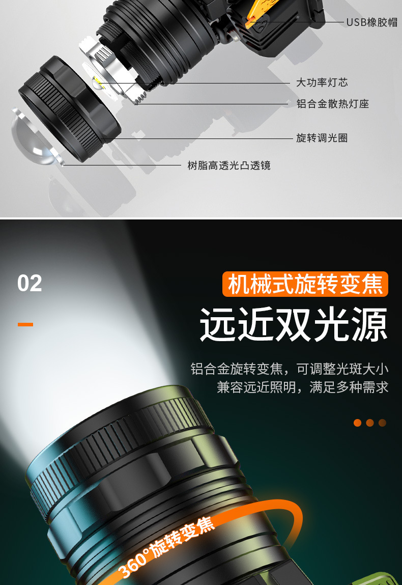 Fuerte luz Super brillante impermeable carga larga resistencia LED al aire libre cabeza-montado pesca noche pesca zoom inducción faro al por mayor