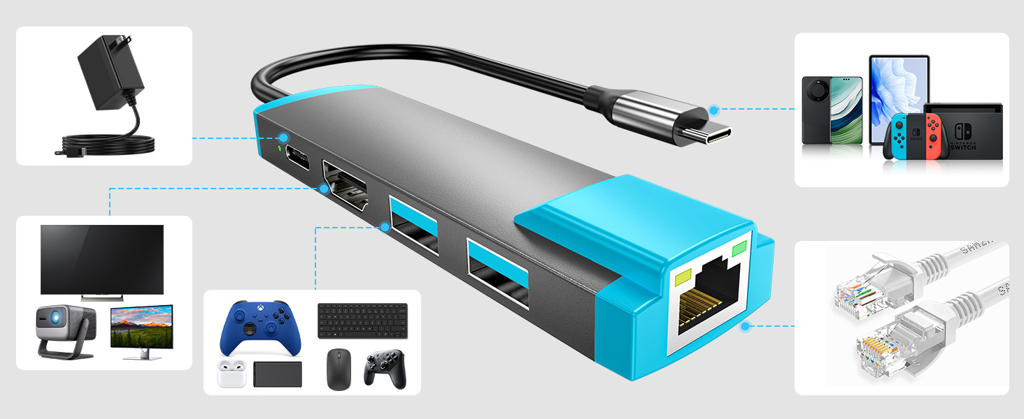 Switch2 Host Video Converter Gigabit Dock USB HUB Tablet PC de escritorio Teléfono