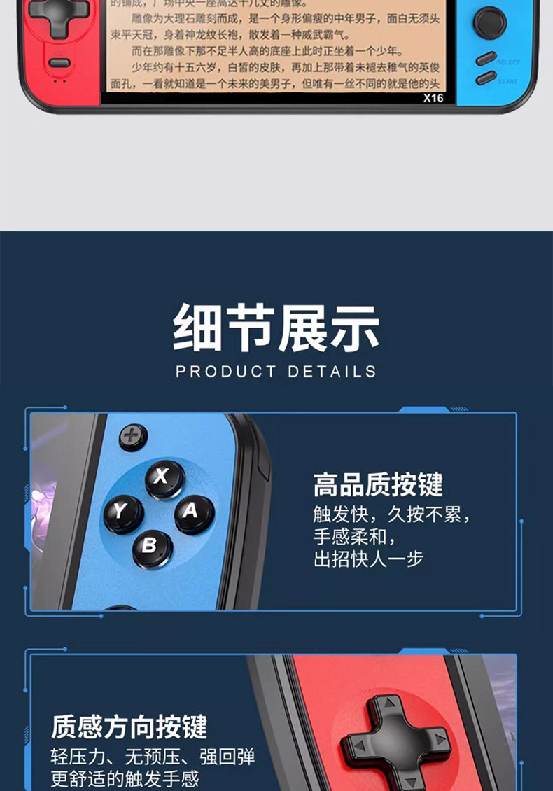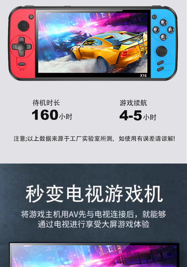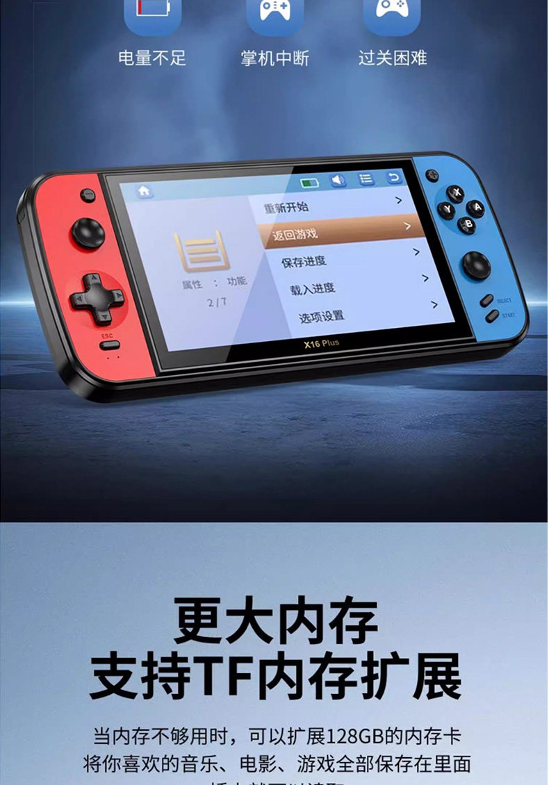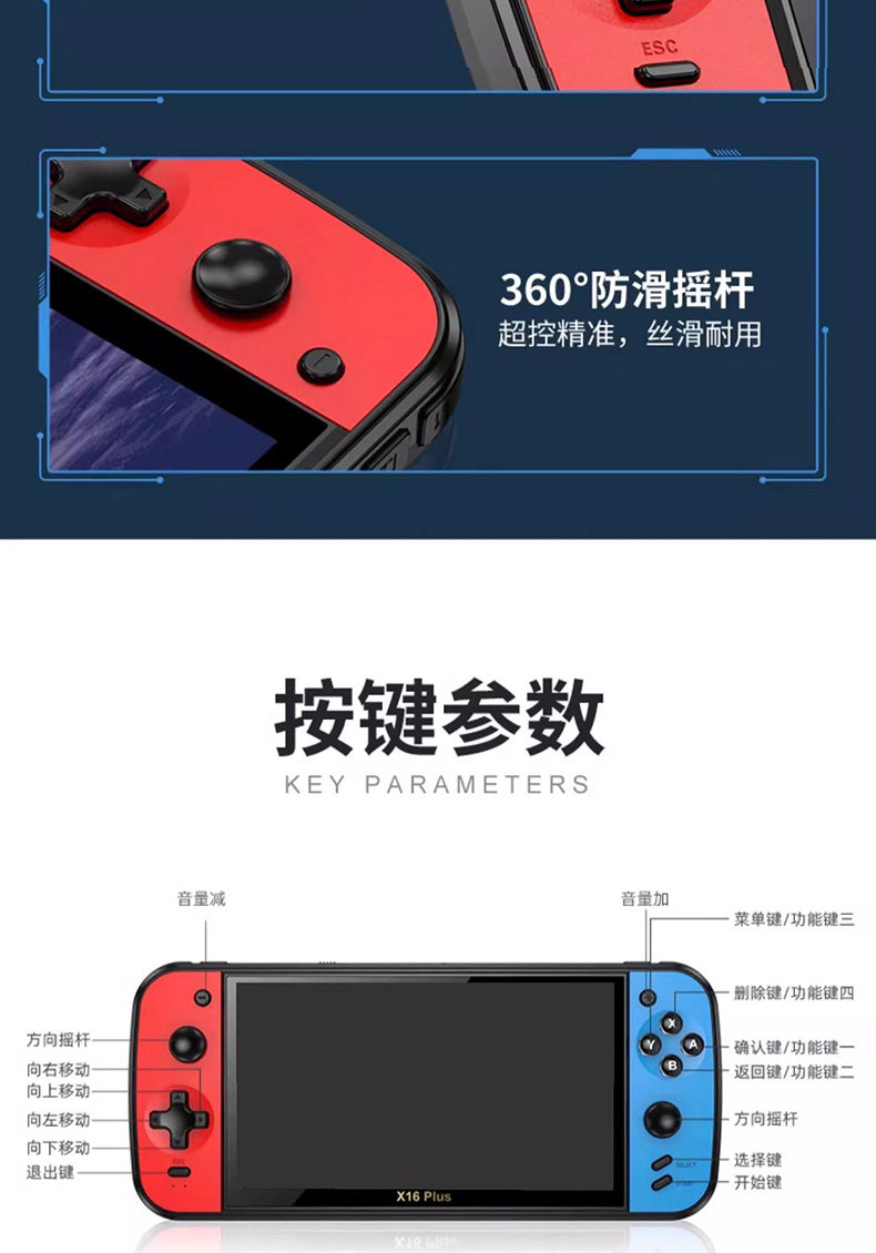 X16plus consola de juegos de mano de 7 pulgadas arcade nostálgica fc doble mano Tetris manejo inalámbrico transfronterizo