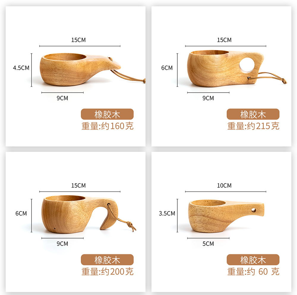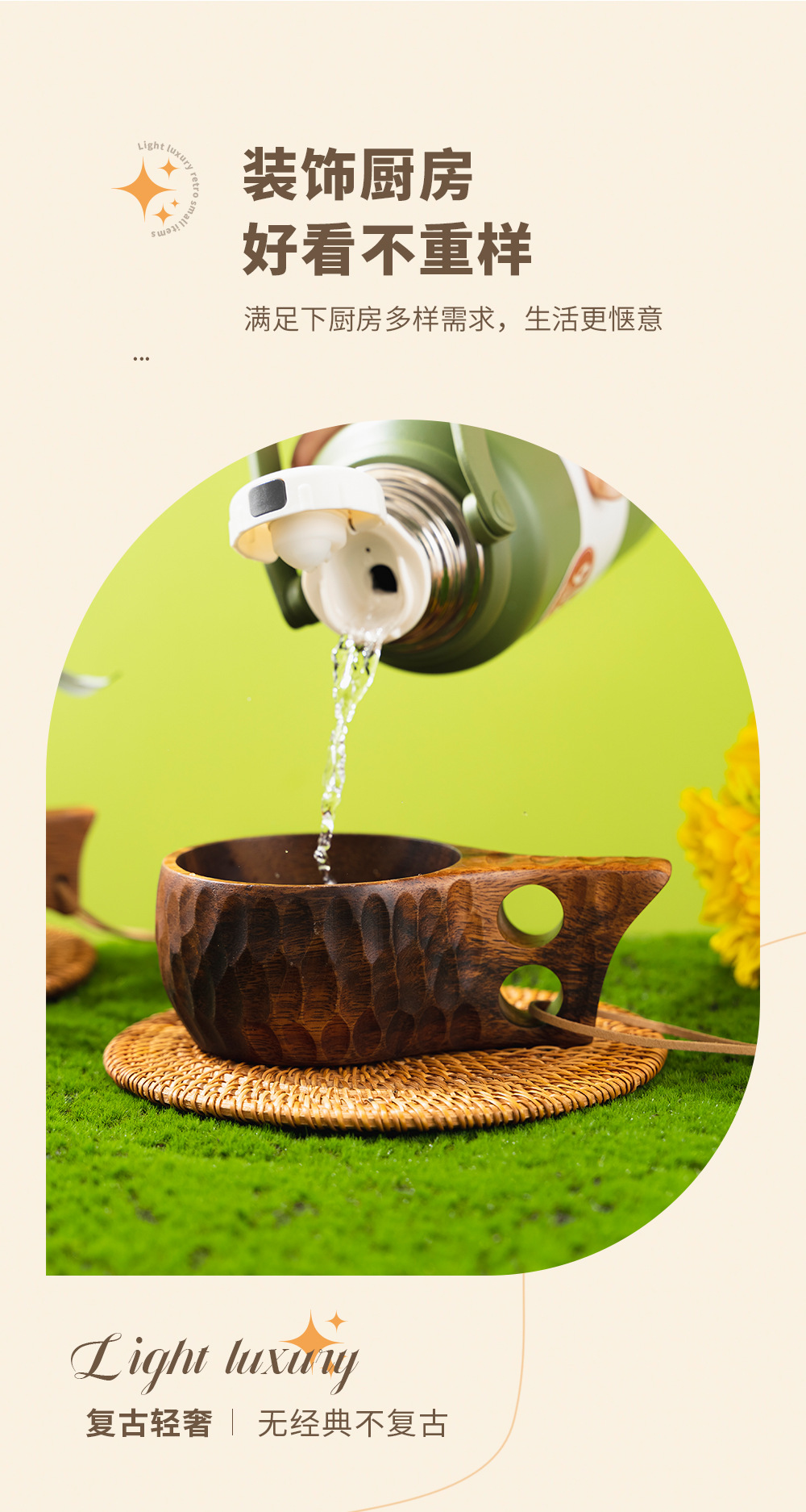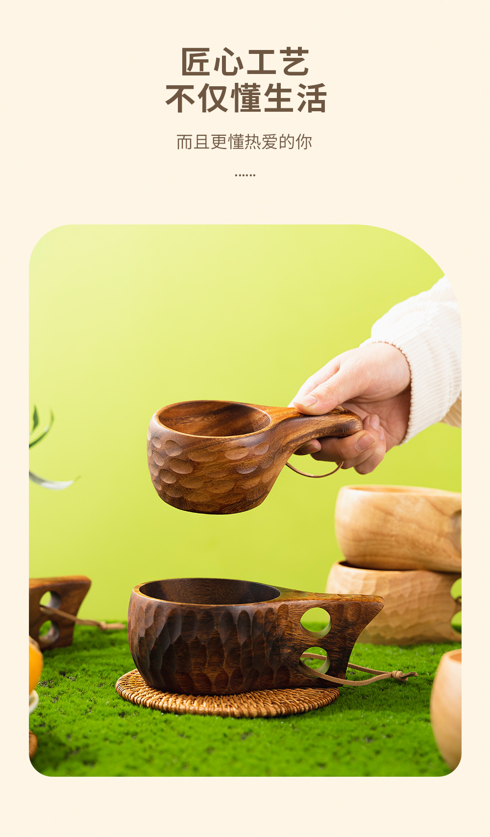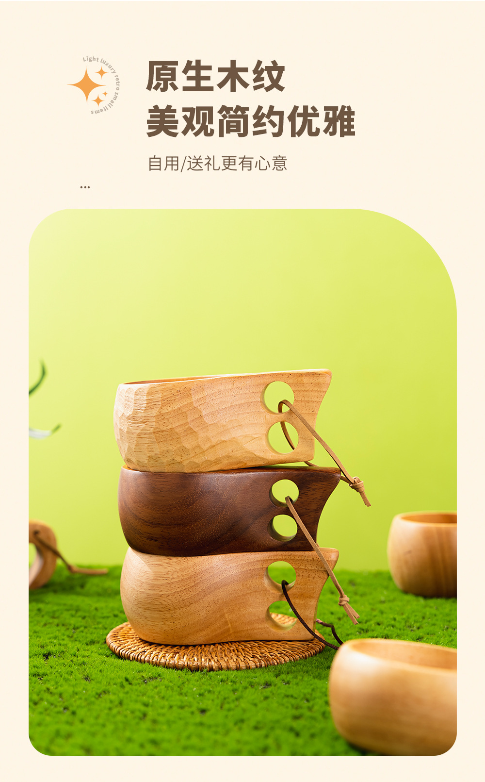 Taza de madera maciza nórdica creativa Taza de leche de desayuno para el hogar Ceremonia del té de madera Camping retro Taza de café portátil