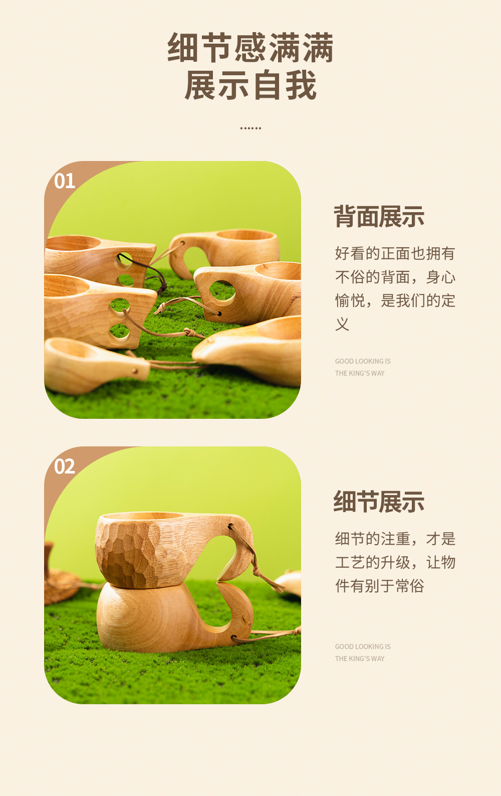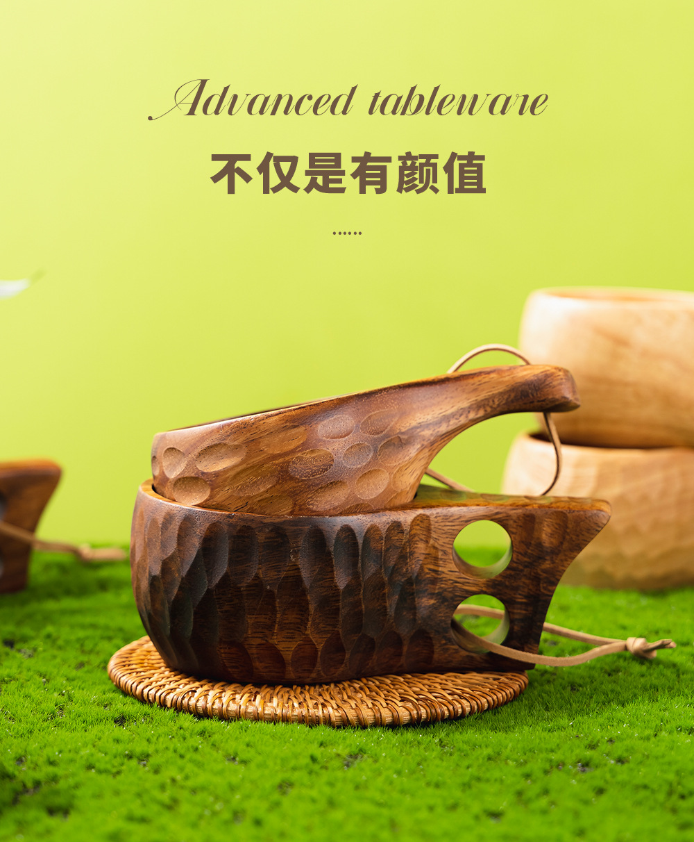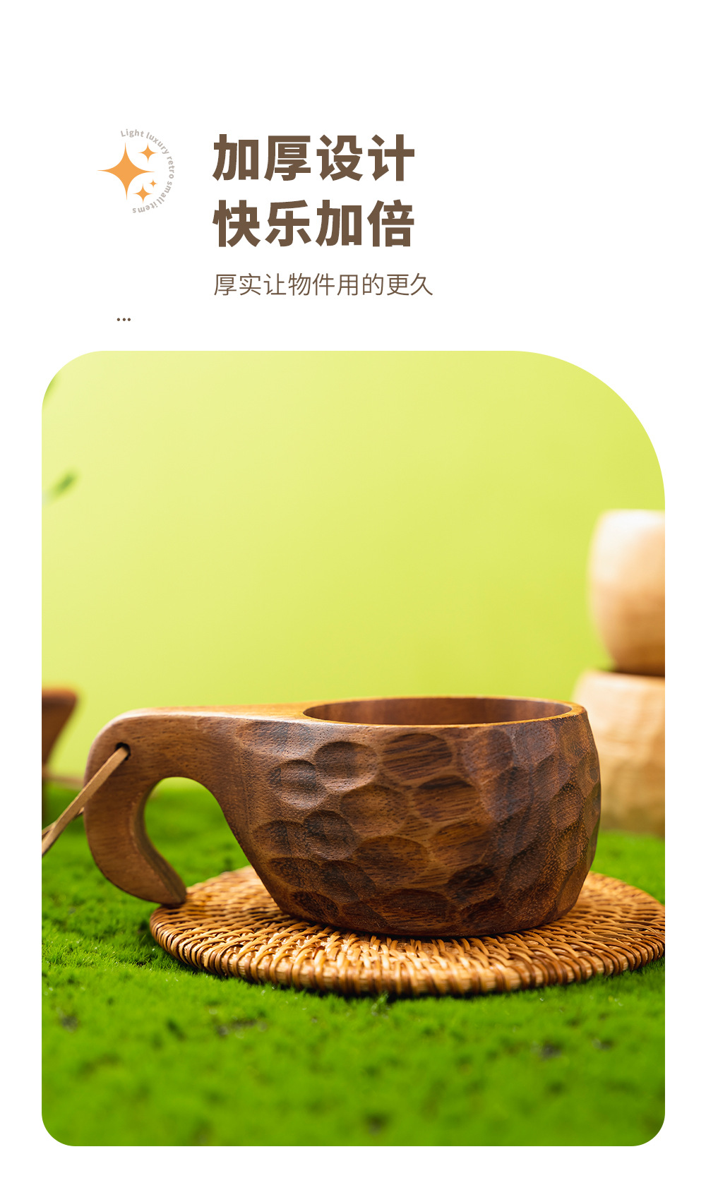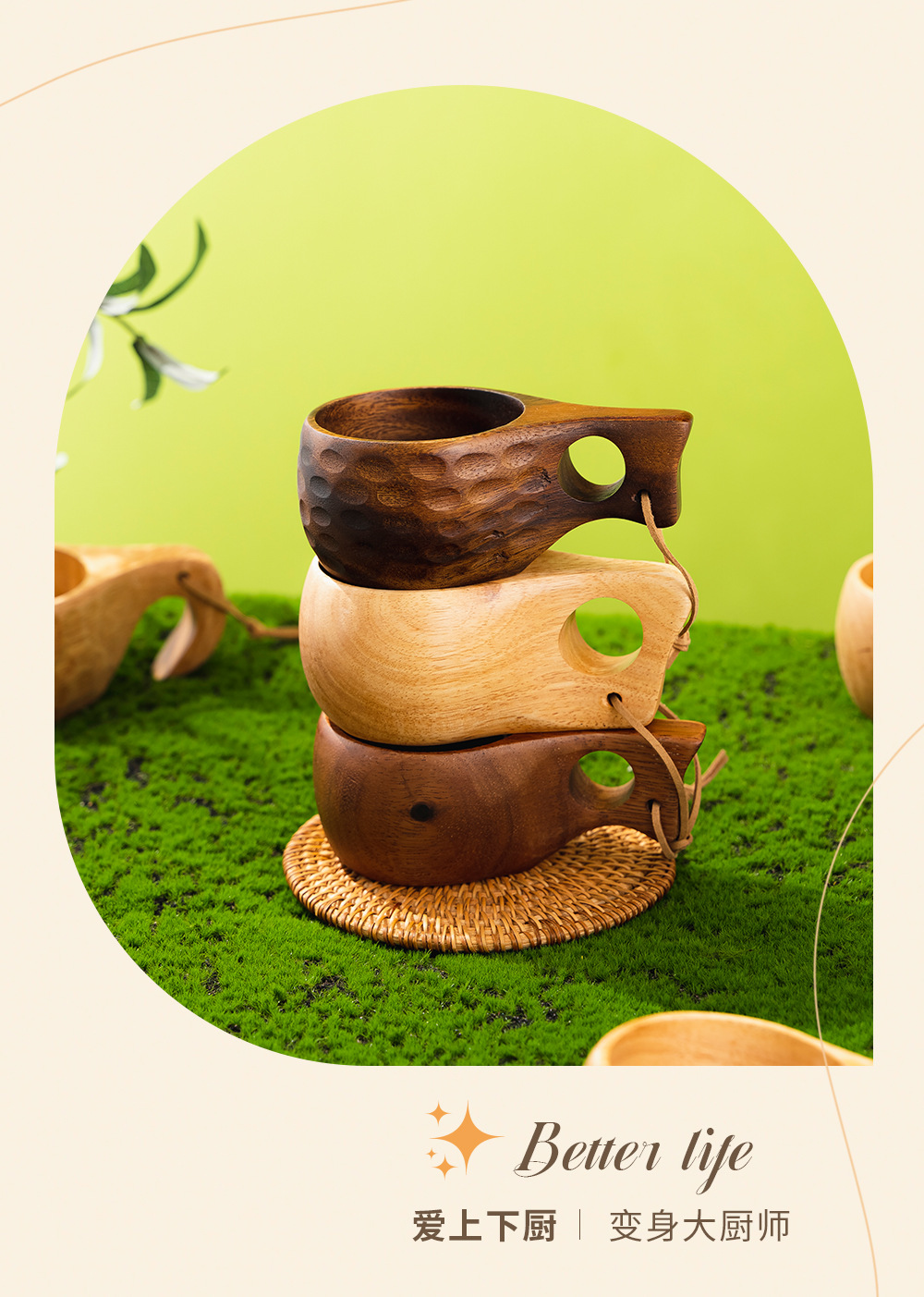 Taza de madera maciza nórdica creativa Taza de leche de desayuno para el hogar Ceremonia del té de madera Camping retro Taza de café portátil