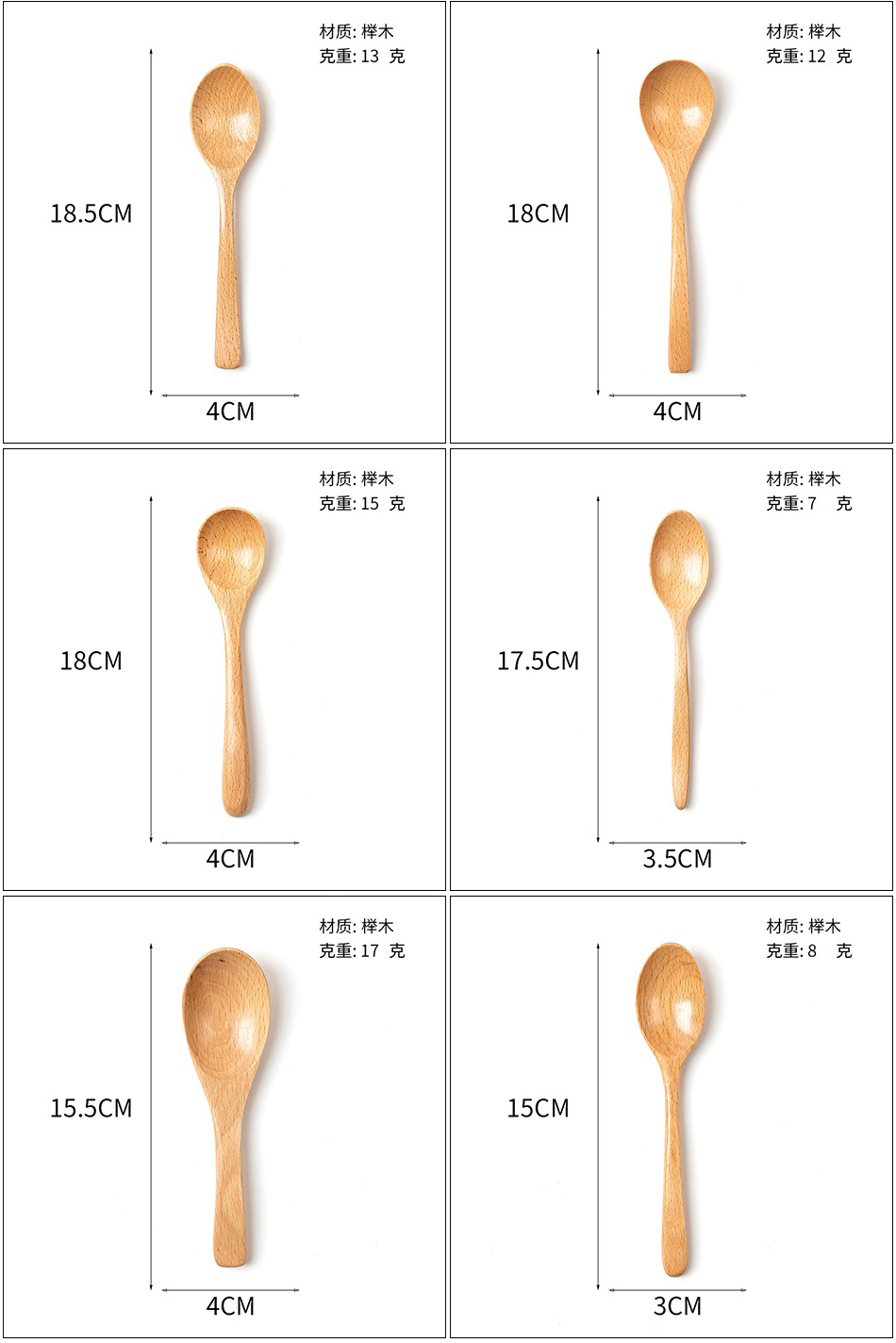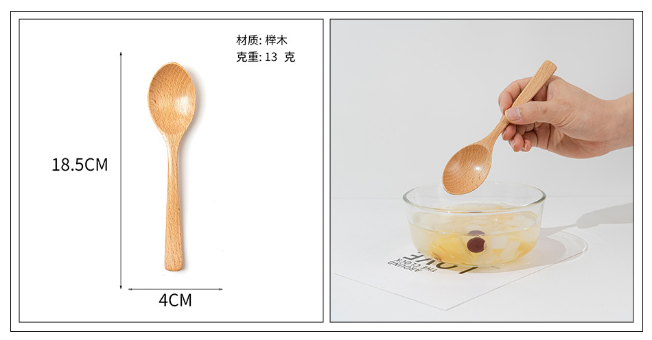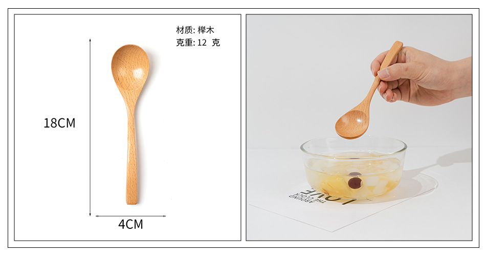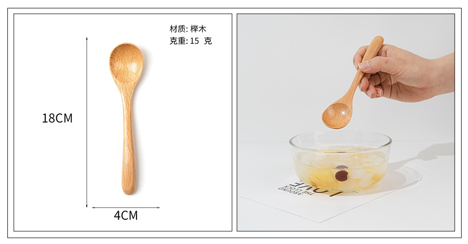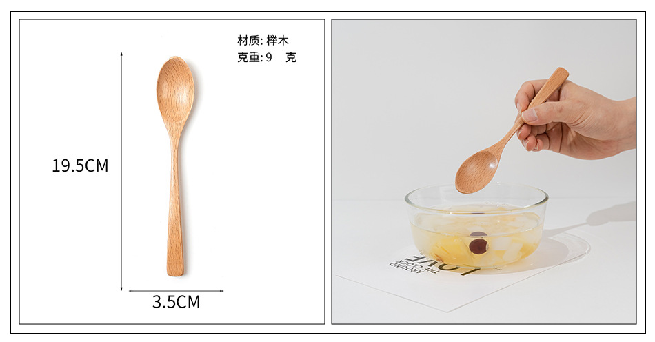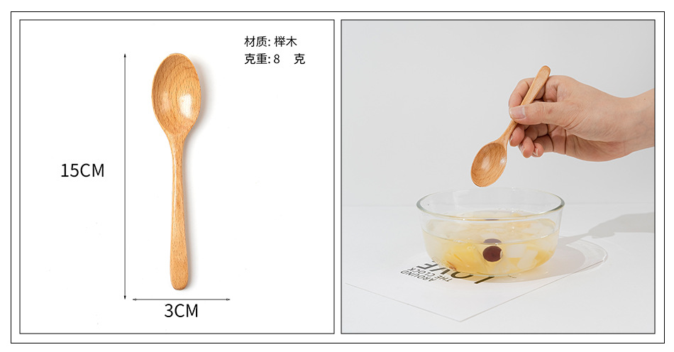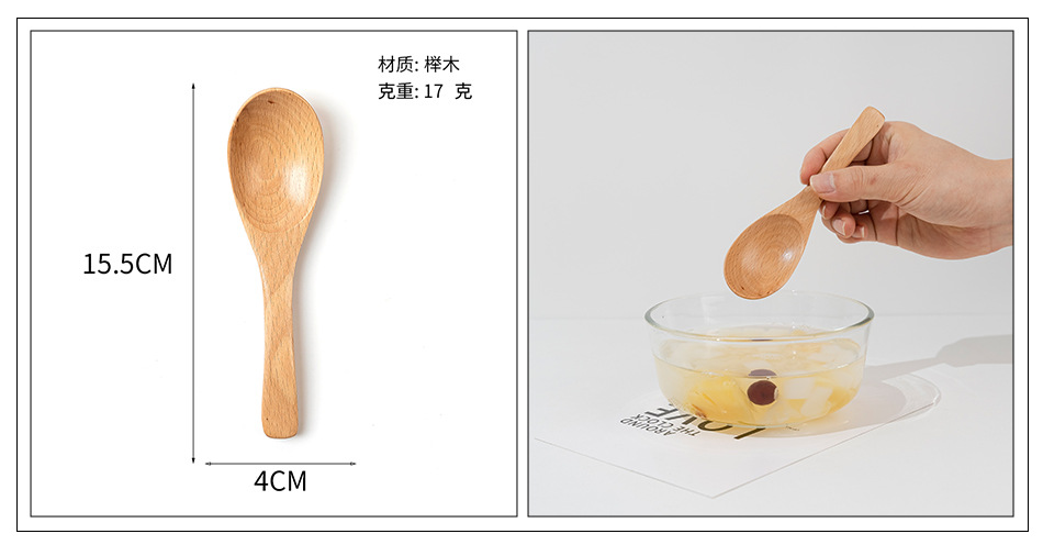 Cuchara pequeña japonesa de haya Vajilla de madera larga y corta para niños Cuchara de cuchara de color sólido Cuchara de sopa mezcladora de mango largo portátil al por mayor