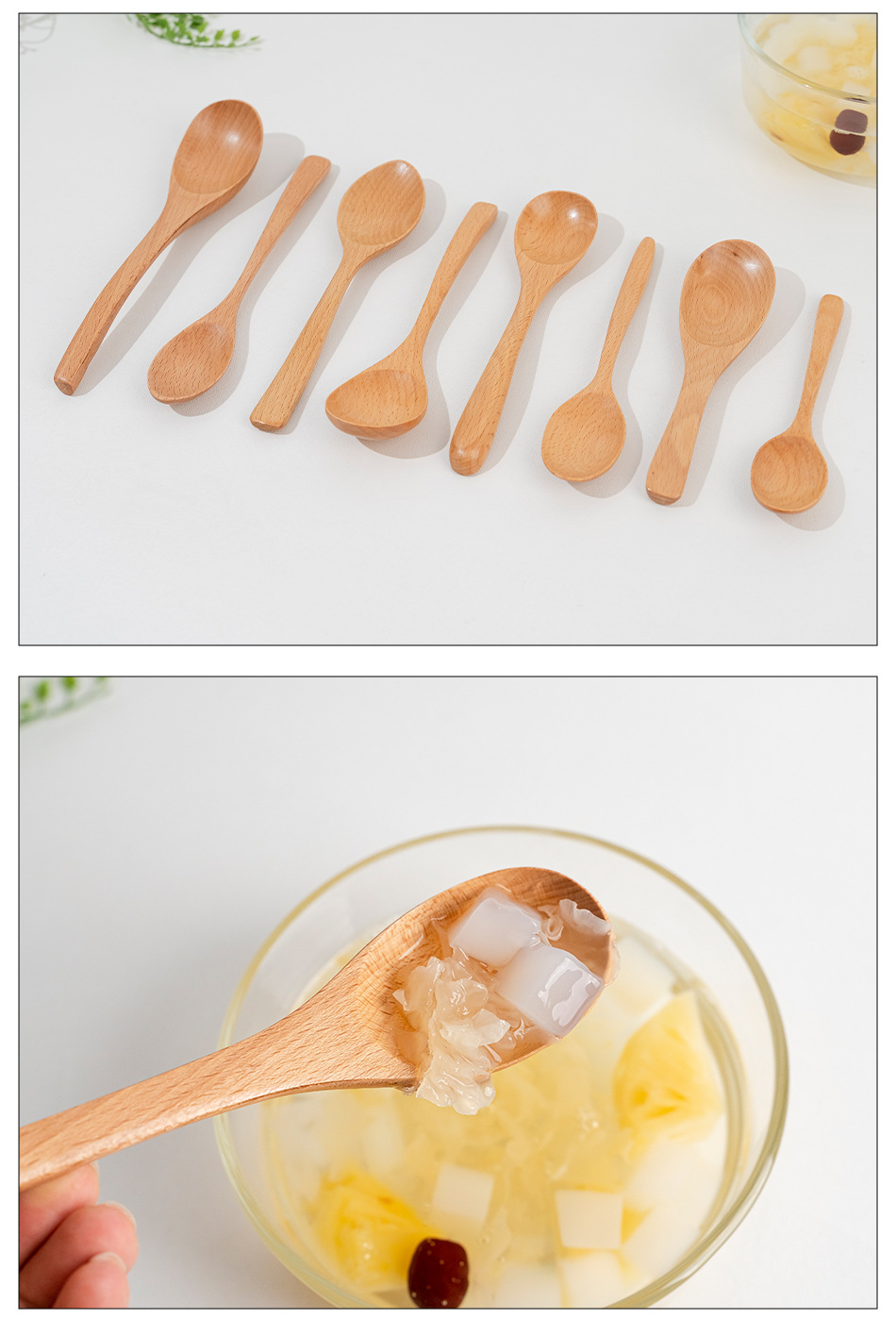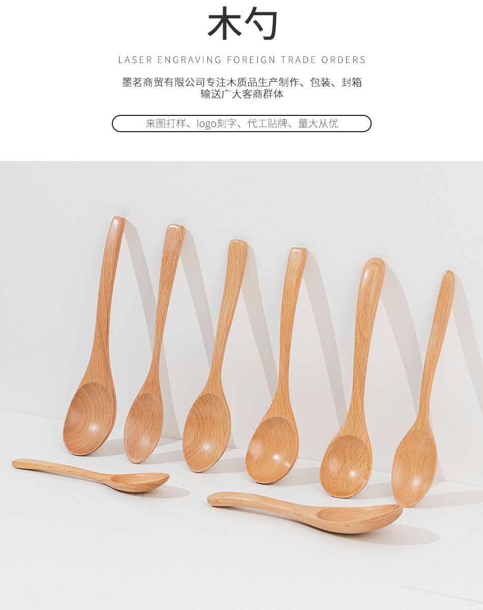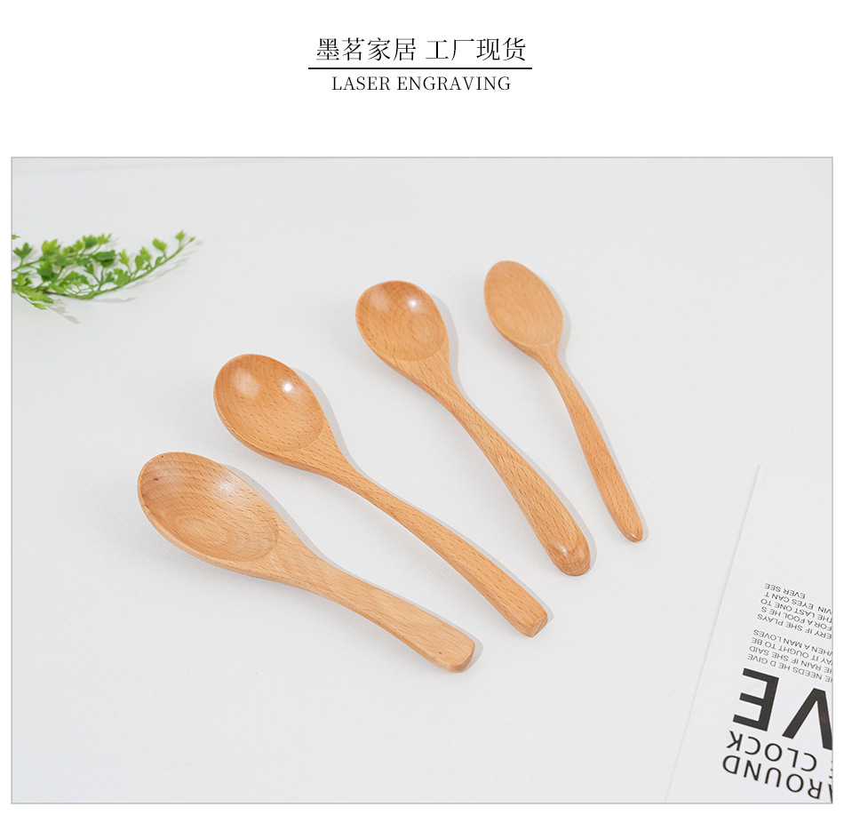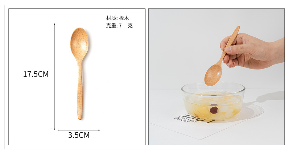 Cuchara pequeña japonesa de haya Vajilla de madera larga y corta para niños Cuchara de cuchara de color sólido Cuchara de sopa mezcladora de mango largo portátil al por mayor