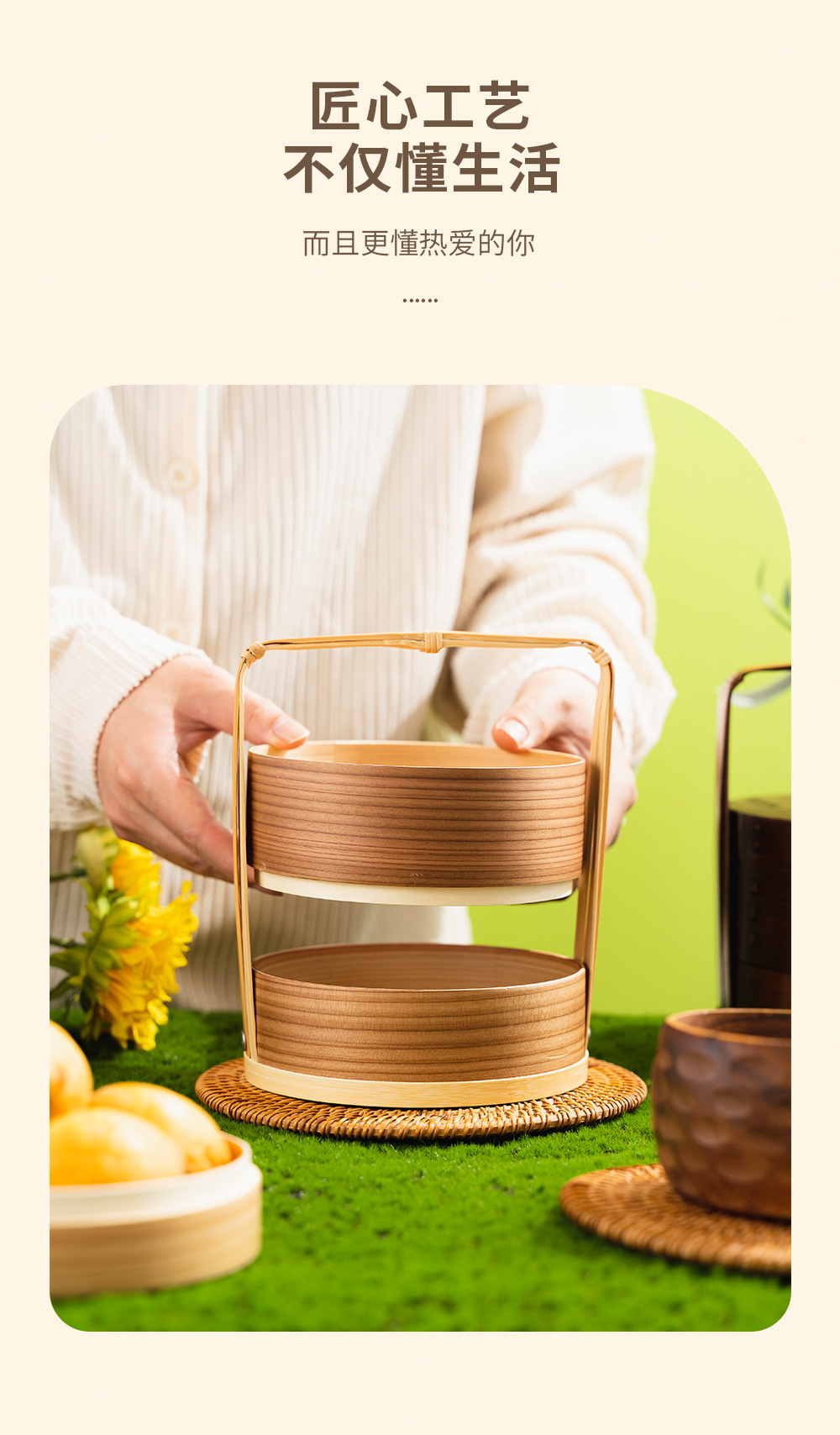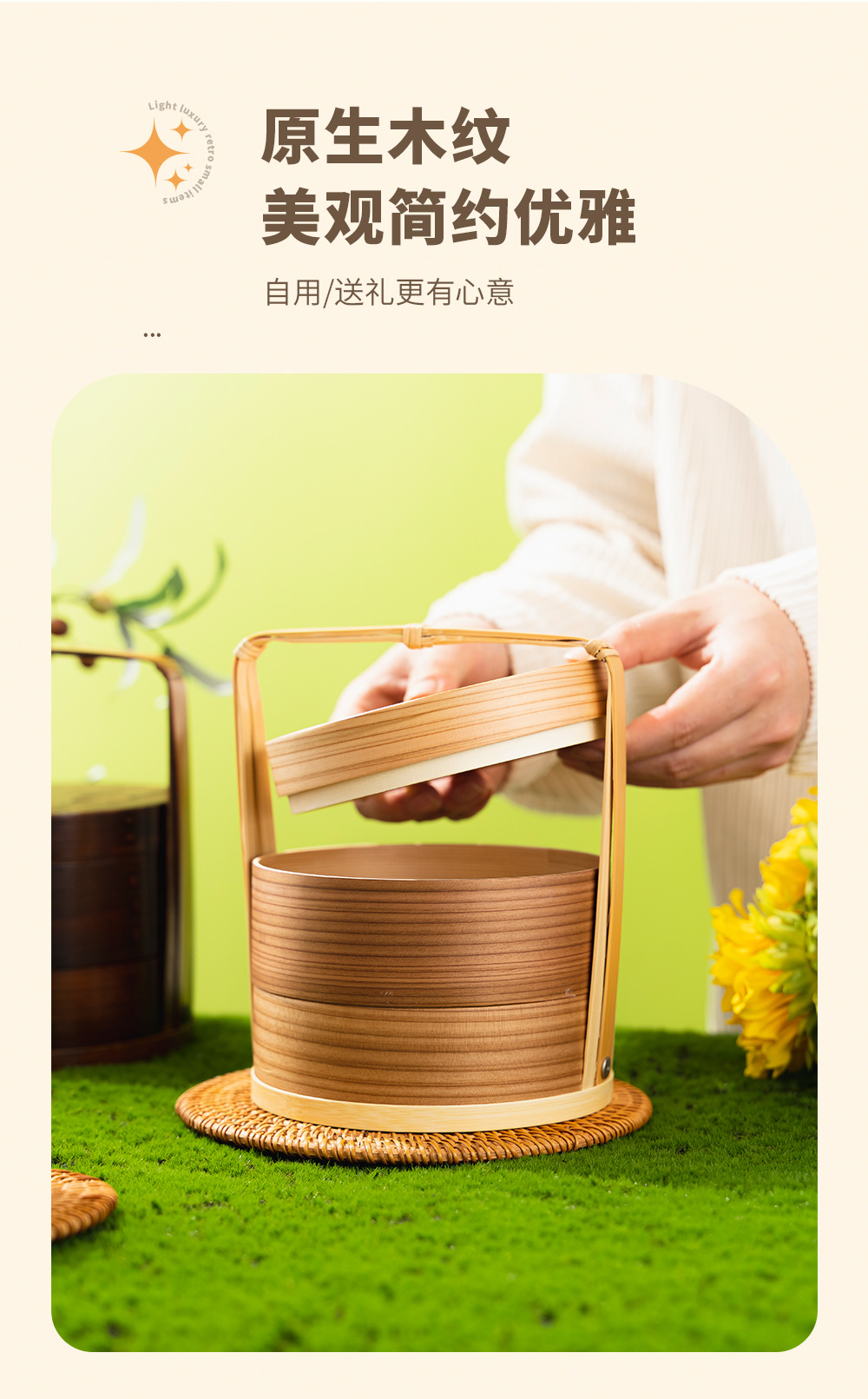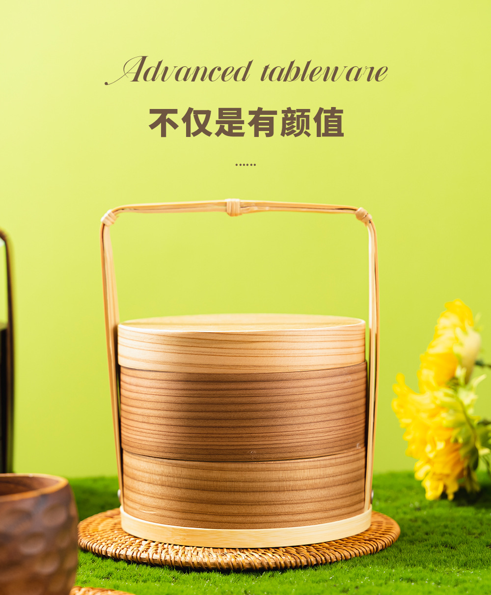 Fábrica al por mayor cesta de mano de madera para el hogar en capas caja de fruta fresca vintage caja de pastelería japonesa vajilla