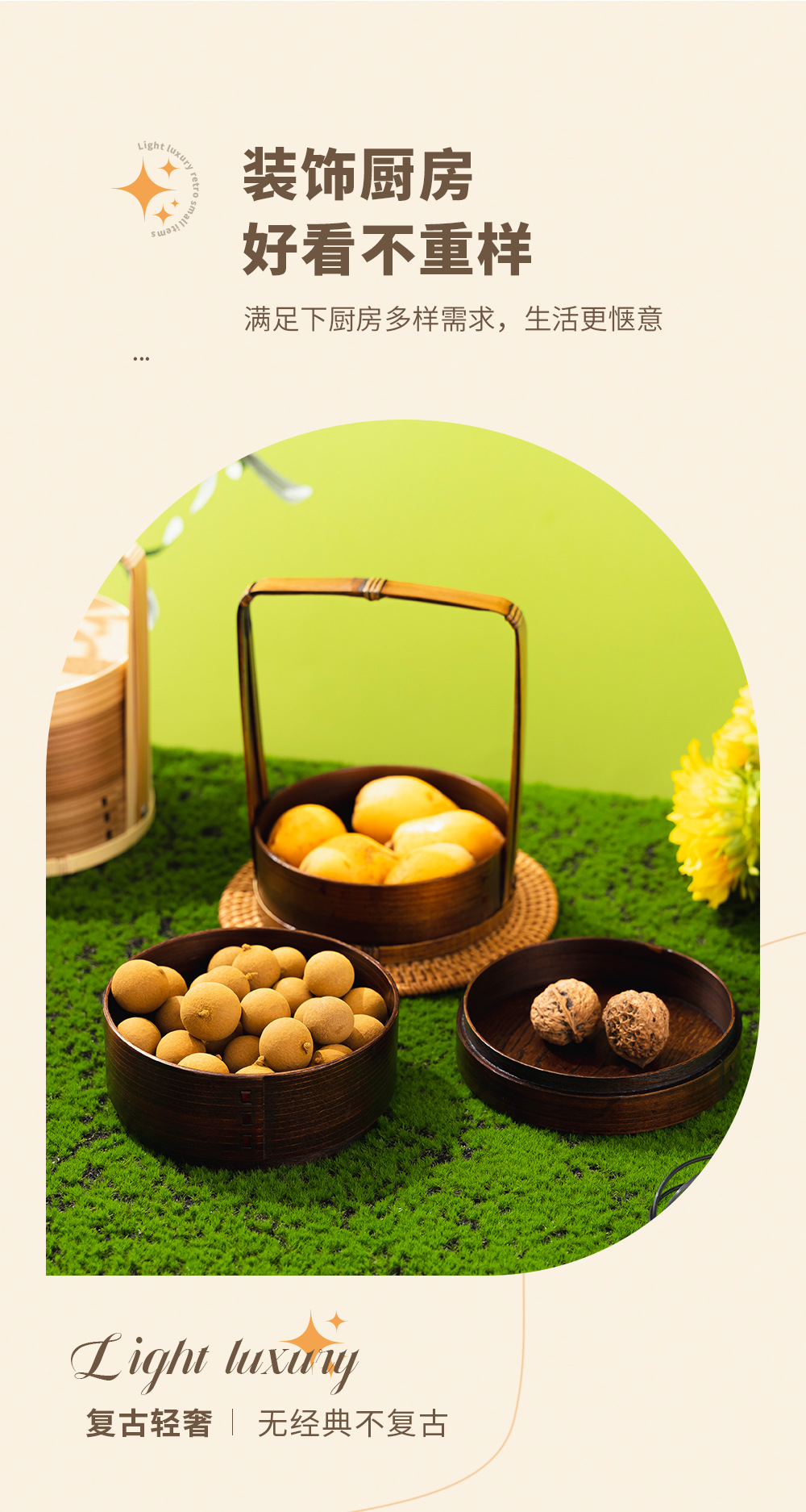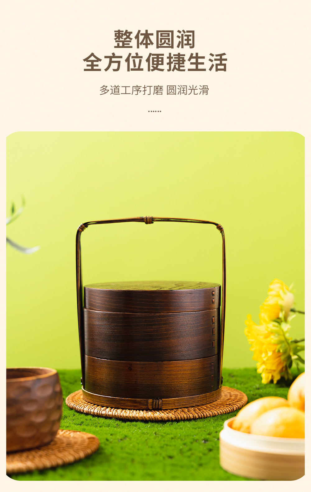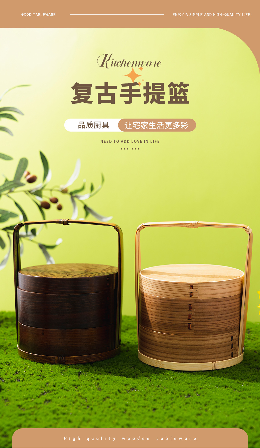 Fábrica al por mayor cesta de mano de madera para el hogar en capas caja de fruta fresca vintage caja de pastelería japonesa vajilla