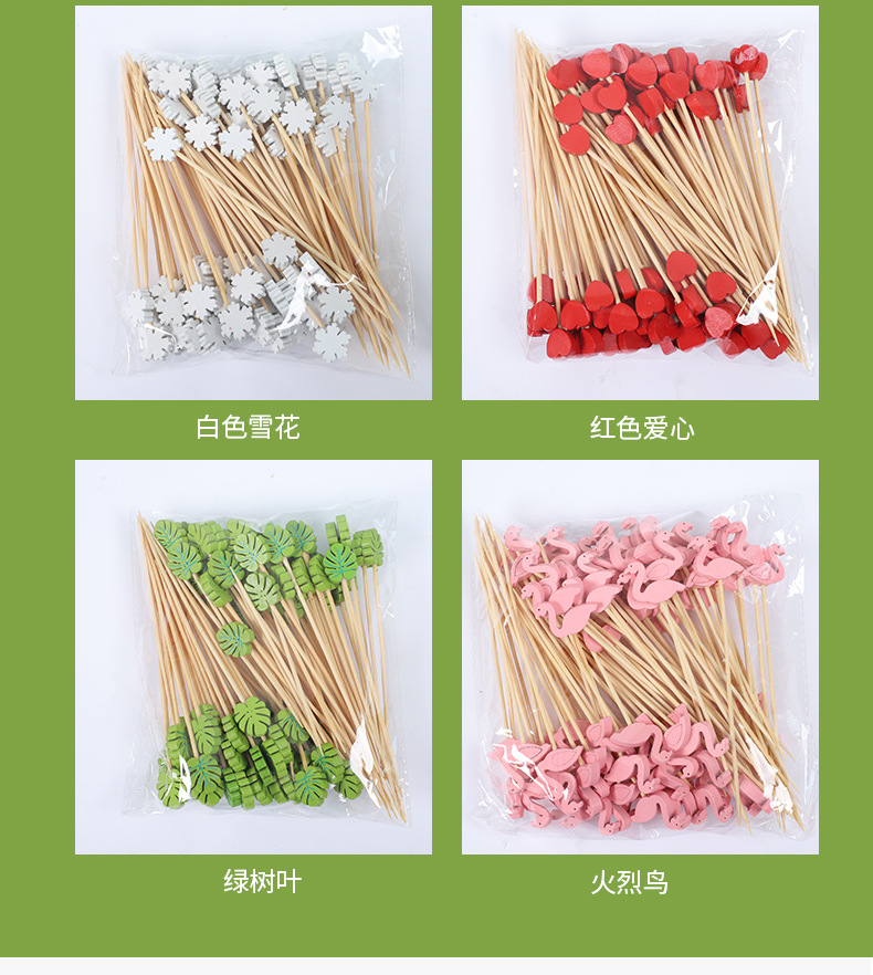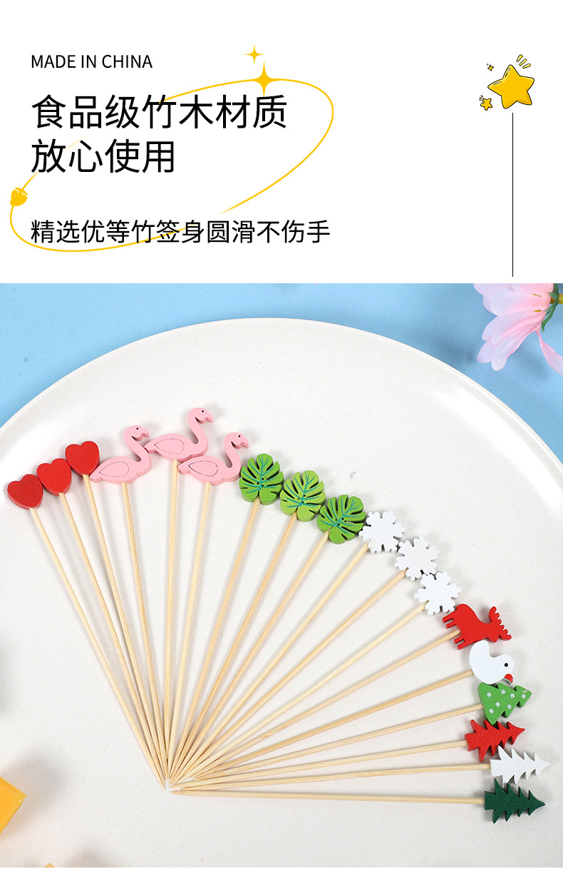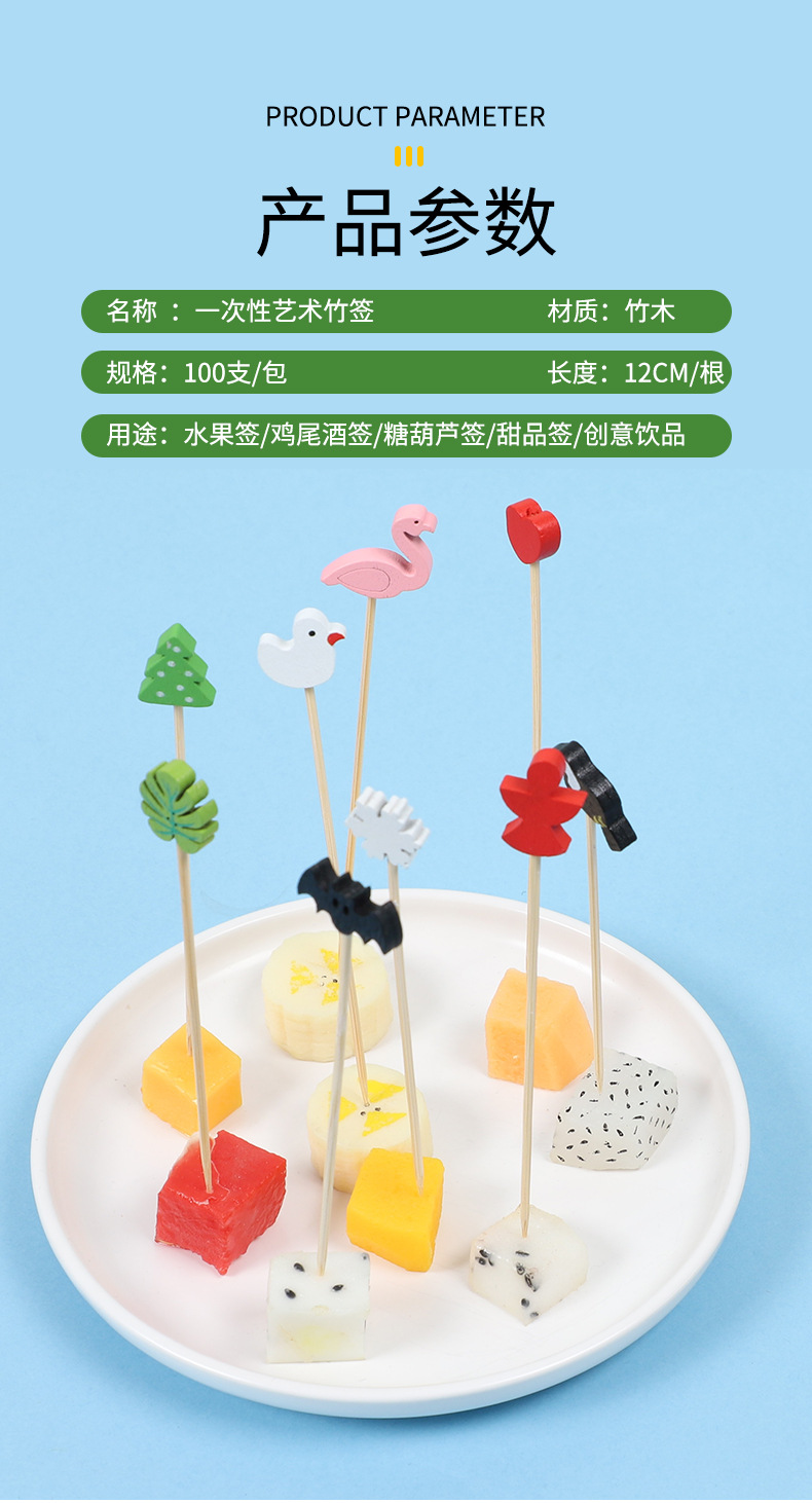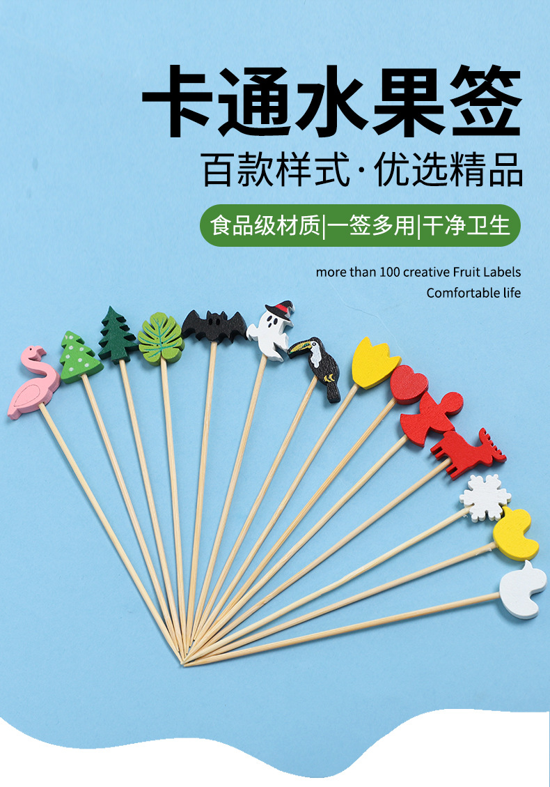 Frutas desechables lindas pequeñas flores frescas coloridas postre sushi hamburguesas de arte frutas bambú palo al por mayor