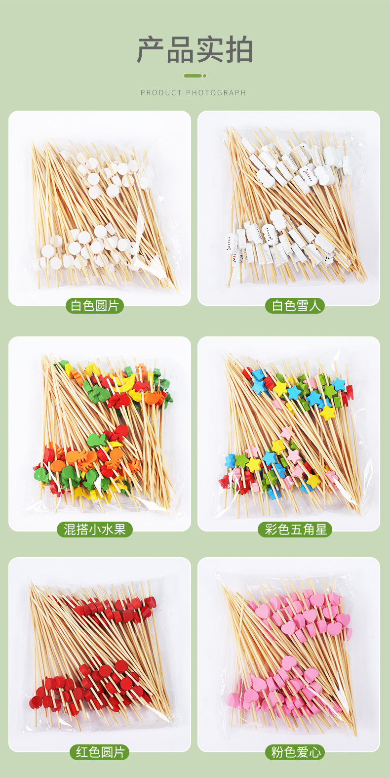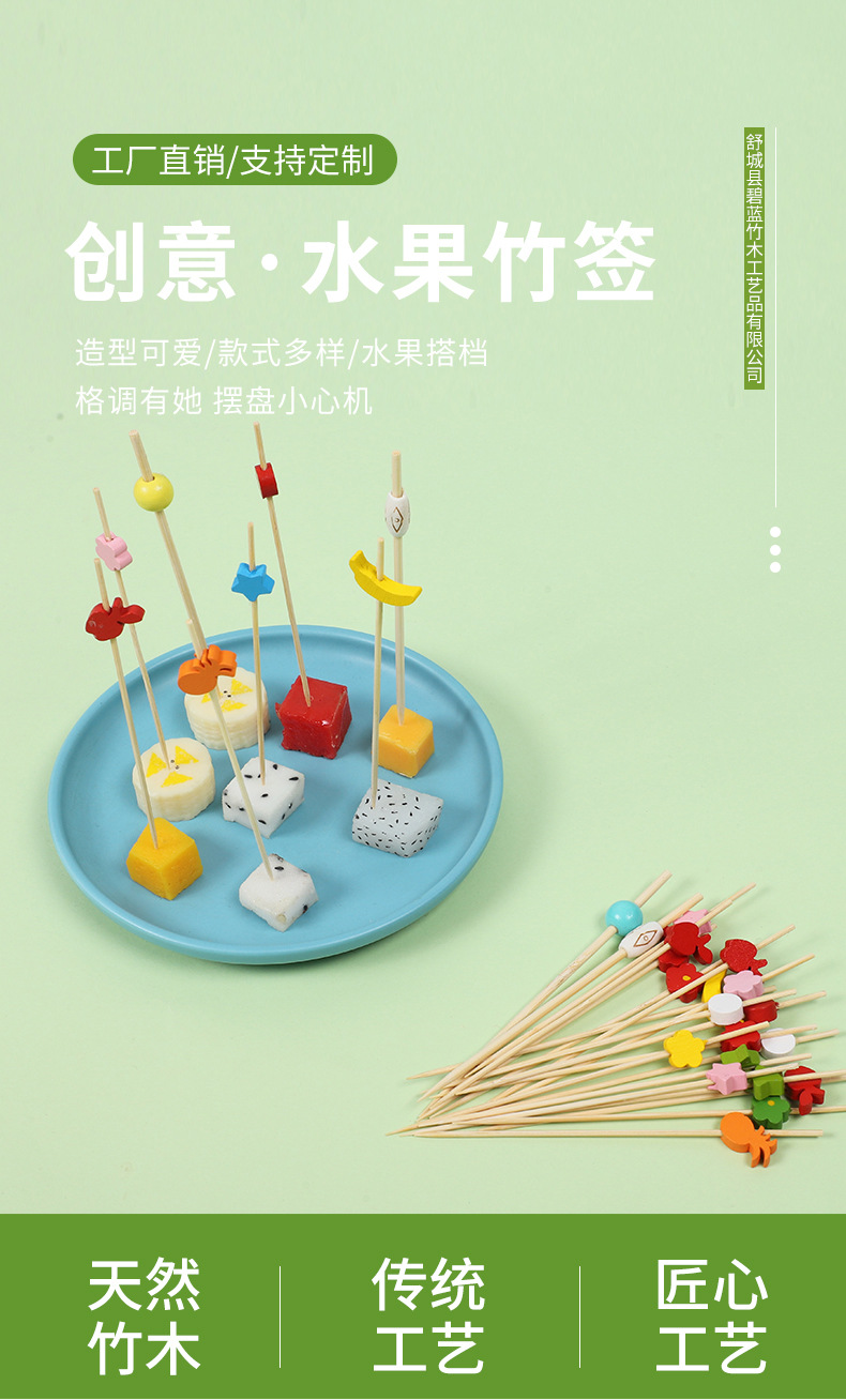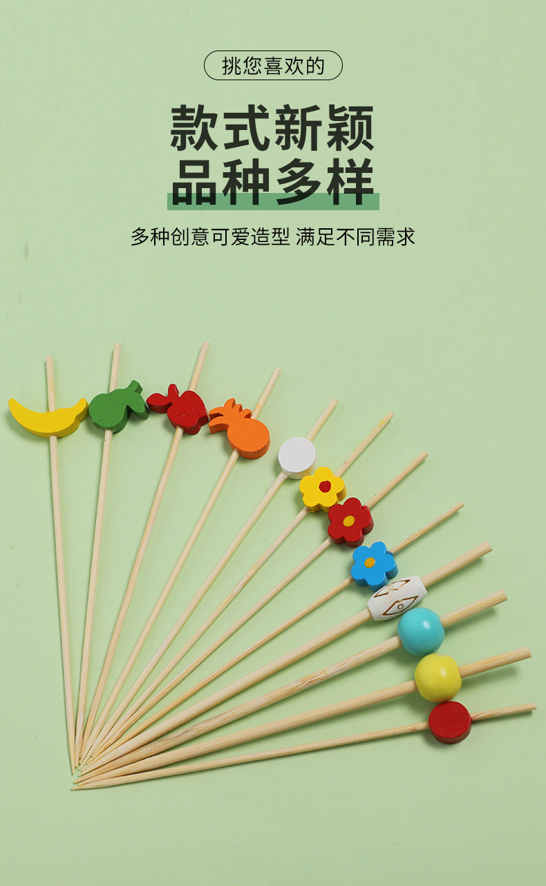 Signo de fruta desechable lindo florecita fresca bolita color postre sushi hamburguesa arte fruta palo de bambú al por mayor