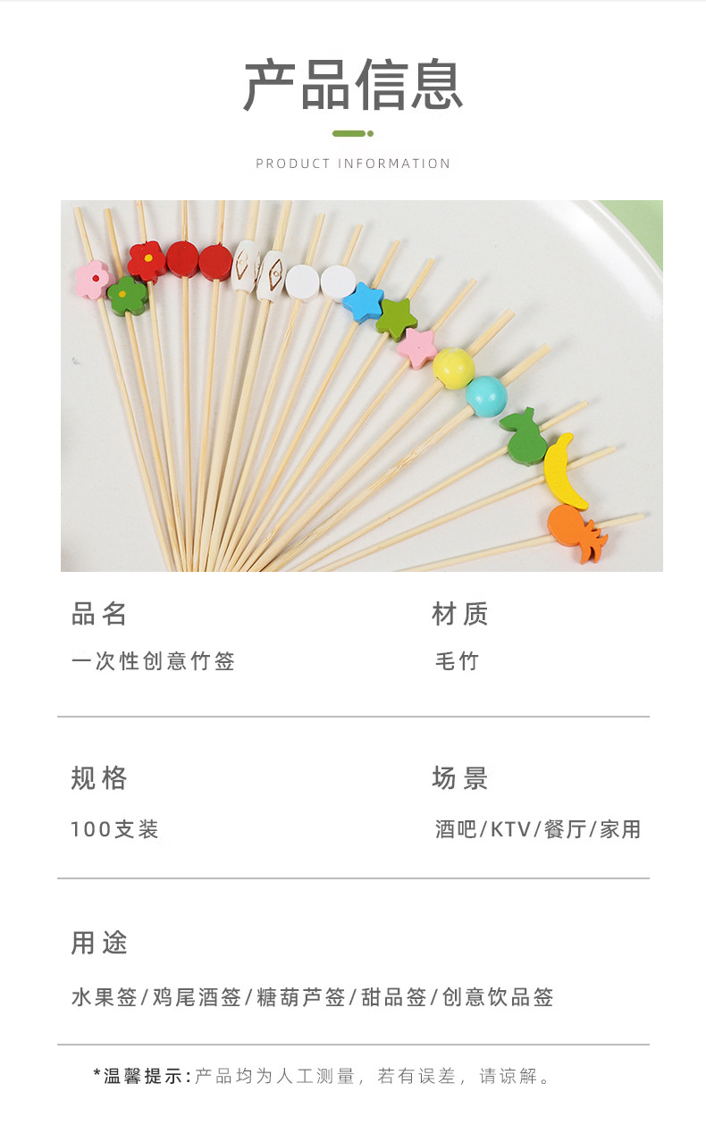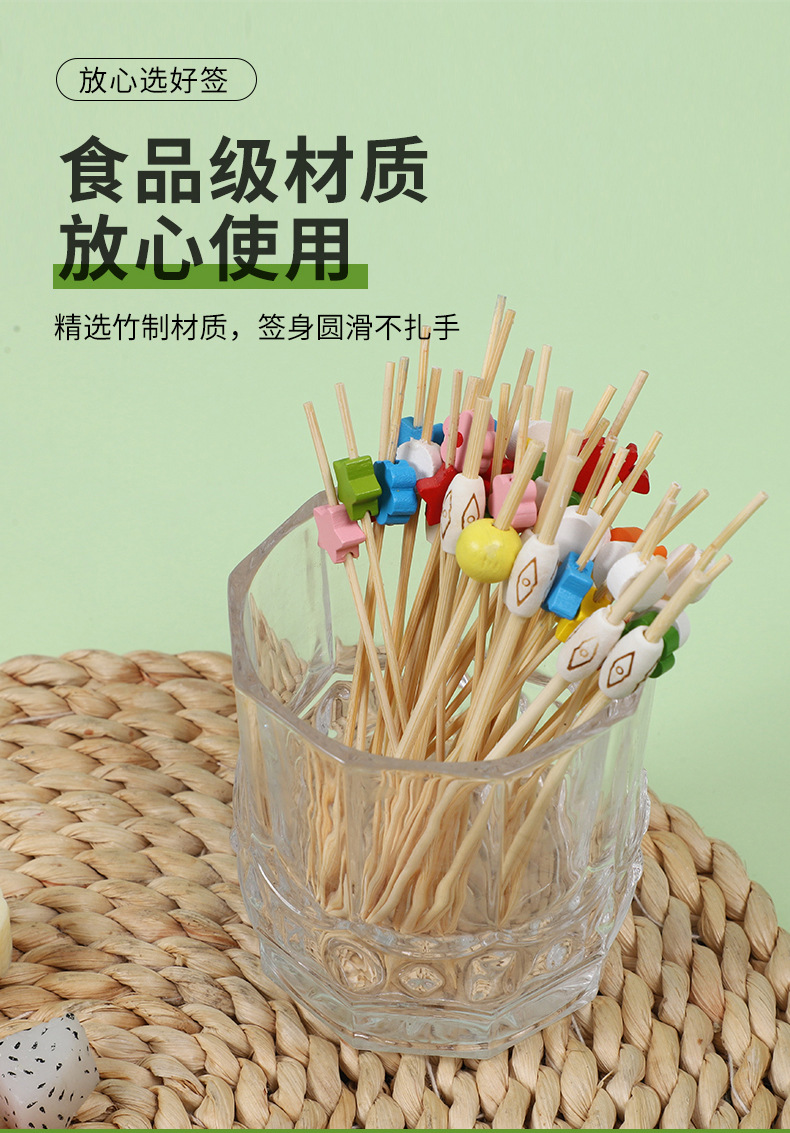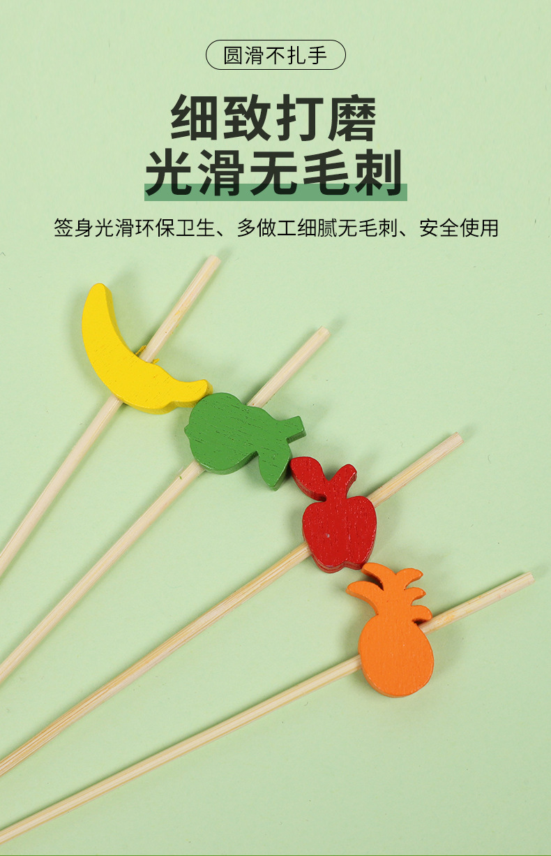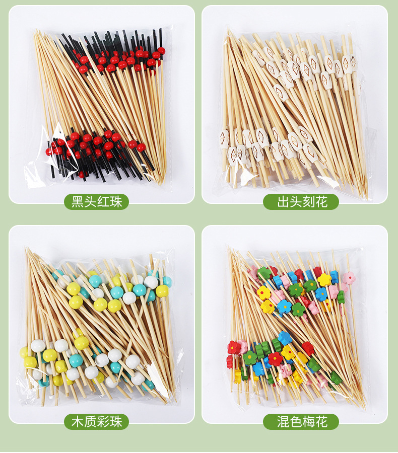Signo de fruta desechable lindo florecita fresca bolita color postre sushi hamburguesa arte fruta palo de bambú al por mayor