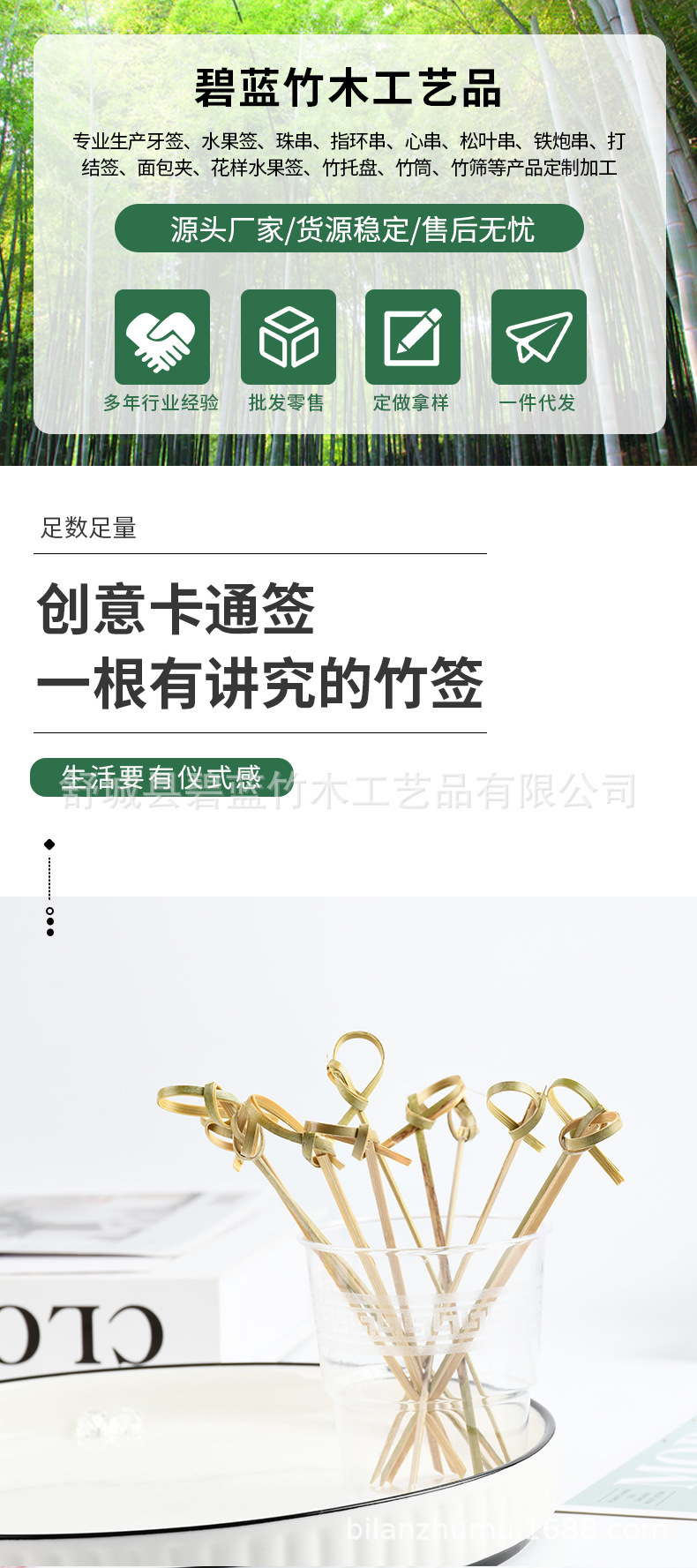 Arte desechable bambú en línea encantador pastel de amor bambú palo de flor nudo string de fruta palo de venta al por mayor