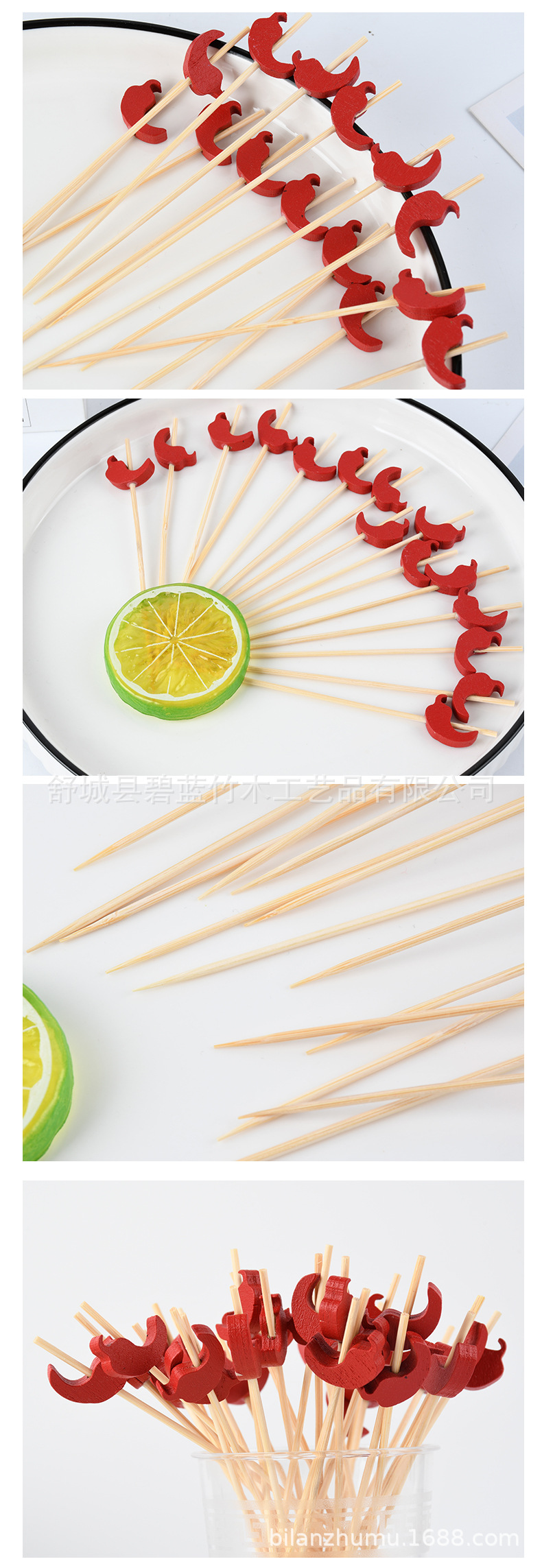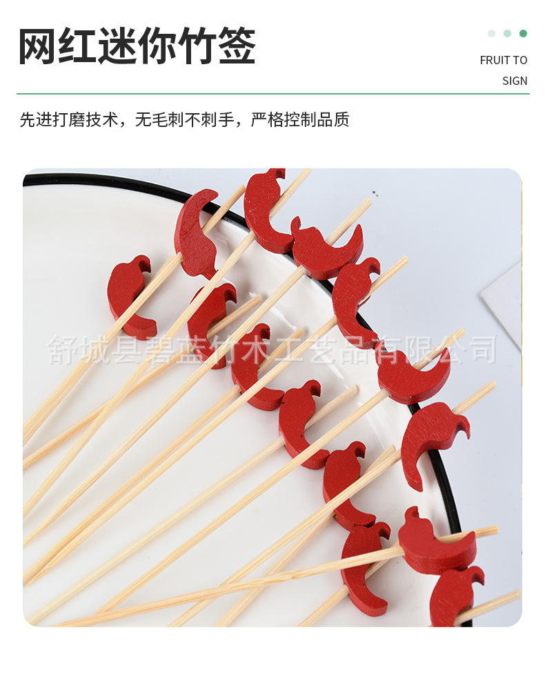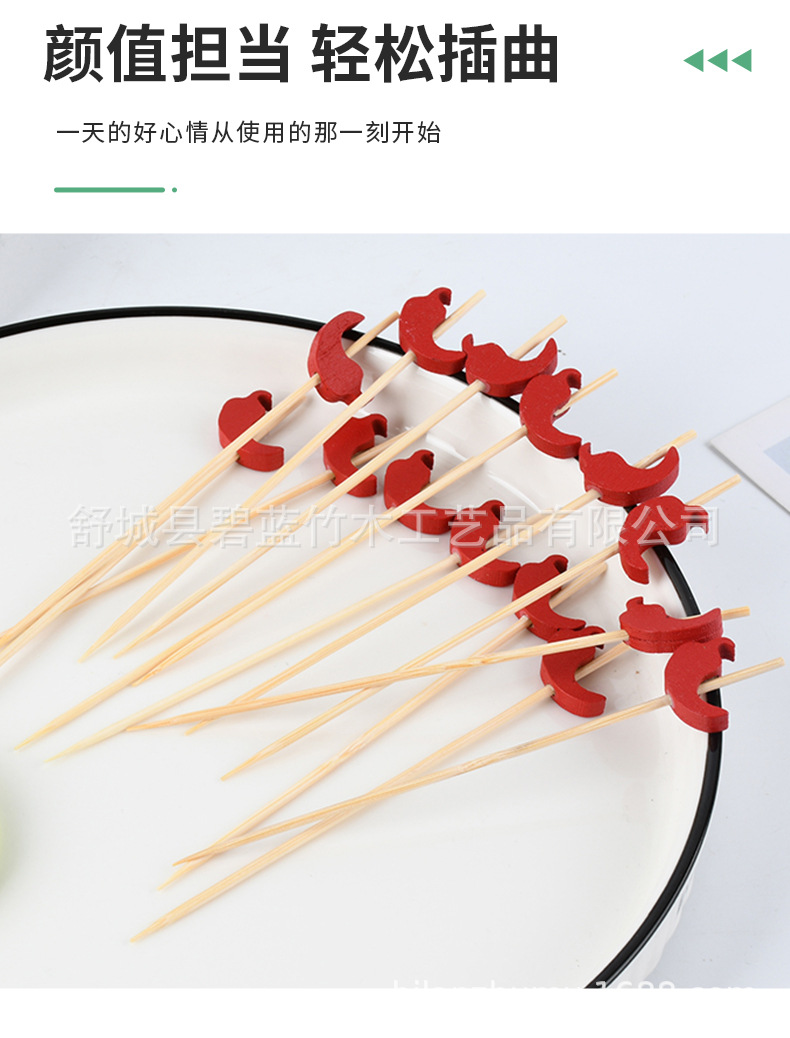 Pimienta roja al por mayor palo de fruta palo de bambú creativo de pastel de decoración horquilla de fruta creativo de palo de fruta