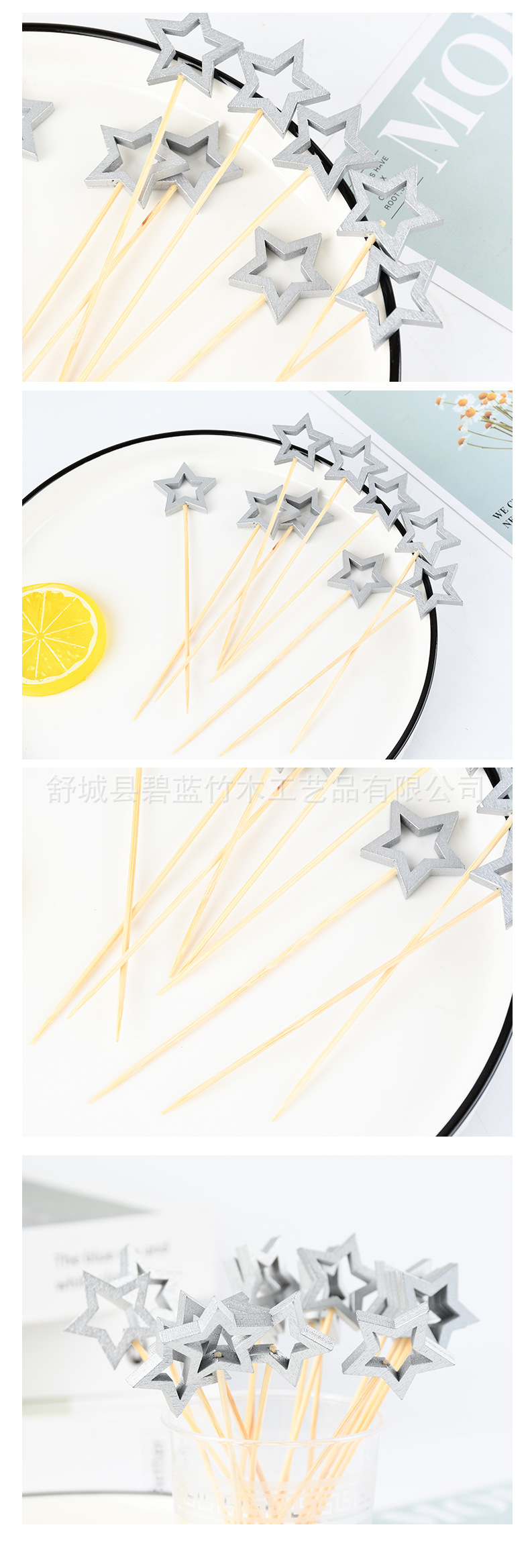 Spot al por mayor tarjeta de pastel de estrella de pentaco agujerada estrella de fruta ficha de horquilla de fruta desechable suministro de fábrica