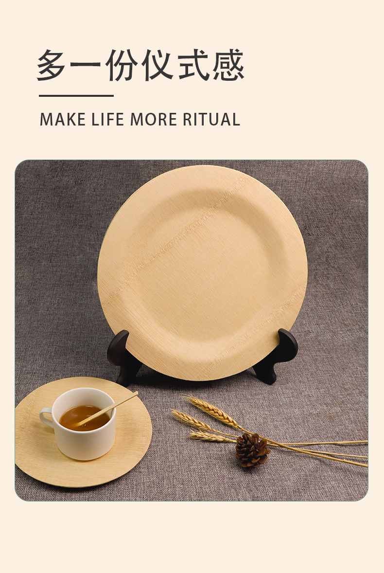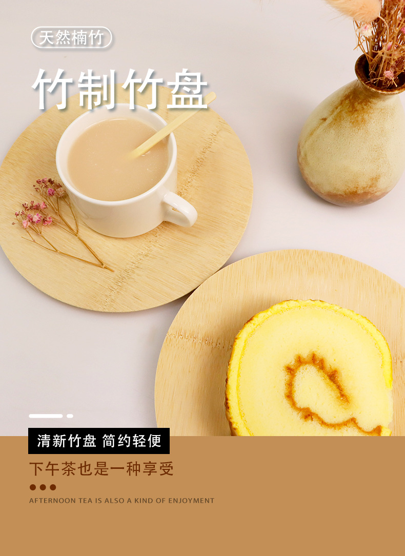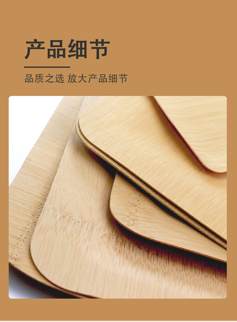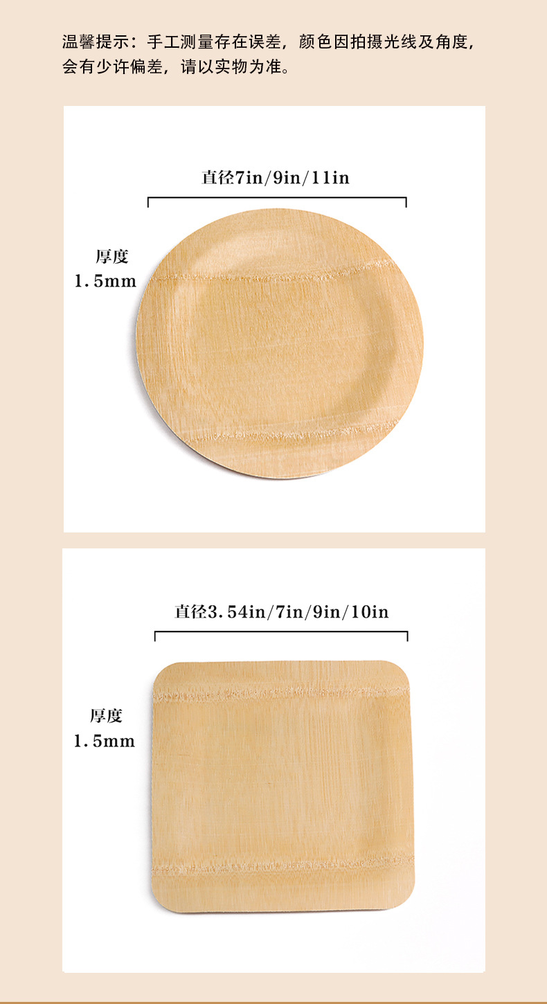 Placa cuadrada desechable de bambú placa redonda mesa de sala de estar casera fruta seca bocadillos placa comercial de té de la tarde placa de postre