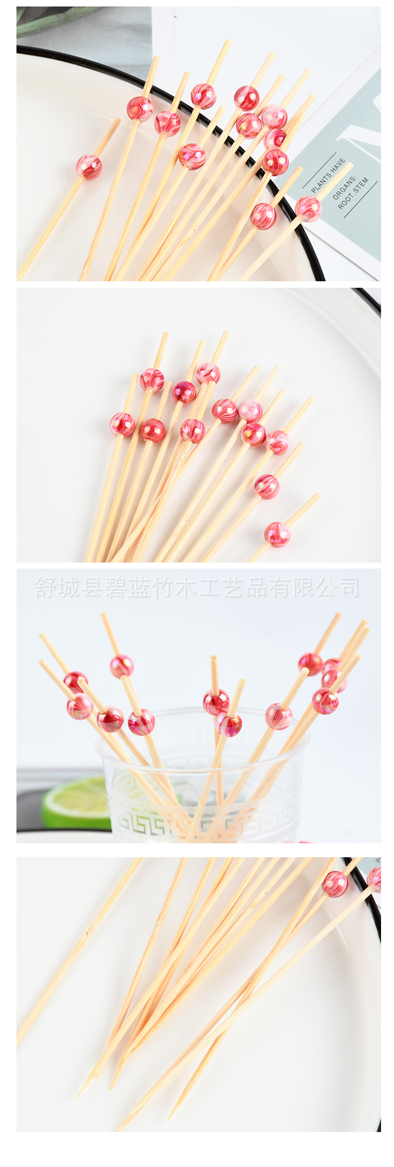 Creativo al por mayor cuentas rojas desechables stick de frutas stick sándwich stick de cóctel stick tortilla horquilla de pastel