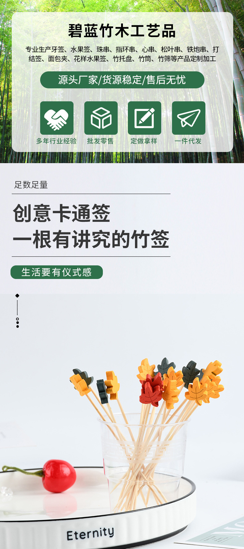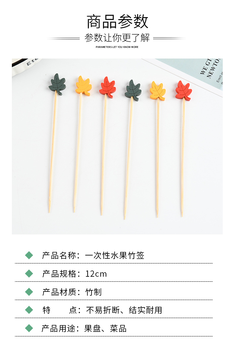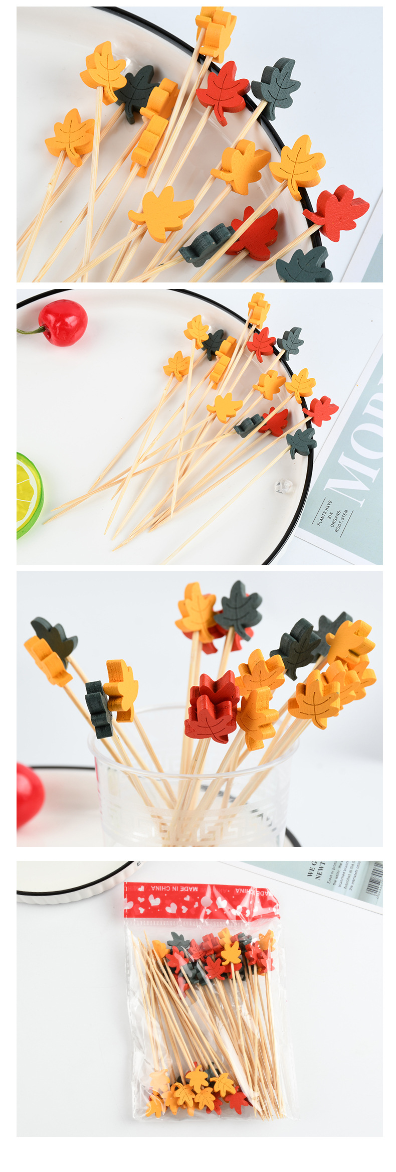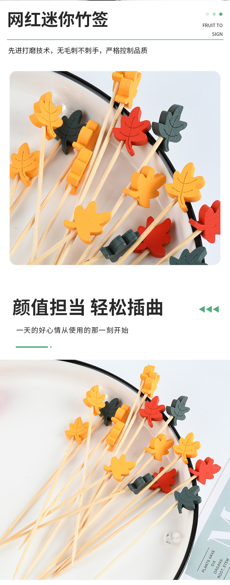 Un solo uso de palillos de fruta de hoja de arce palillos de dientes de dibujos animados palillos de fruta de hoja de arce palillos de dientes artísticos palillos de bambú al por mayor