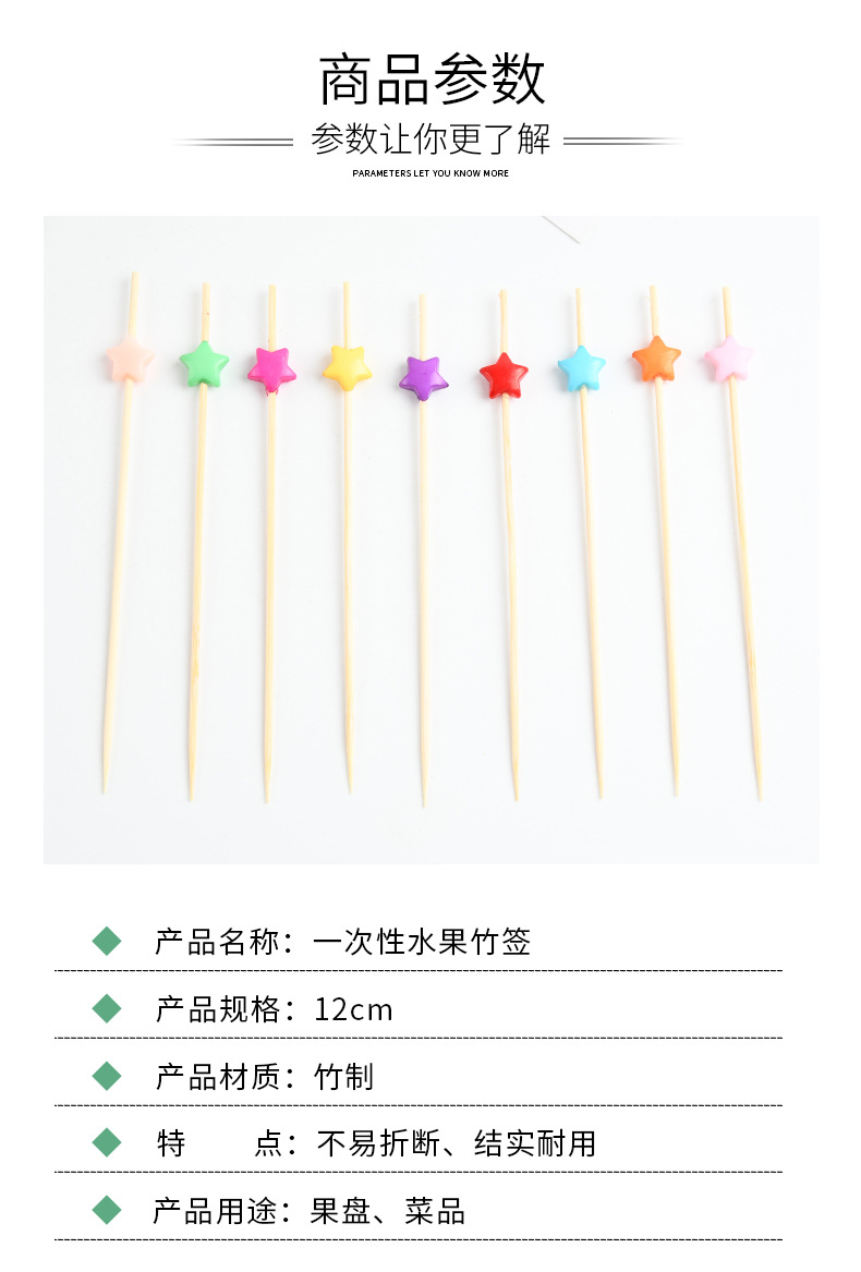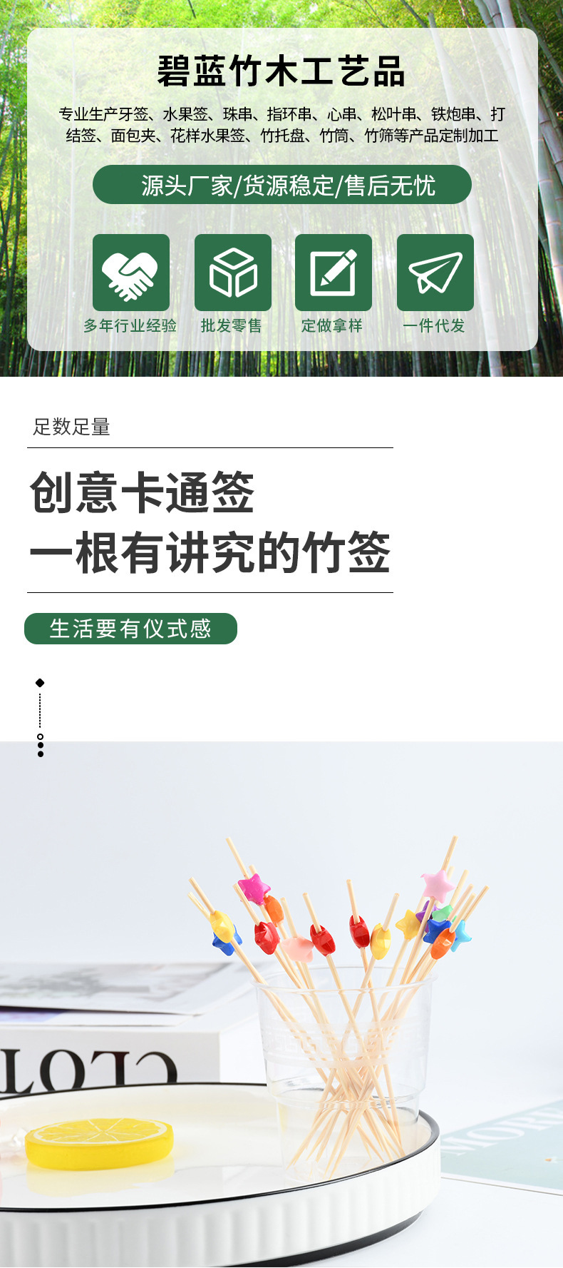 Suministro al por mayor de un palo de fruta desechable, cadena de frutas coloridas, palo de bambú, cadena de limón
