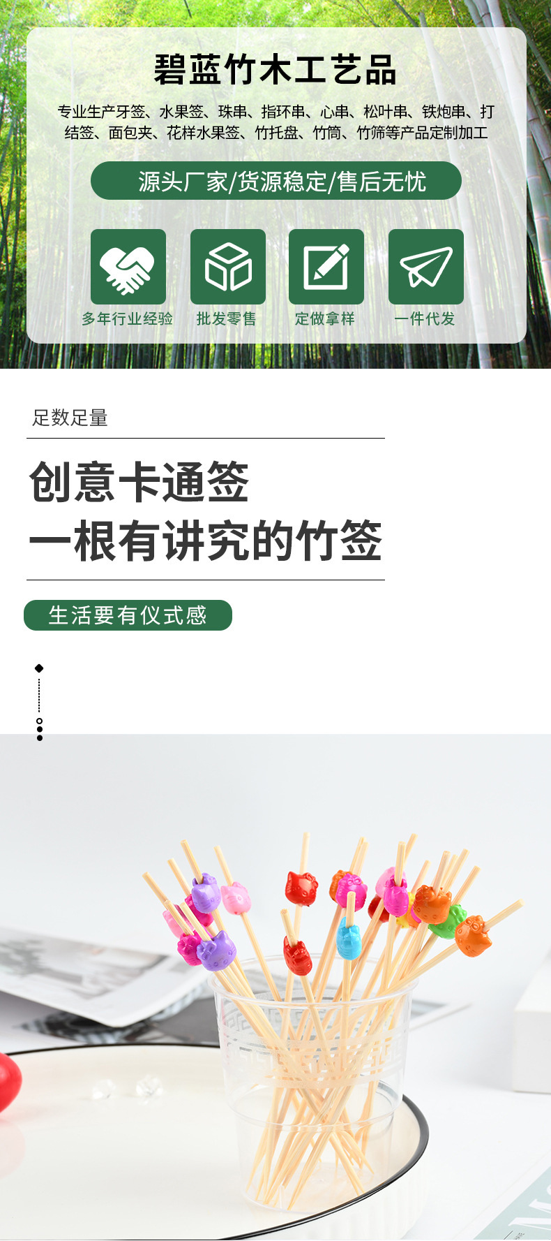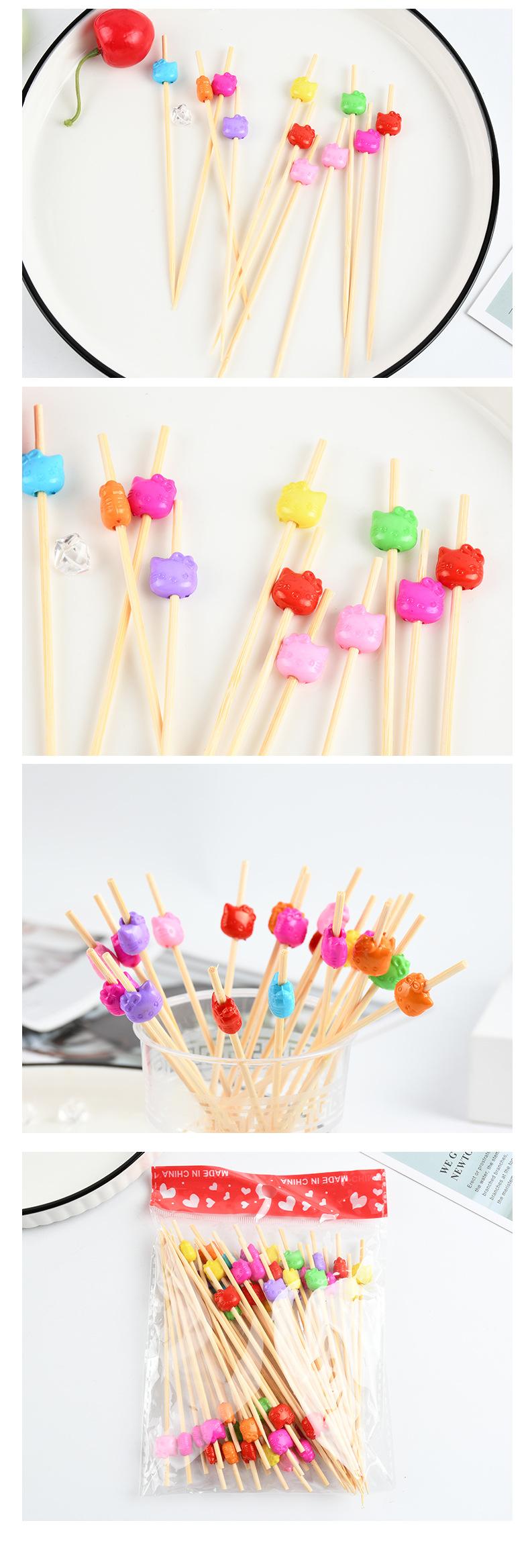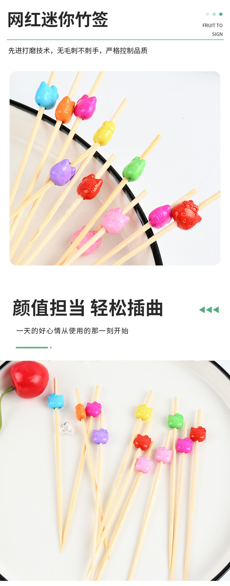 Animal encantador tenedor desechable al por mayor frutas pastillas de frutas pastillas de dientes artísticas string calabaza bambú bambú