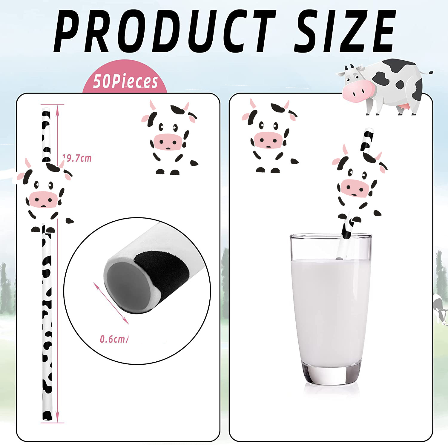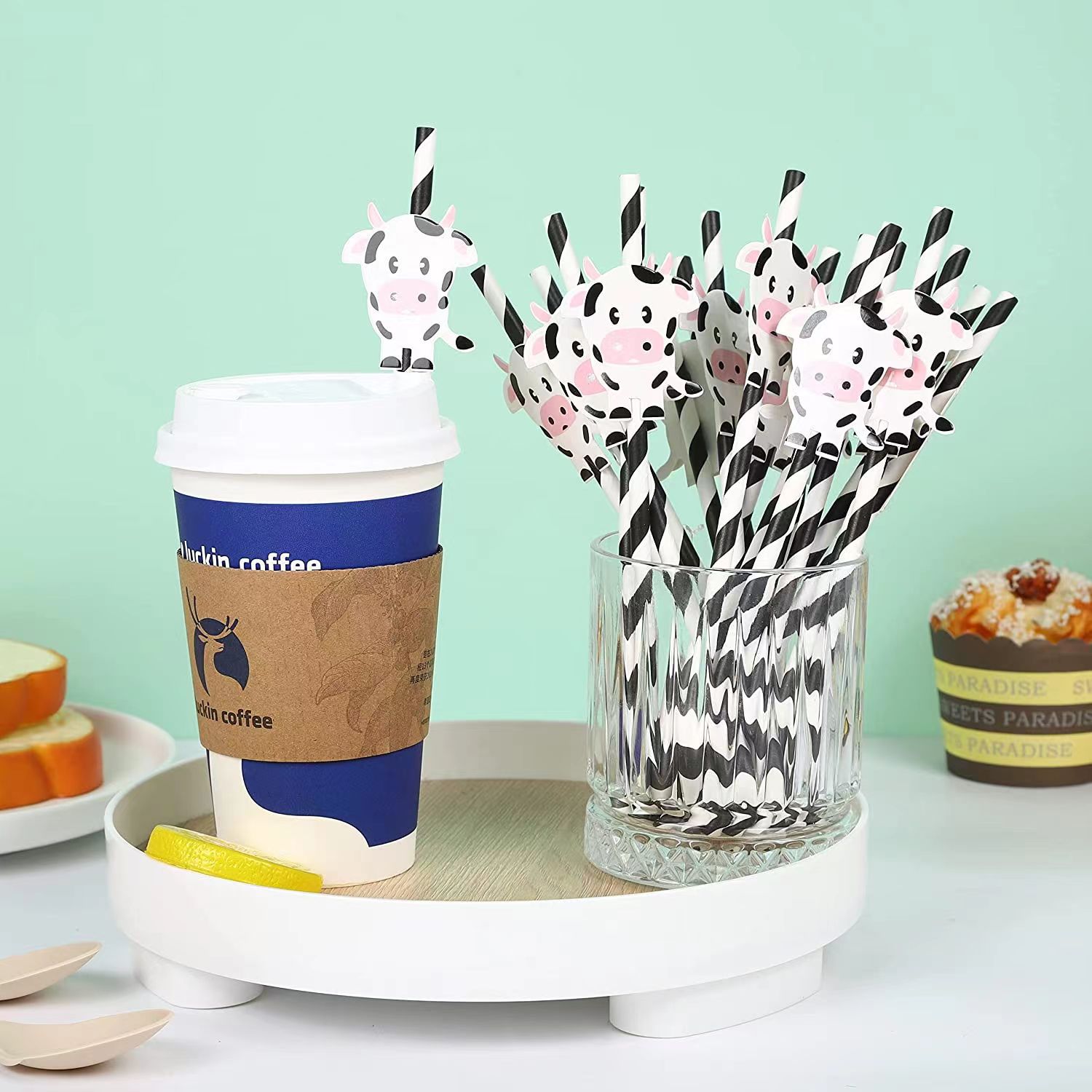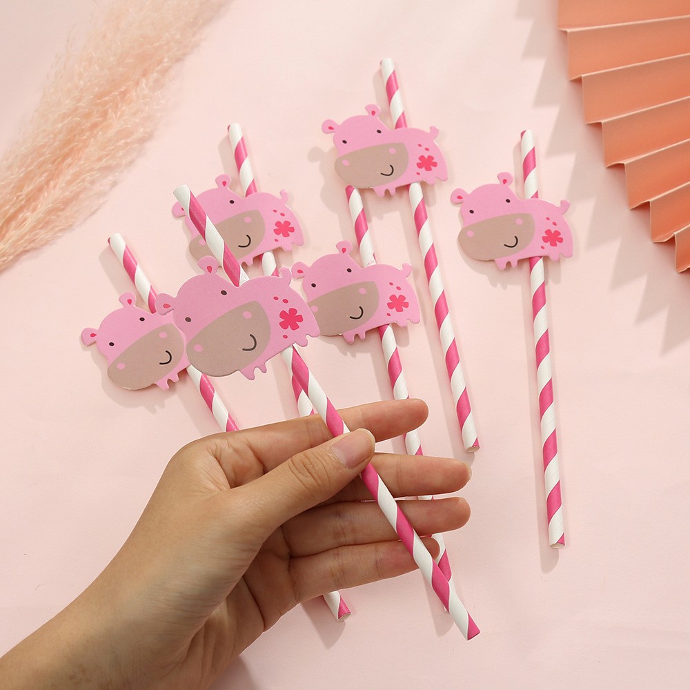 Fiesta transfronteriza decoración creativa Linda paja vaca cebra animal papel paja desechable degradación bebida Decoración