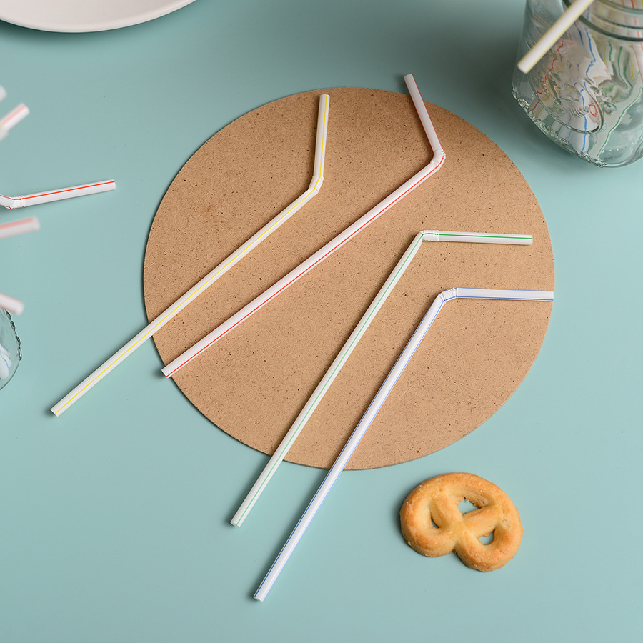 Transfronterizo nuevo color 5mm grado alimenticio 100 piezas 5X210 codo jugo leche té paja de plástico desechable