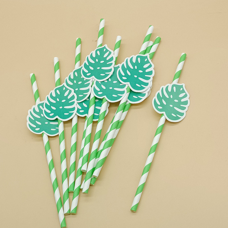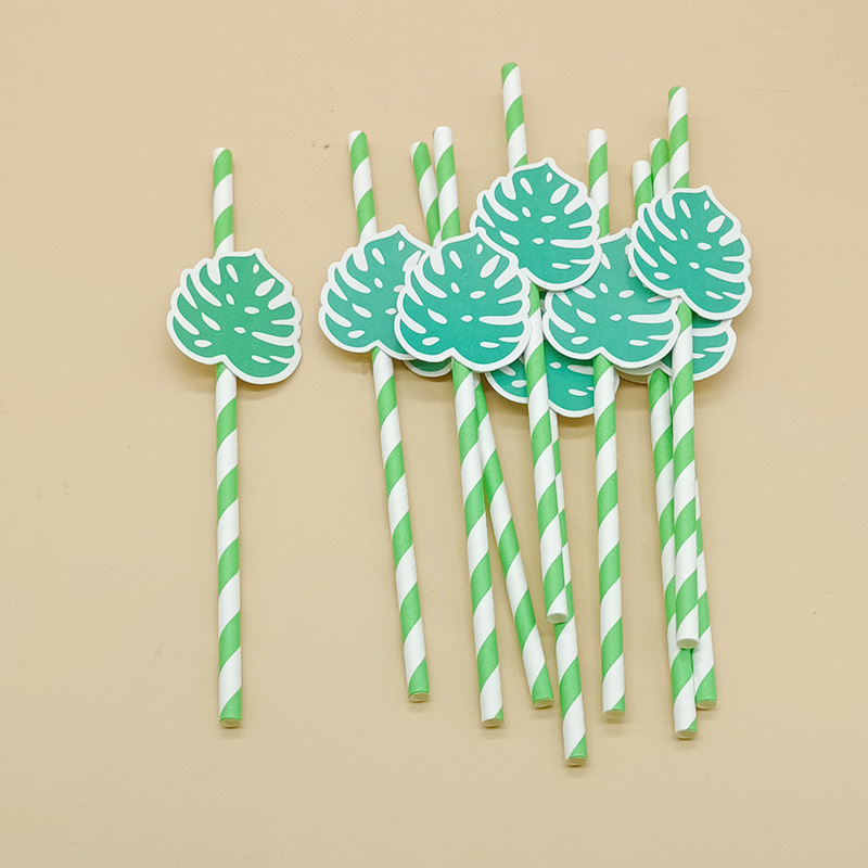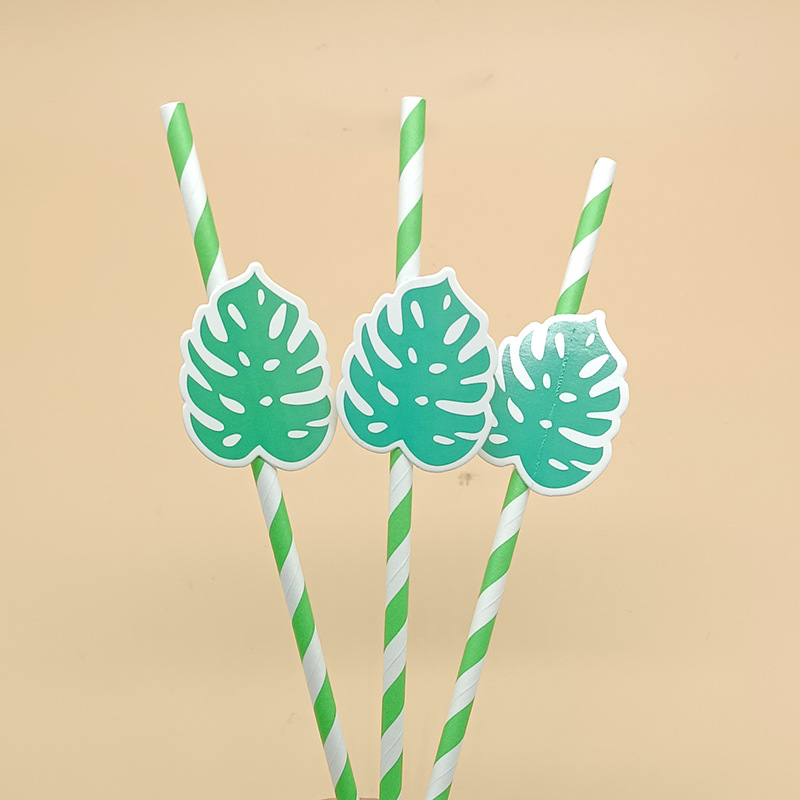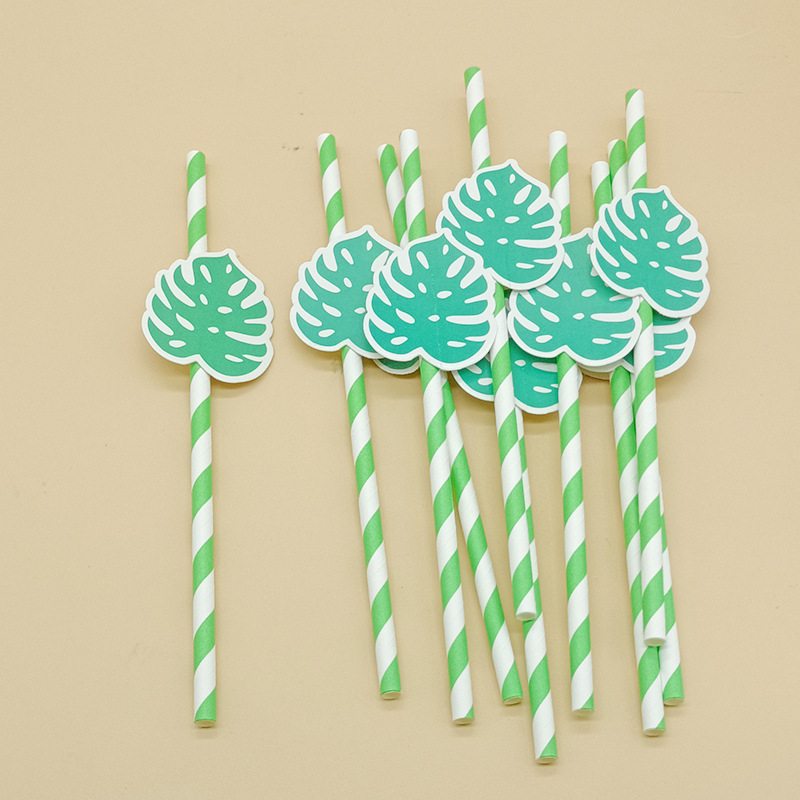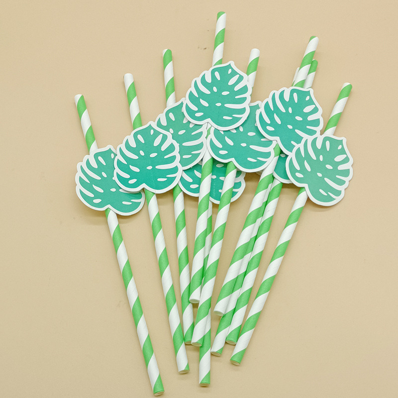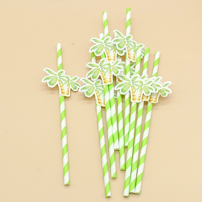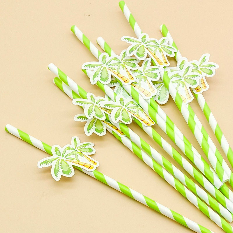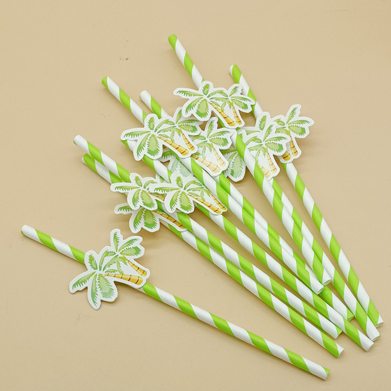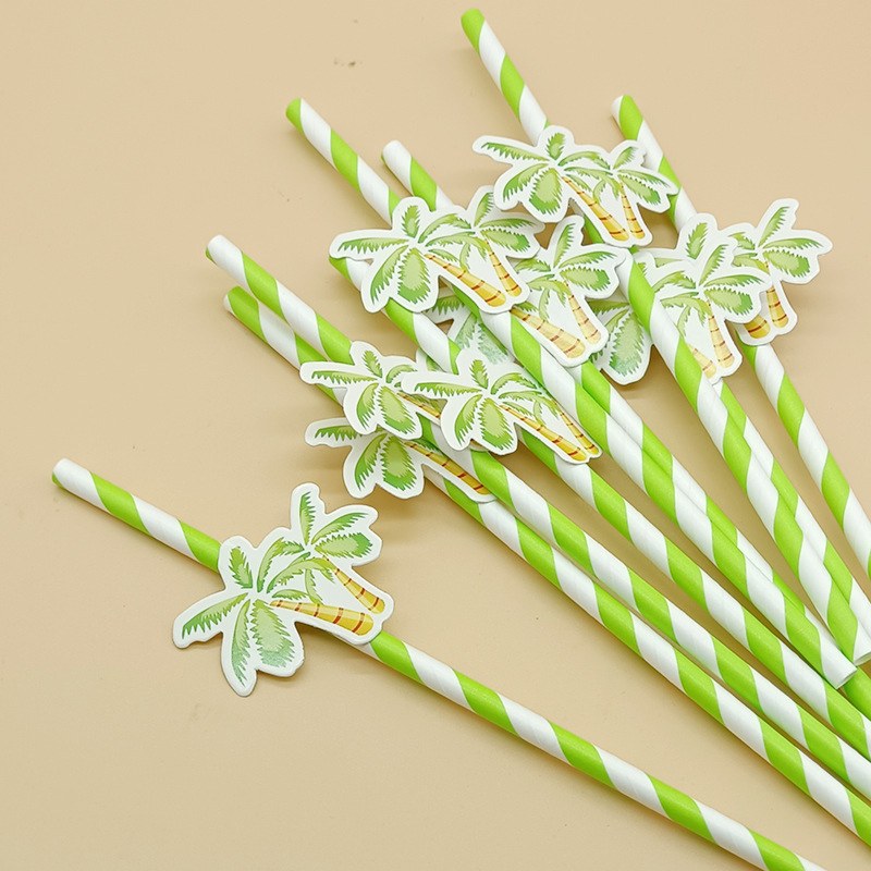 Paja de papel degradable desechable creativa hoja de paja tropical árbol de coco pastel decorativo plug-in leche té paja