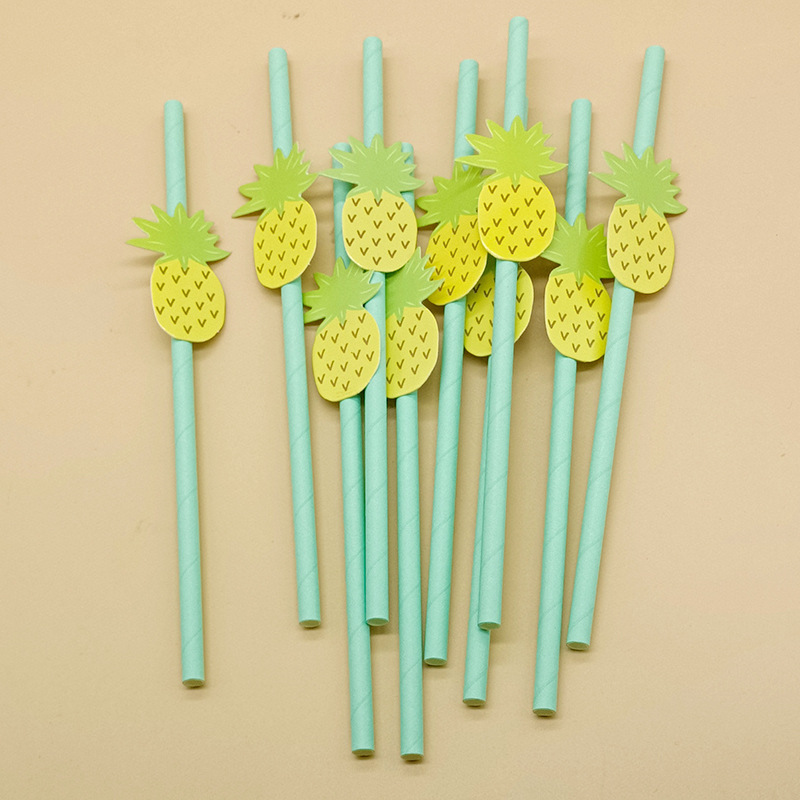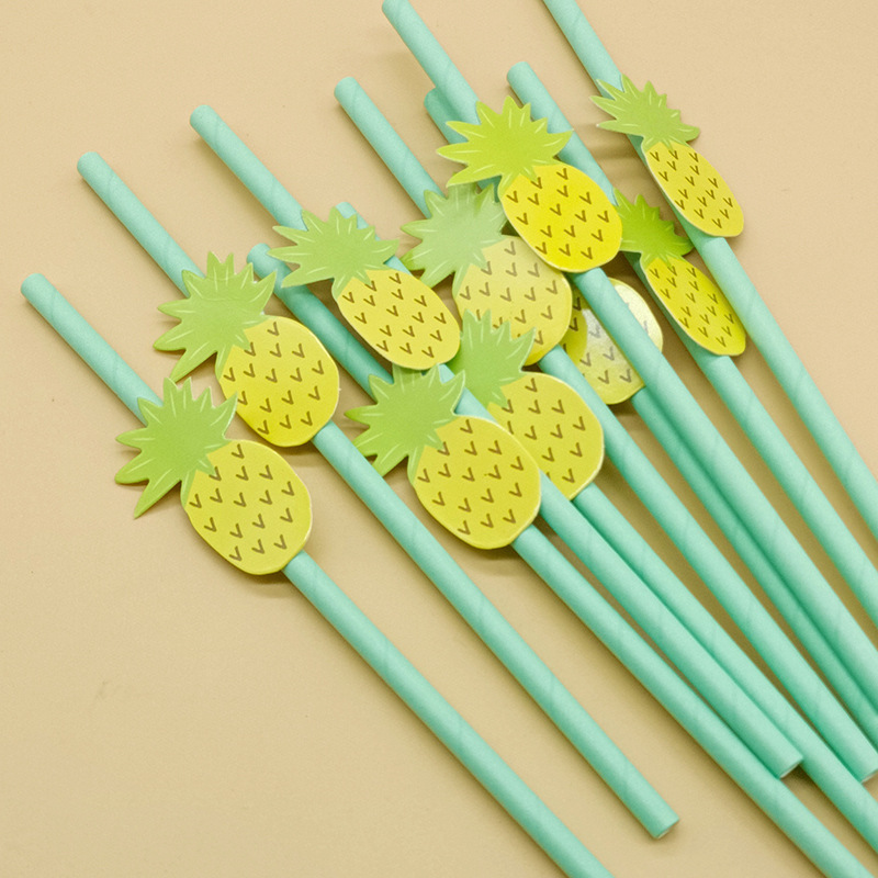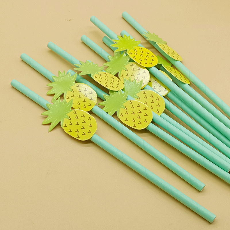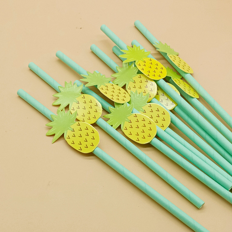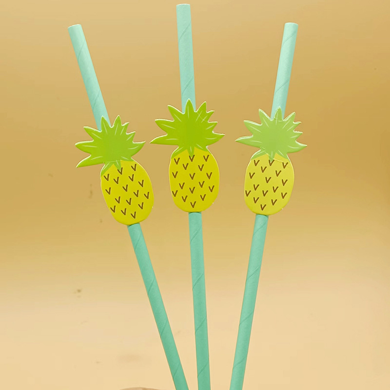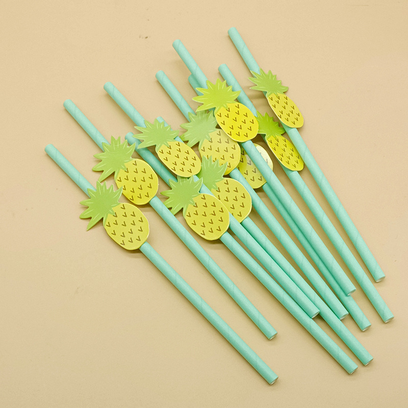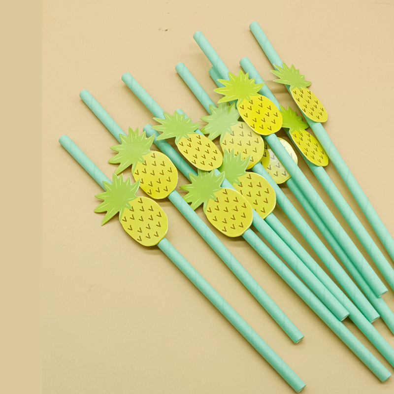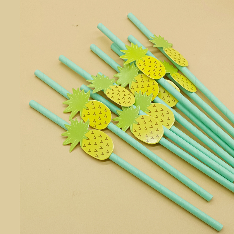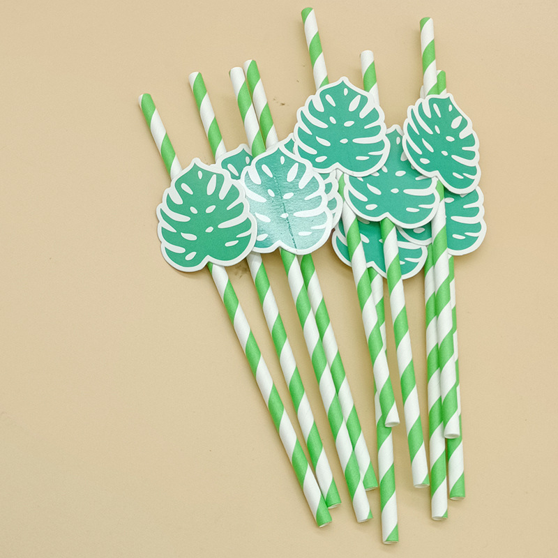 Paja de papel degradable desechable creativa hoja de paja tropical árbol de coco pastel decorativo plug-in leche té paja