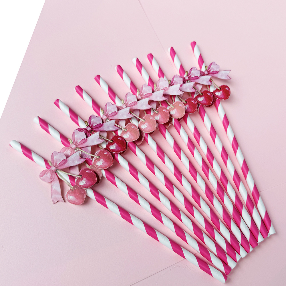 Suministros para fiestas transfronterizas Fruta creativa Limón Cereza Papel desechable Pajita Jugo Bebida Pajita Spot al por mayor