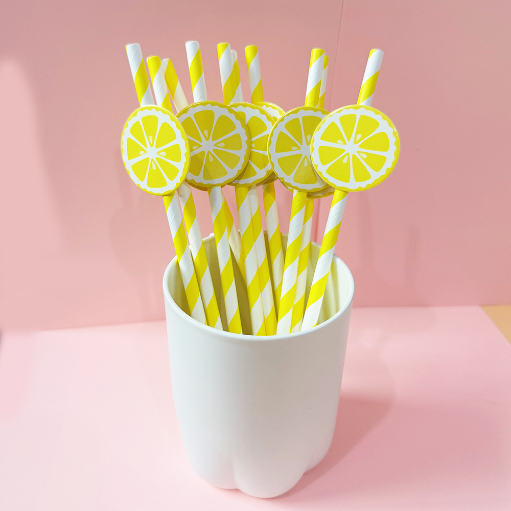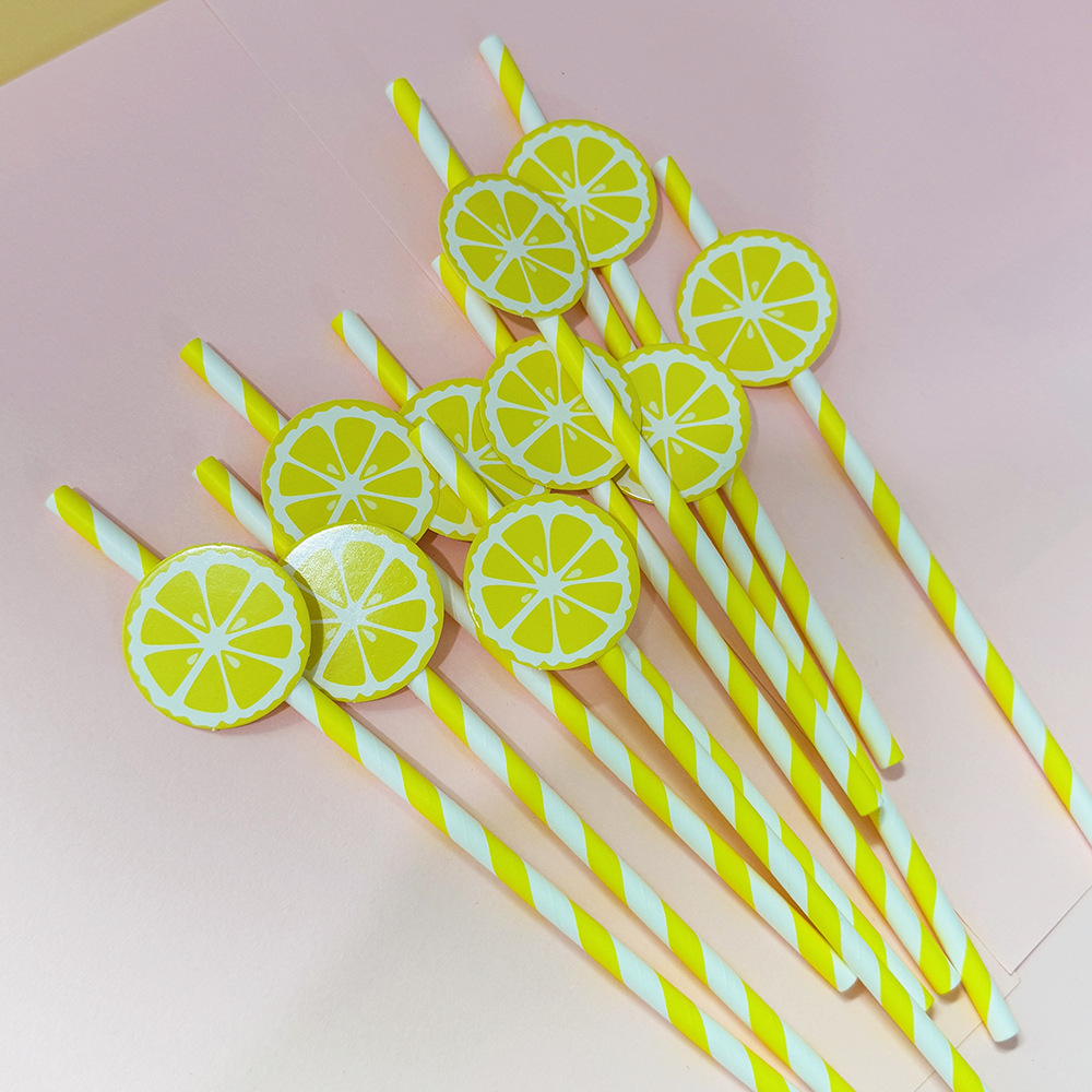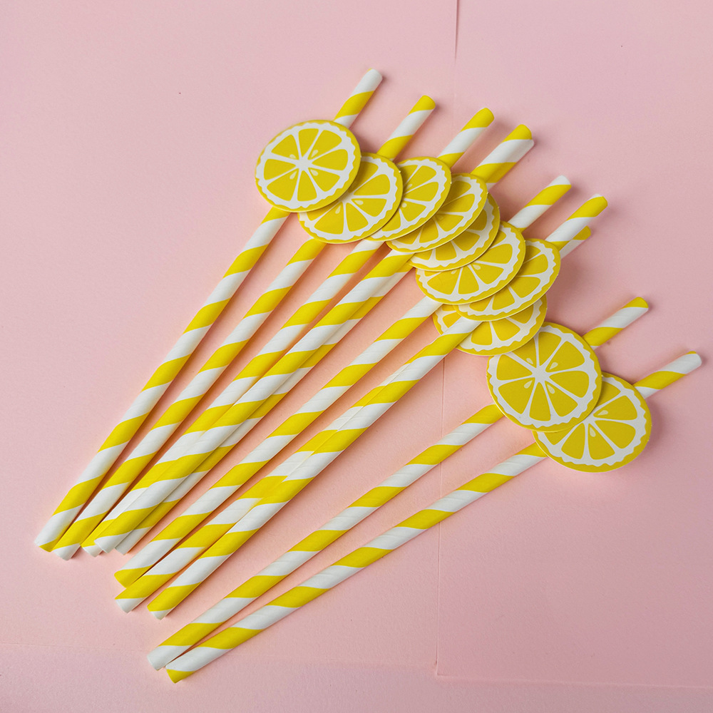 Suministros para fiestas transfronterizas Pajitas de limón de frutas creativas Pajitas de papel desechables Pajitas de bebidas de jugo Spot al por mayor