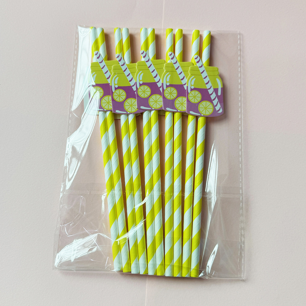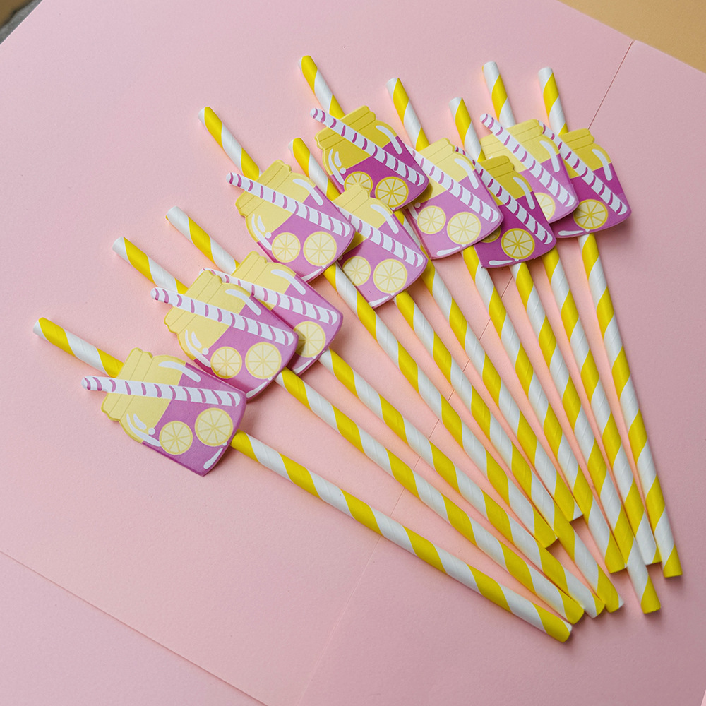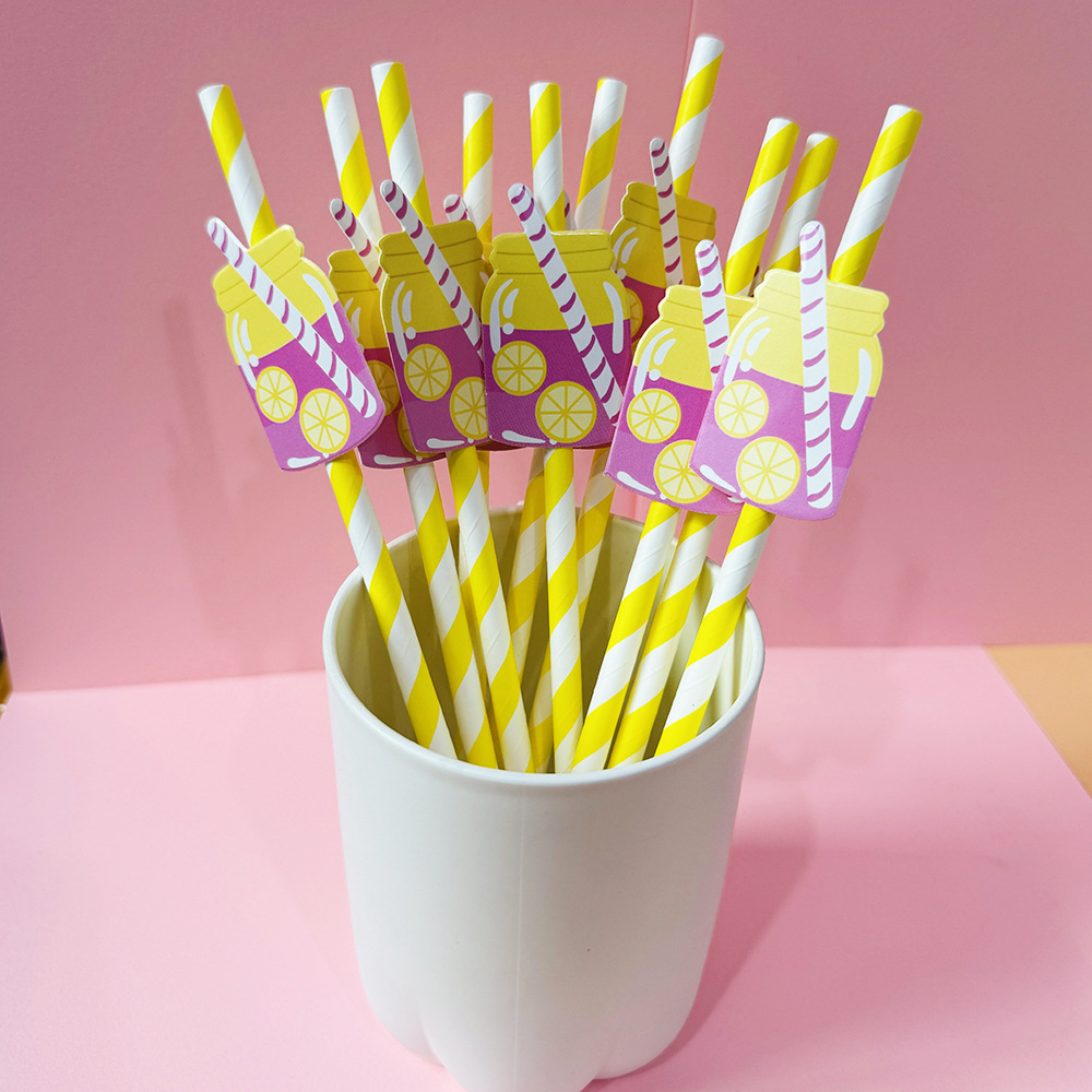 Suministros para fiestas transfronterizas Pajitas de limón de frutas creativas Pajitas de papel desechables Pajitas de bebidas de jugo Spot al por mayor