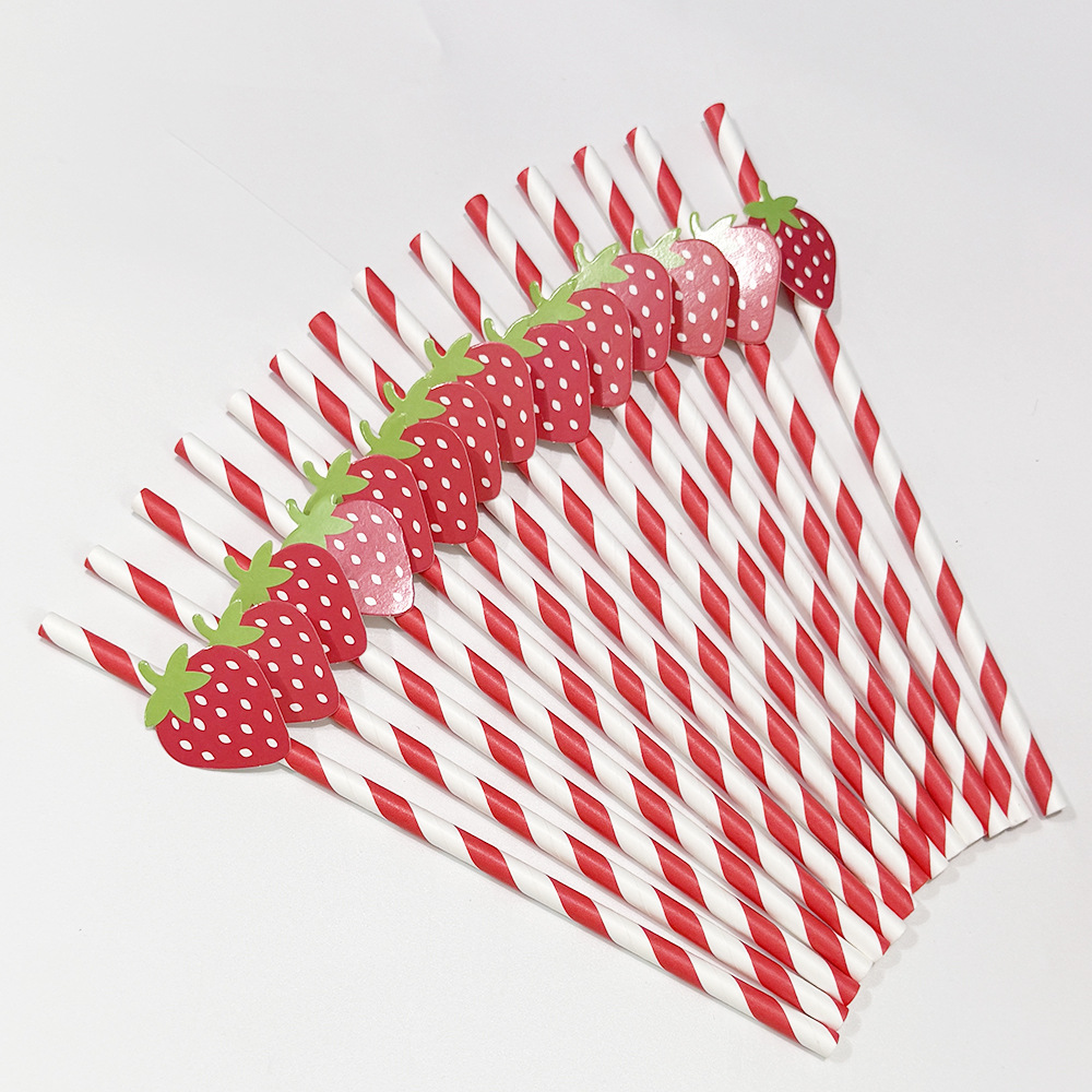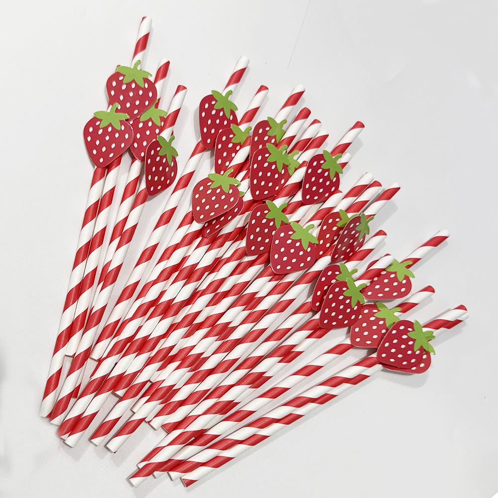 Suministros para fiestas transfronterizas Pajitas de papel creativas Pajitas de fresa Accesorios Disposición Pastel Postre Pajitas Decoración Lote de lugar