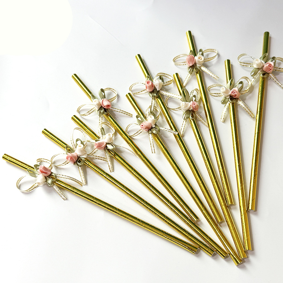 | Colores | Pajita de oro puro nudo de mariposa de alta gama,Pajita de rayas doradas,Nuevo signo de lazo |