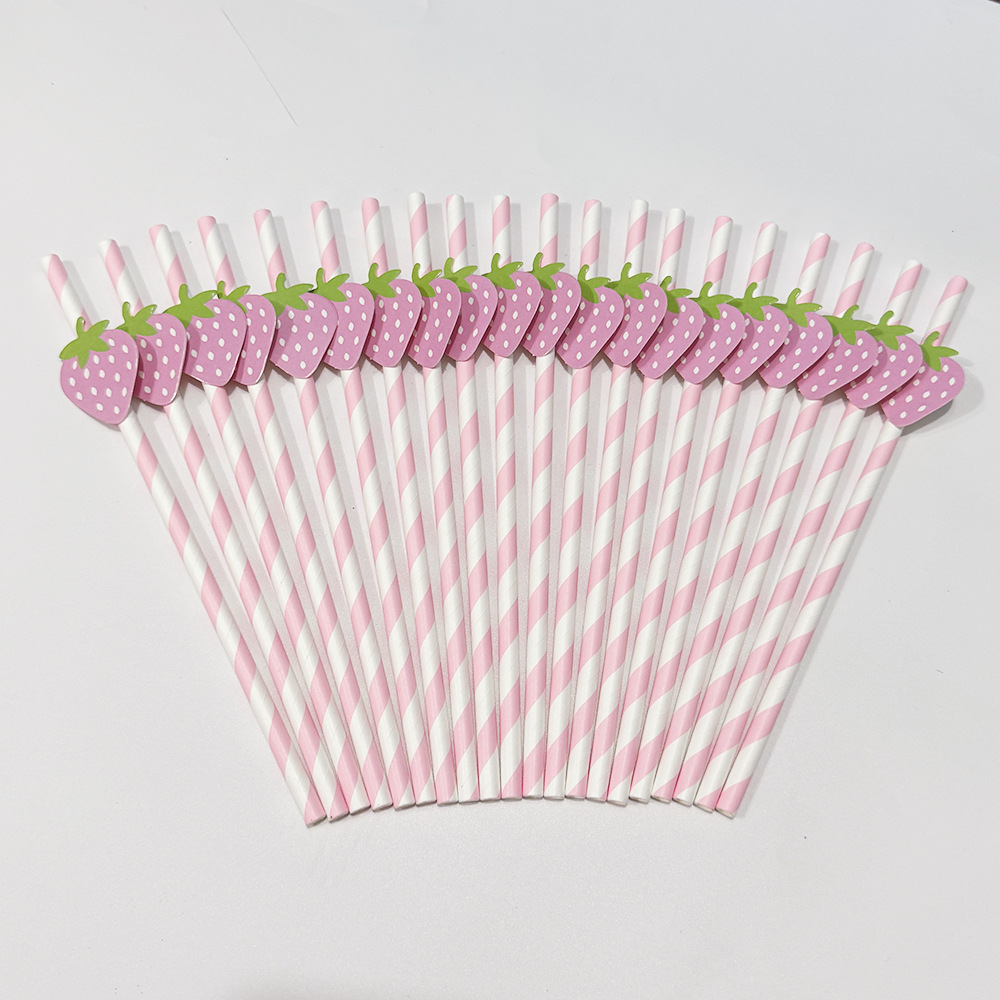 Suministros para fiestas transfronterizas Pajitas de papel creativas Pajitas de fresa Accesorios Disposición Pastel Postre Pajitas Decoración Lote de lugar