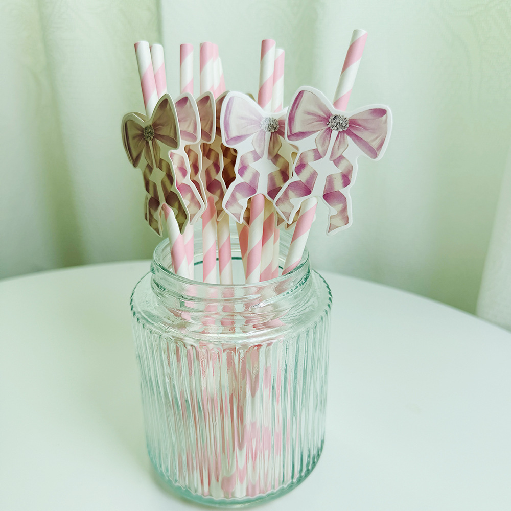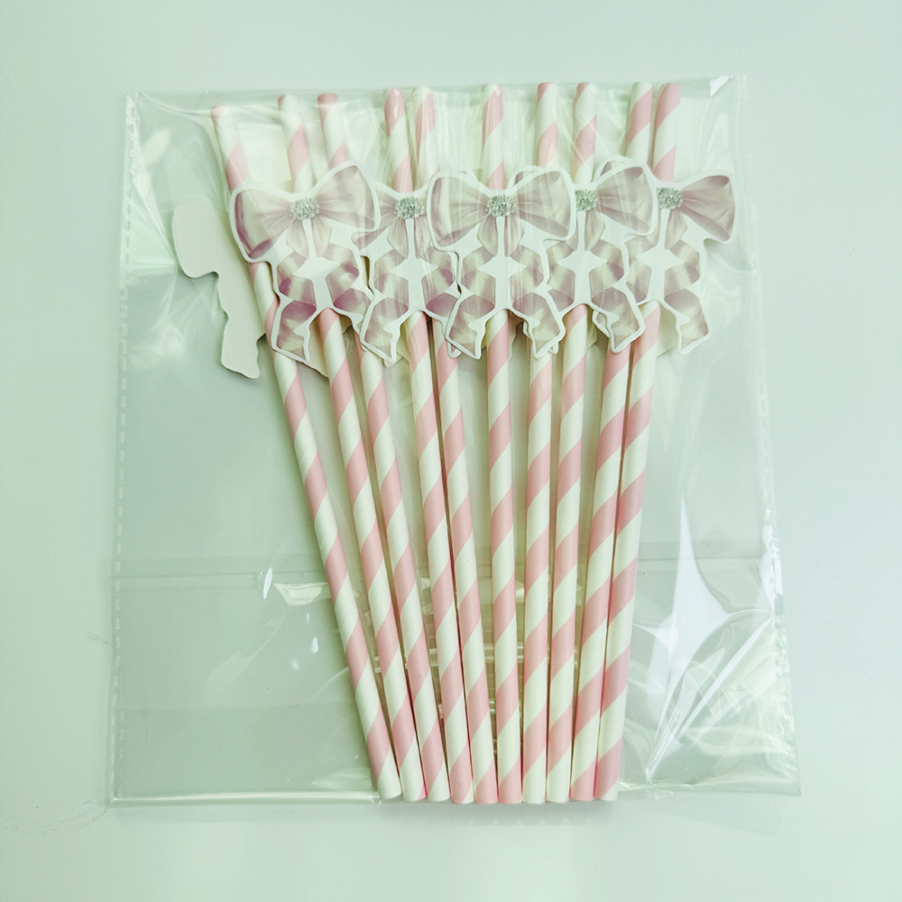 Pajita de papel con lazo creativo transfronterizo decoración de fiesta mesa de postres vestido de cumpleaños botella de pudín complemento de pastel