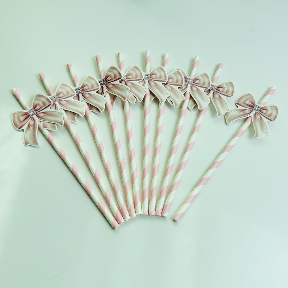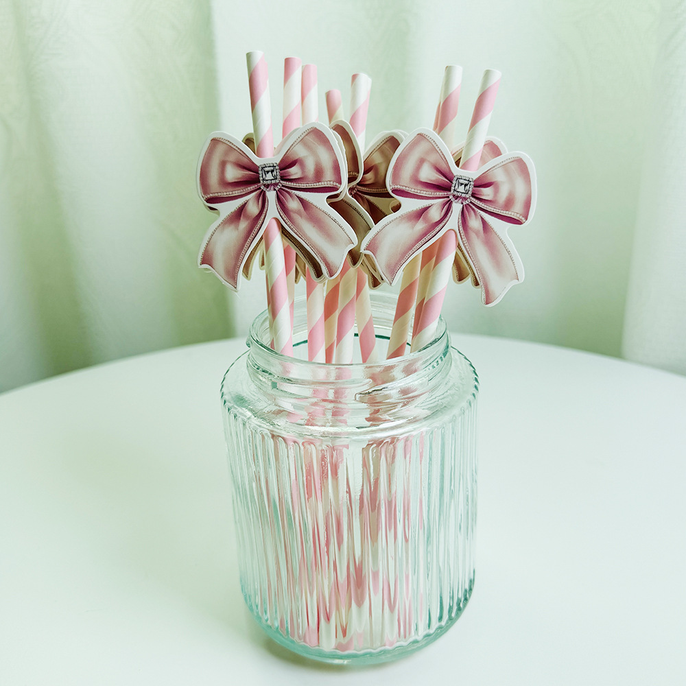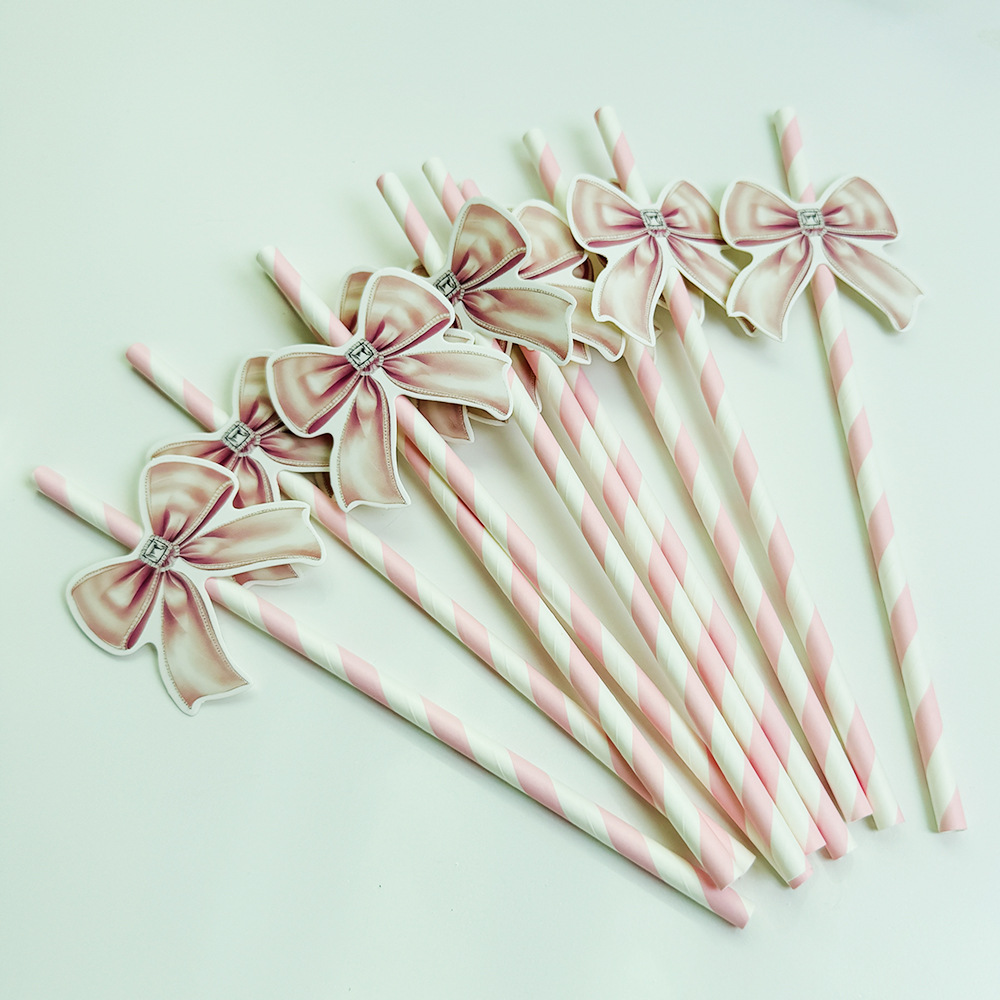Pajita de papel con lazo creativo transfronterizo decoración de fiesta mesa de postres vestido de cumpleaños botella de pudín complemento de pastel