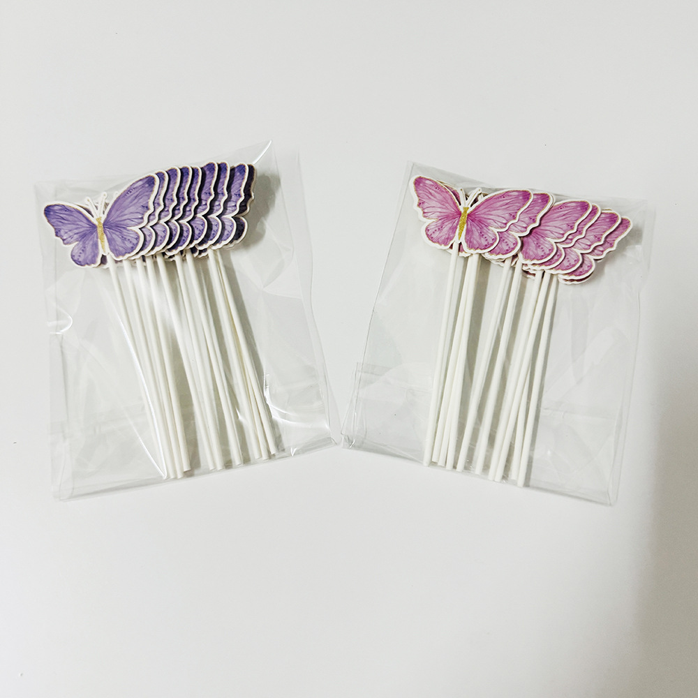 Lugar de fábrica al por mayor decoración creativa de pasteles de fiesta plug-in marca de mariposa con decoración de postres venta caliente transfronteriza