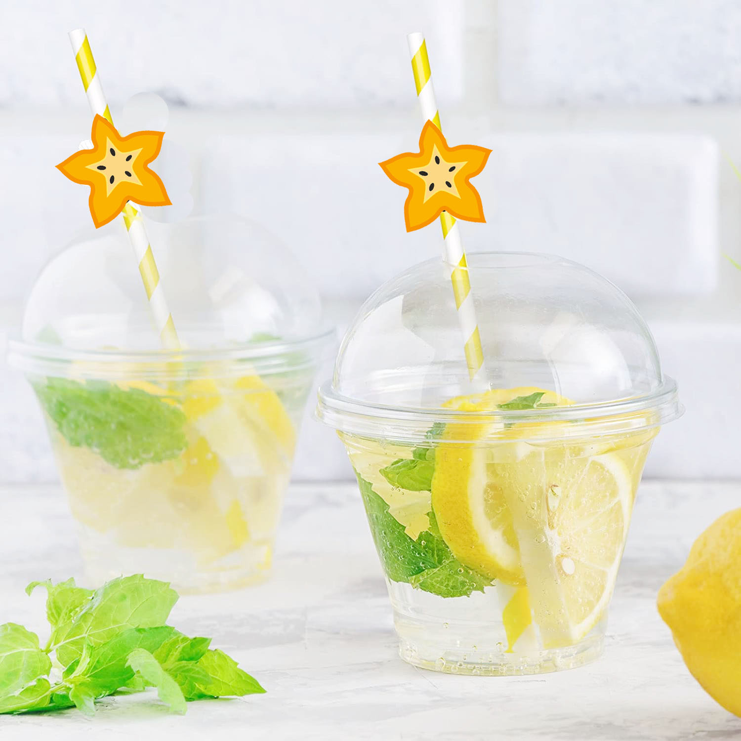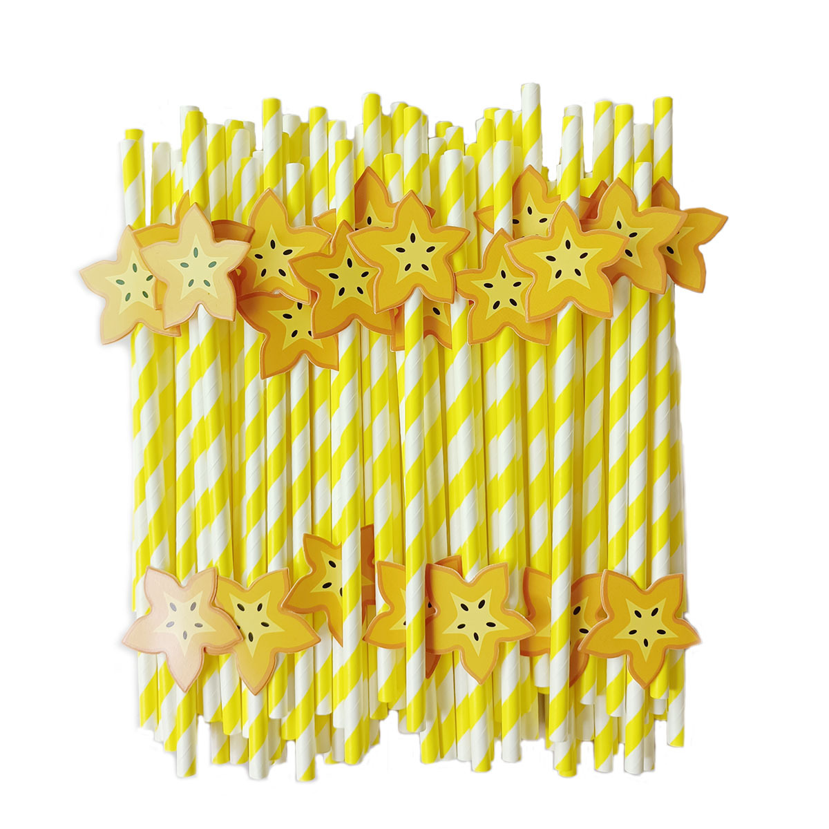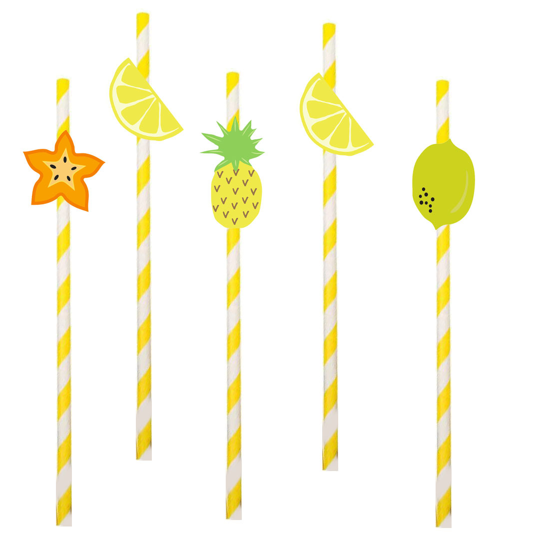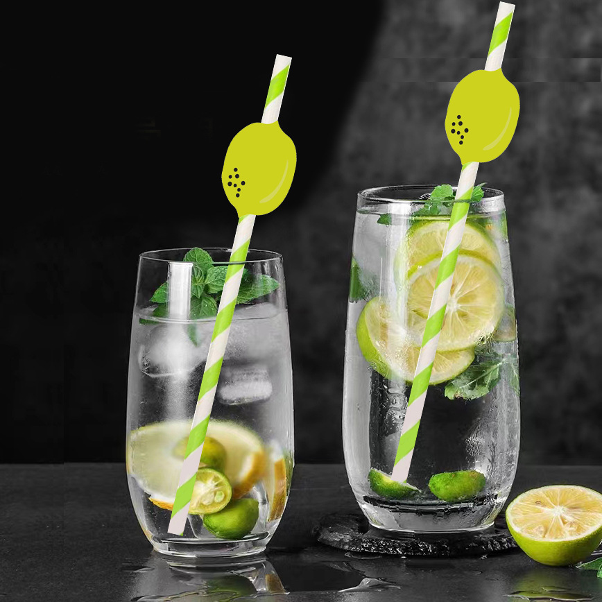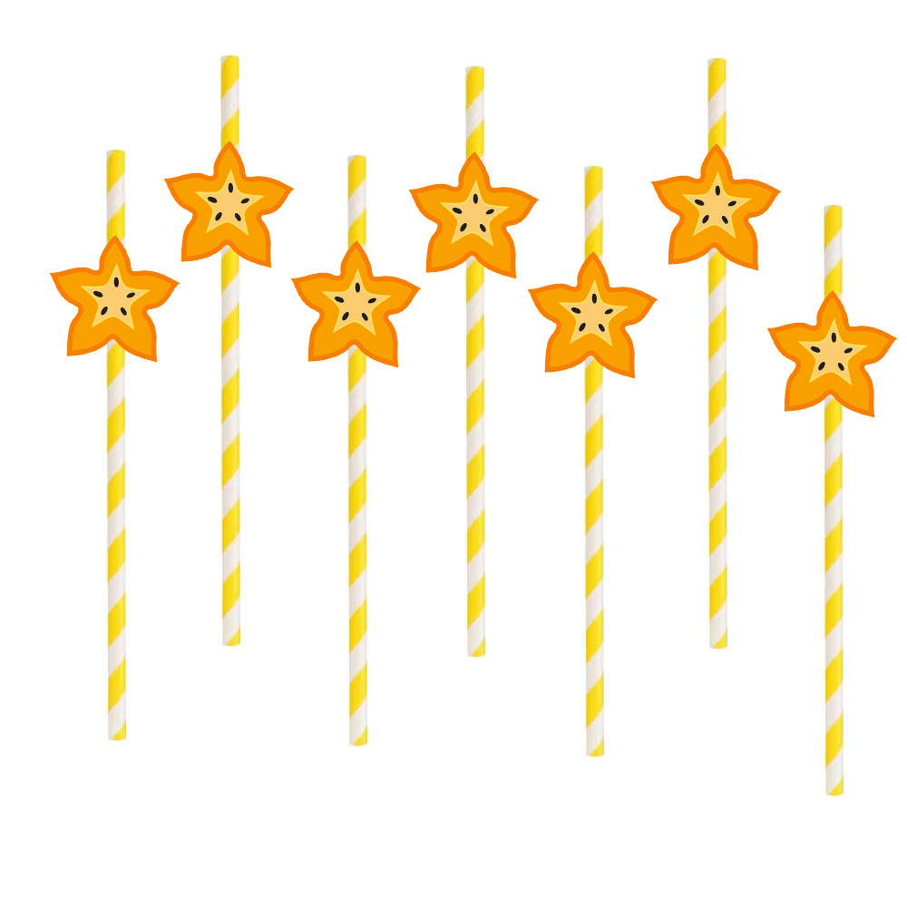 Fiesta transfronteriza suministra paja de fruta creativa carambola paja de cal Maxi paja de papel desechable en lote de stock