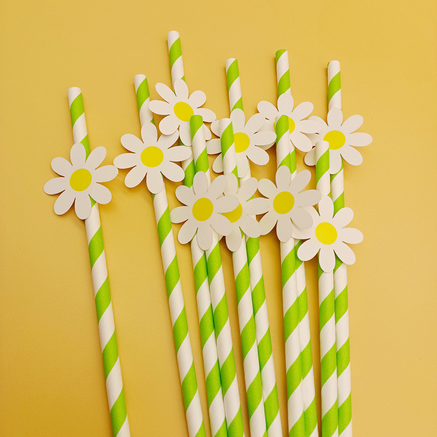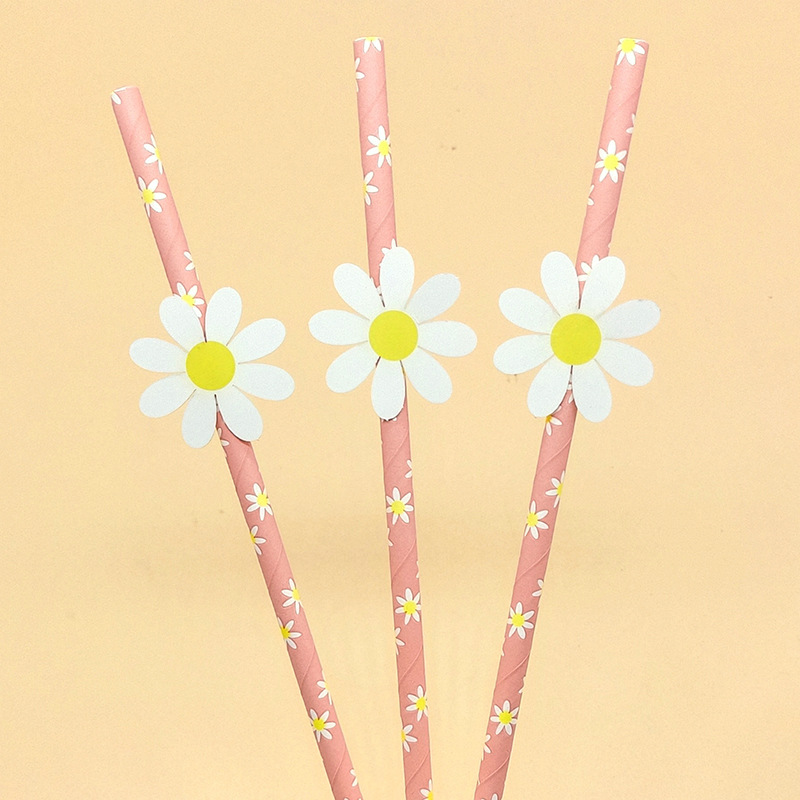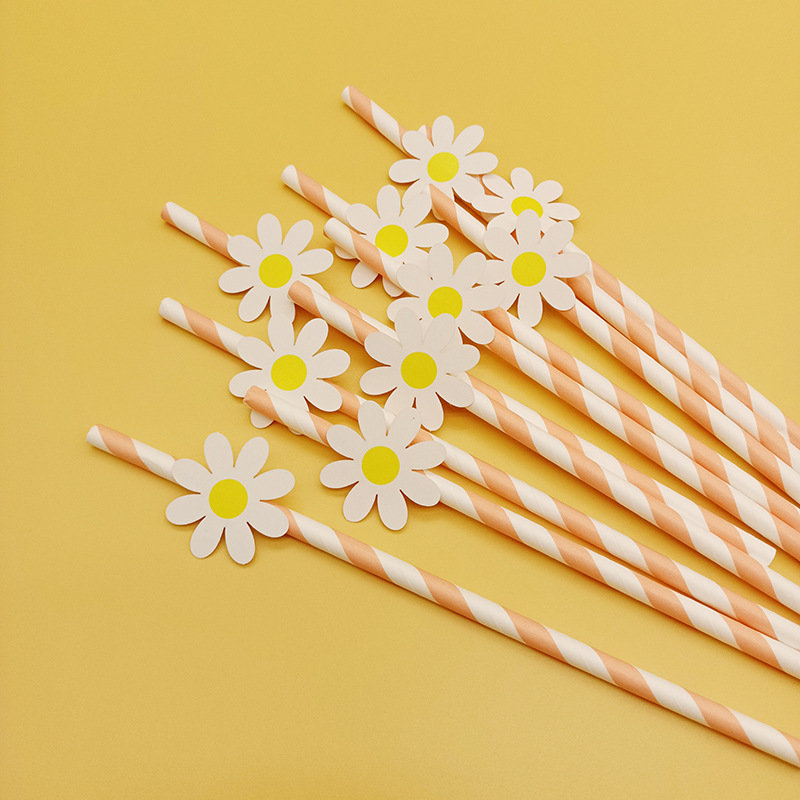 Margarita Rosa pequeña flor papel paja creativa fábrica en stock al por mayor fiesta creativa decoración de paja con tarjeta