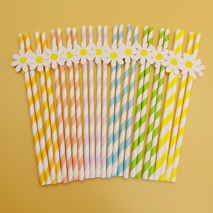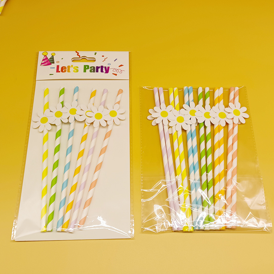 Daisy White Pink small Flower Paper Straw Tarjeta de paja desechable de decoración de fiesta transfronteriza