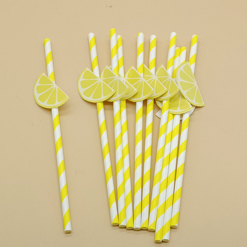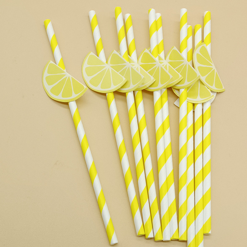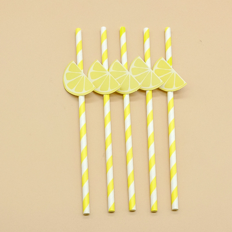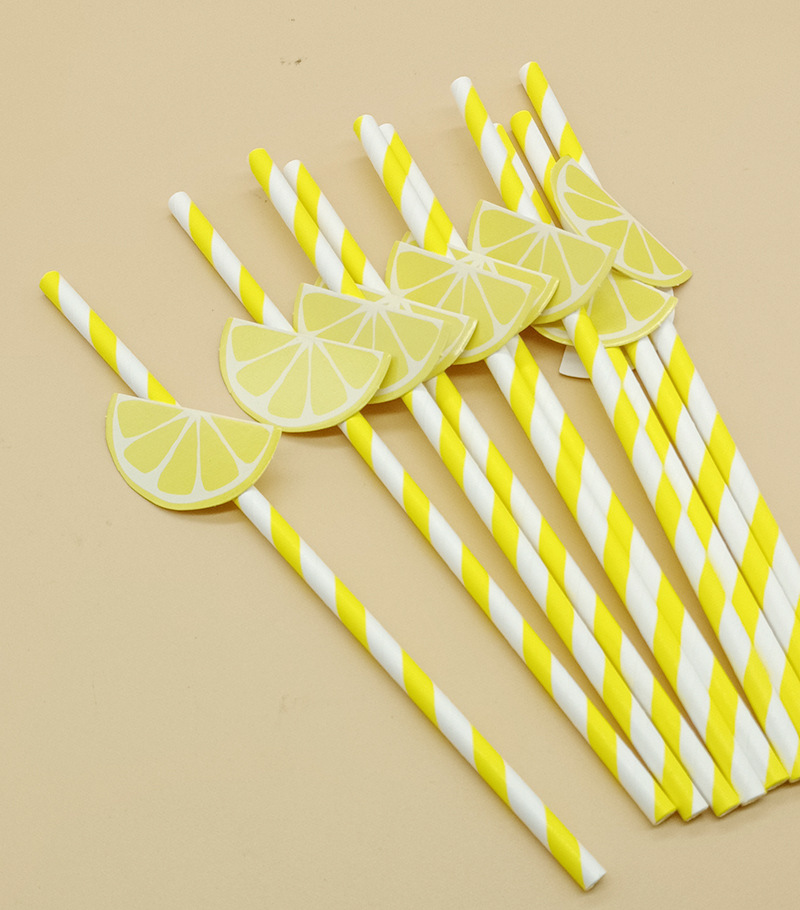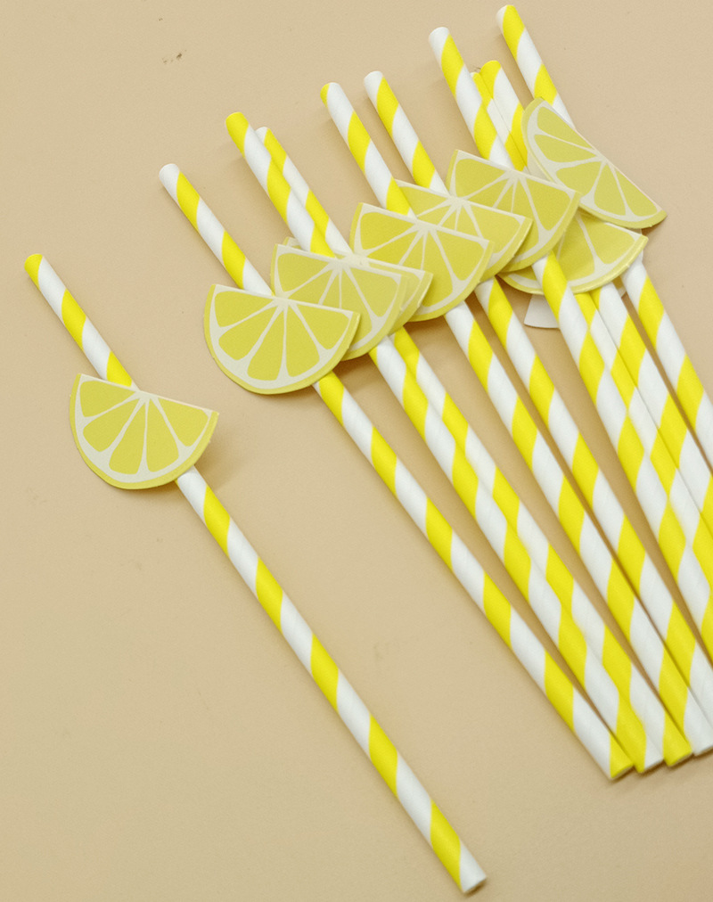 Paja de papel degradable desechable fruta creativa paja de limón decoración para hornear pastel plug-in leche té paja