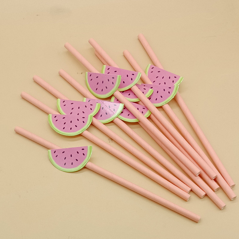 Paja de papel degradable desechable fruta creativa paja de fresa decoración para hornear pastel plug-in leche té paja