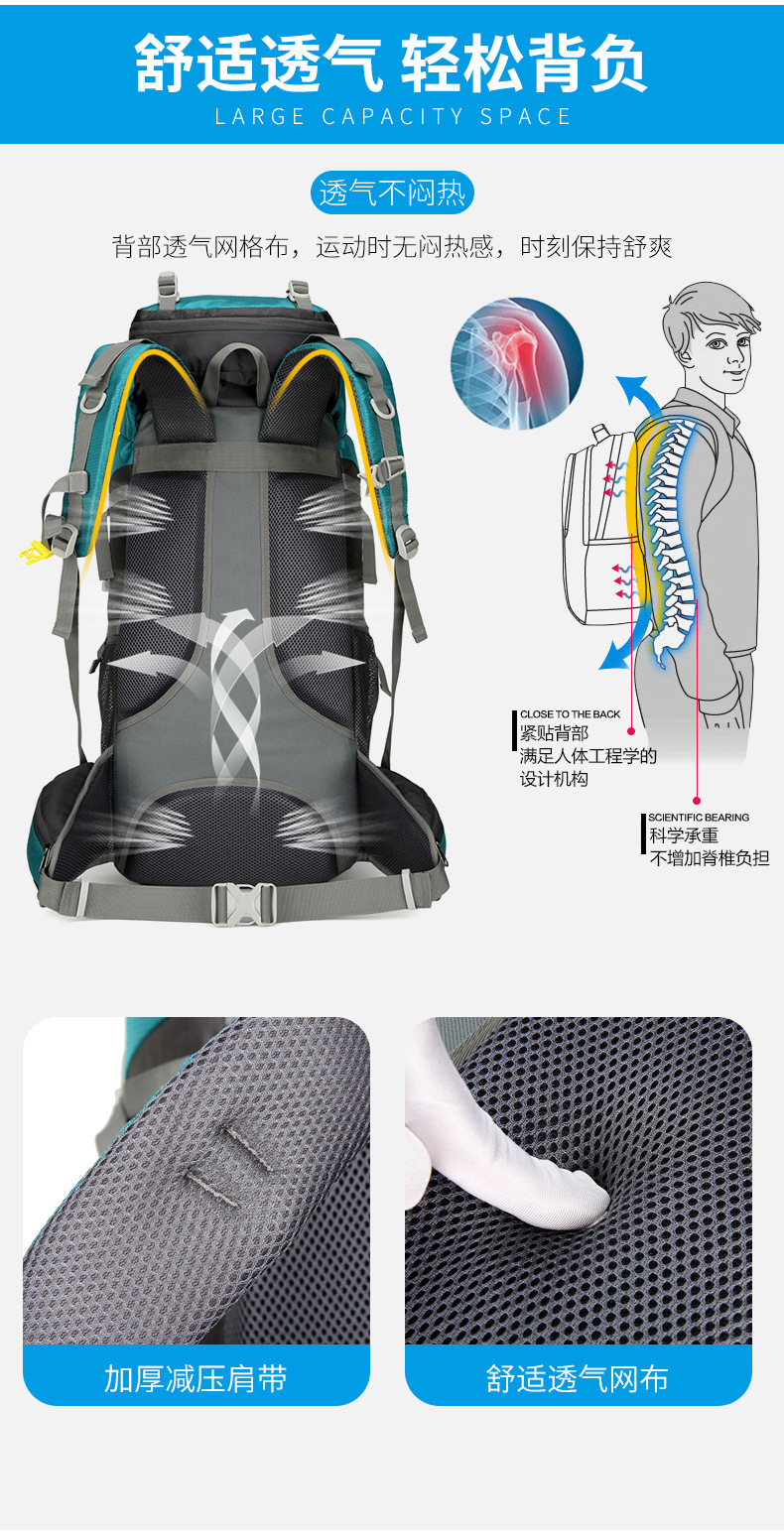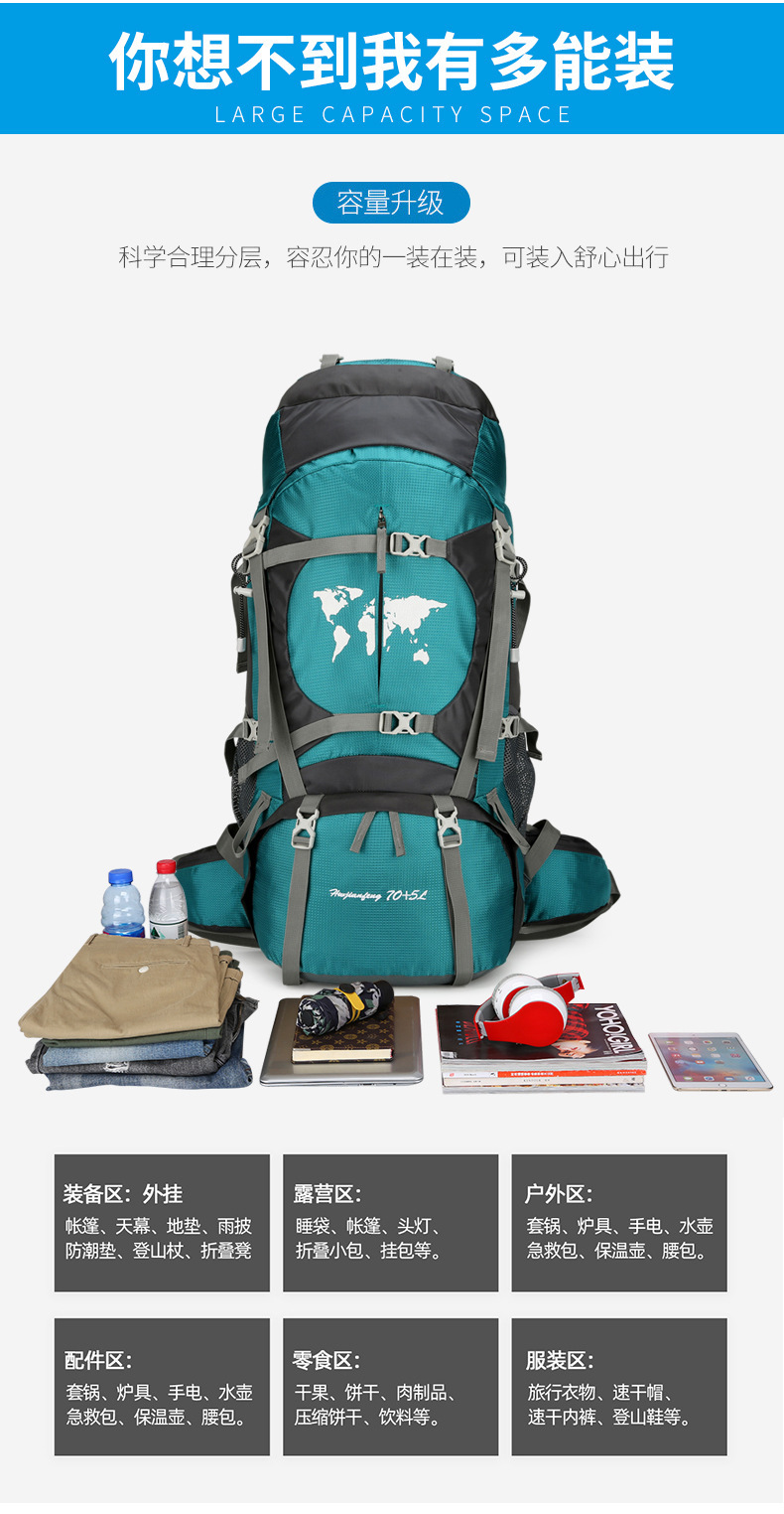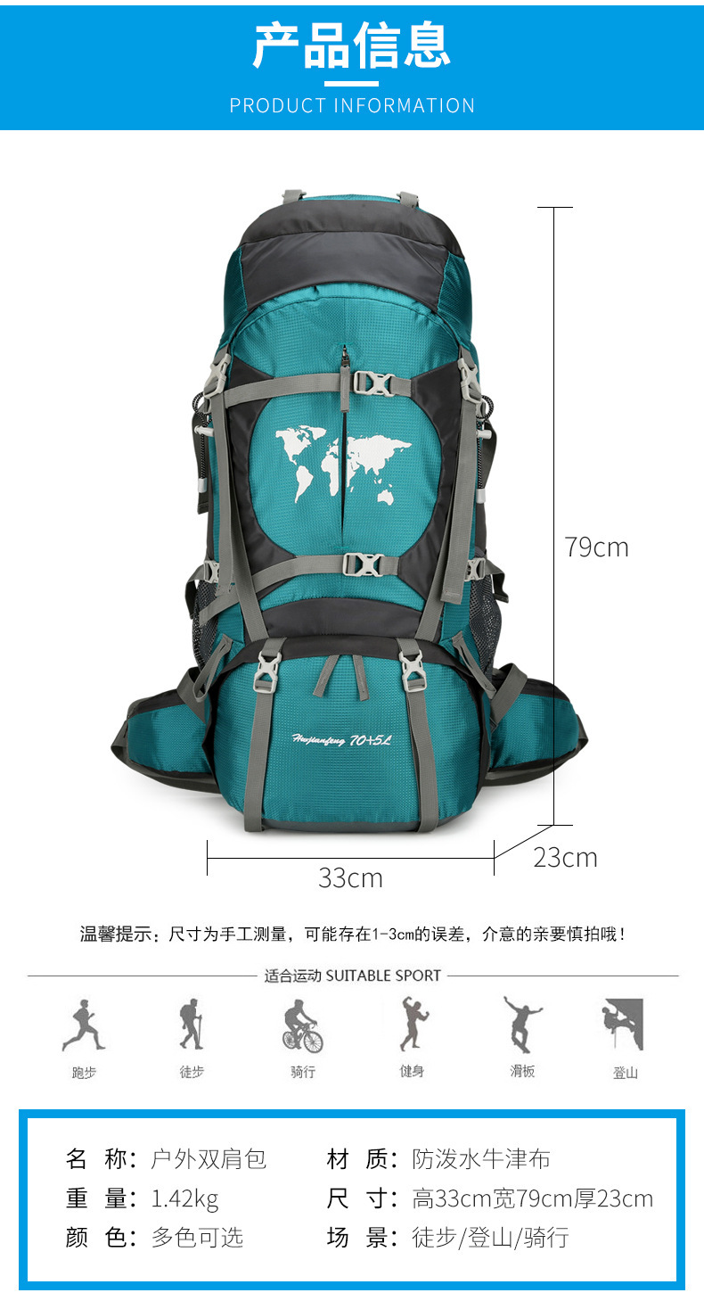Fábrica transfronteriza 70 litros bolsa de montañismo de gran capacidad tela Oxford mochila de senderismo al aire libre mochila de viaje para acampar