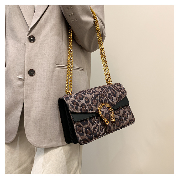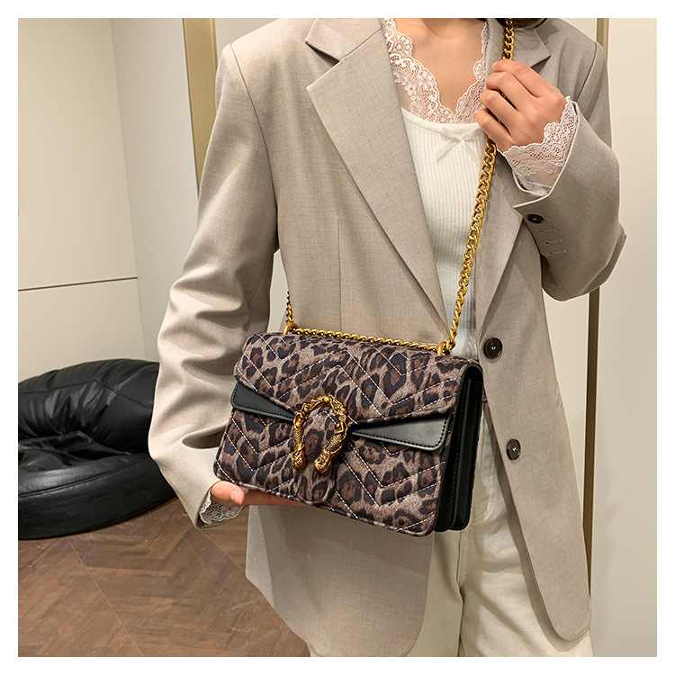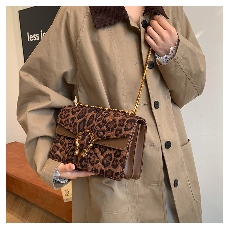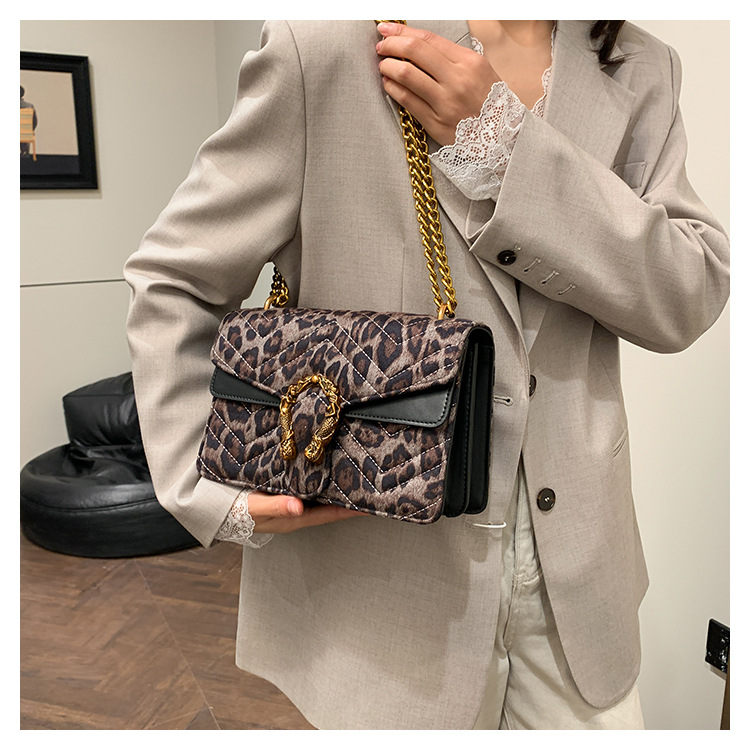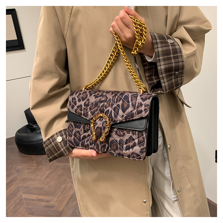 Bolso coreano de cadena de estilo de verano de 2025 nuevo retro leopardo estampado bolso de hombro de moda personalidad bordada bolso de mujer