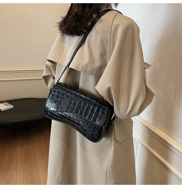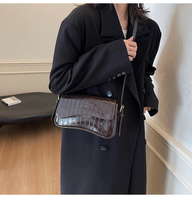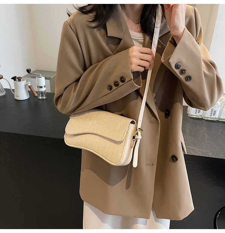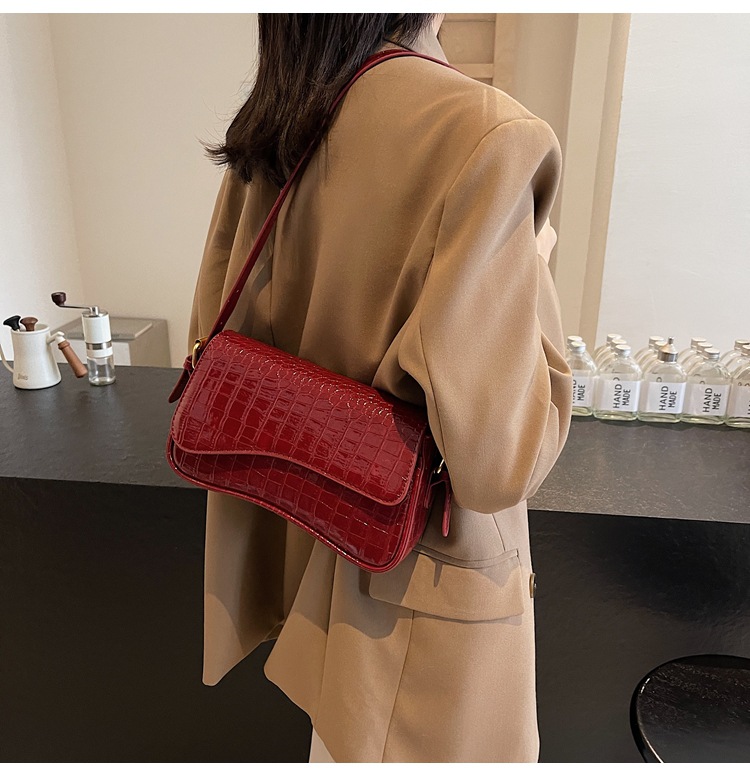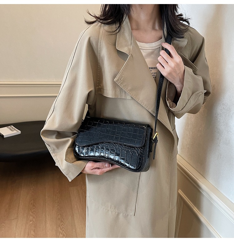 Bolso de textura transfronteriza 2025, nuevo bolso de hombro retro de piedra, piel esmaltada, bolso de moda de mujer
