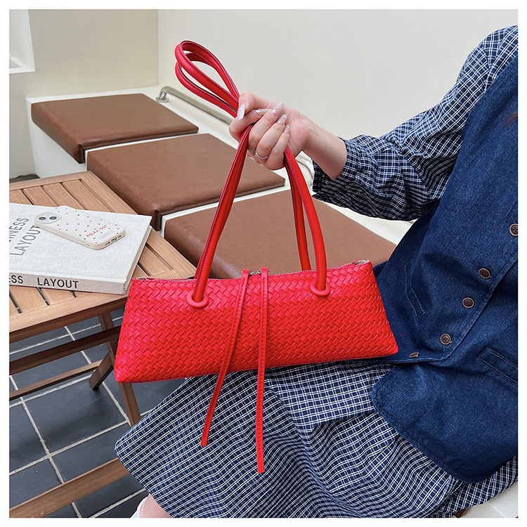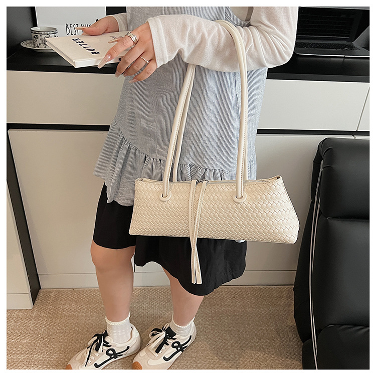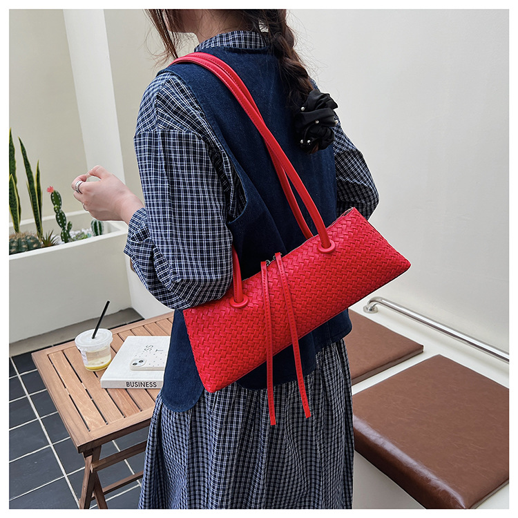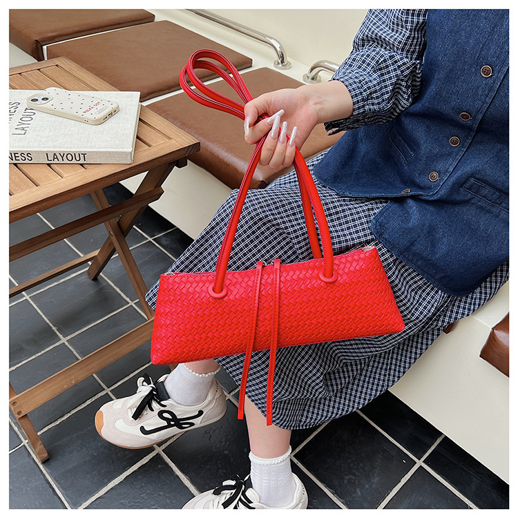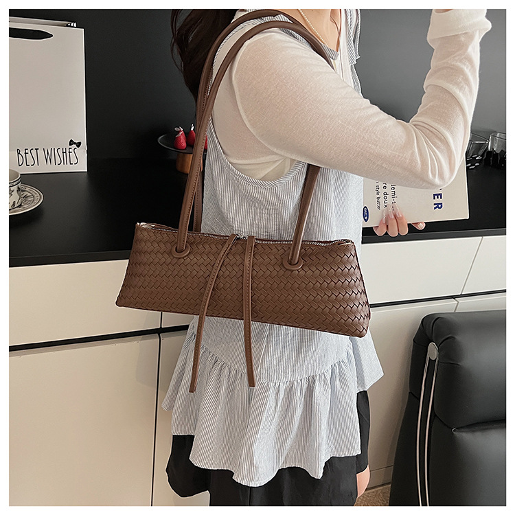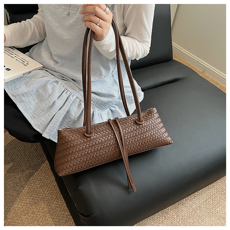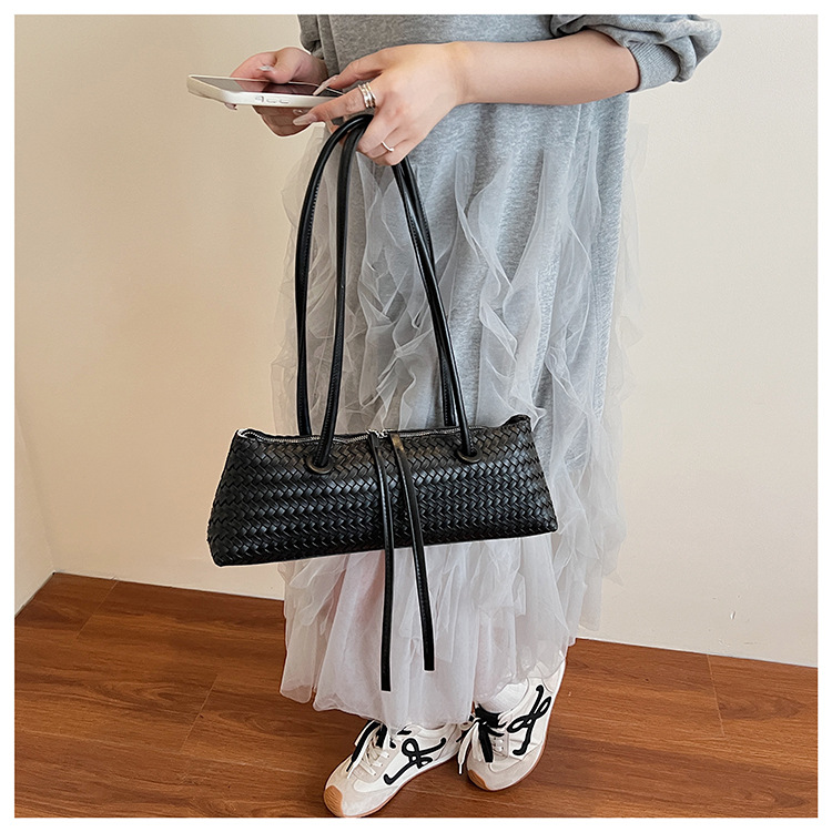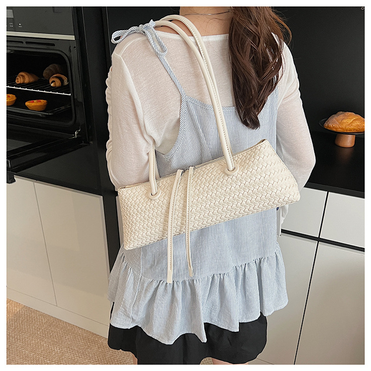Bolso de axila de textura transfronteriza 2025 verano nuevo bolso femenino bolso tejido de moda bolso de hombro retro de gran capacidad