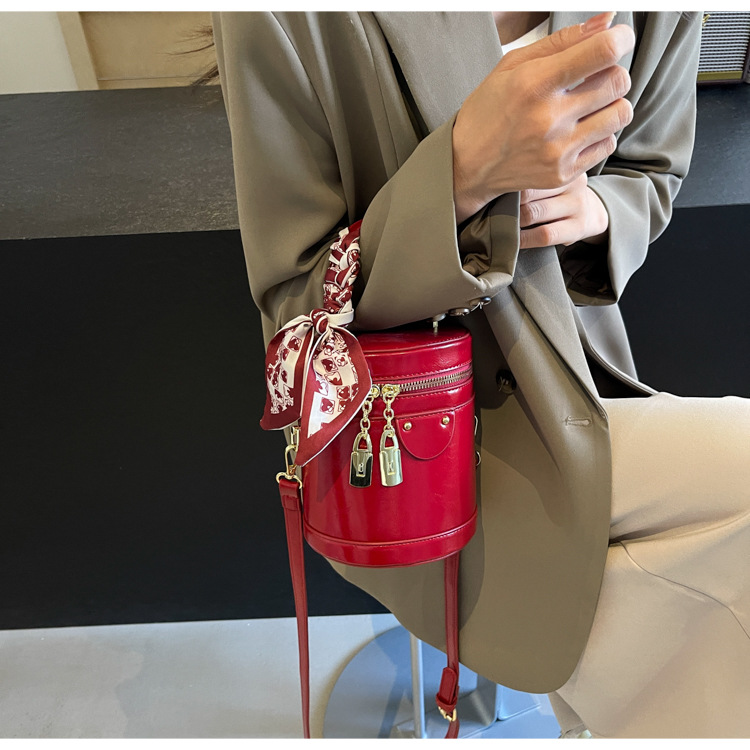 Bolso de cubo popular de este año, nuevo bolso de verano 2025, bolso de hombro de alta gama, bolso de mensajero retro de todo fósforo para mujer