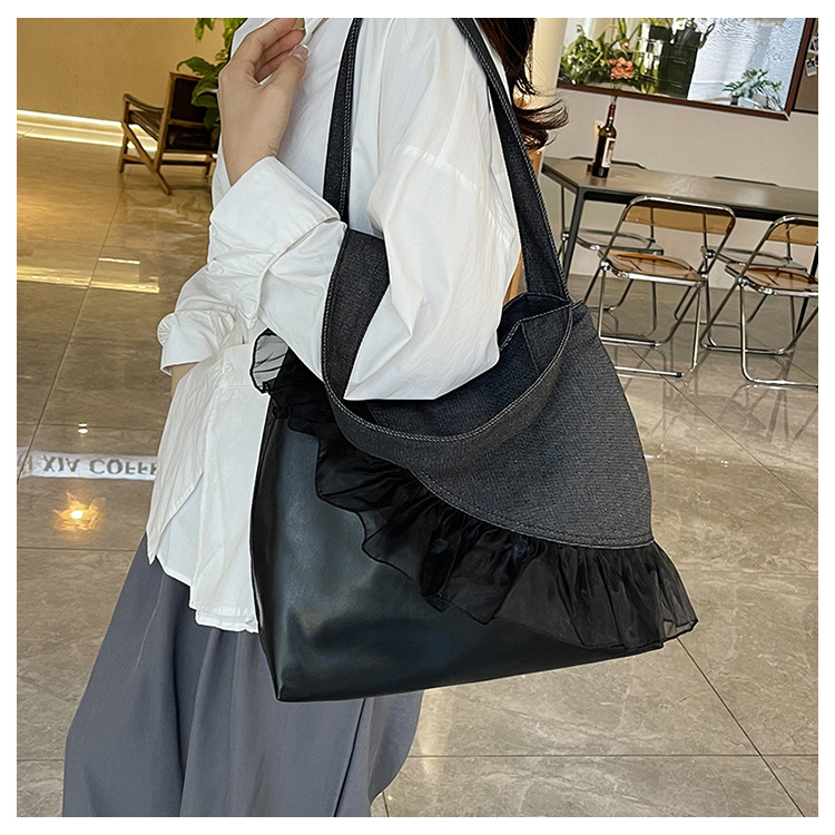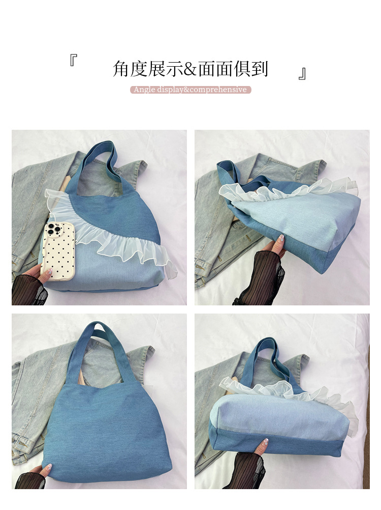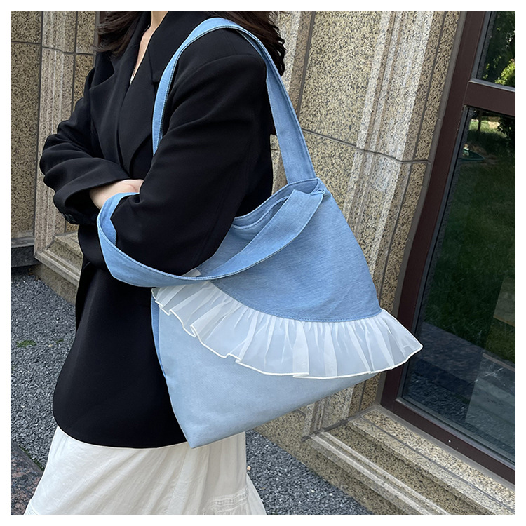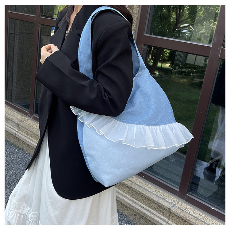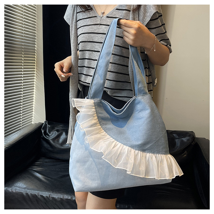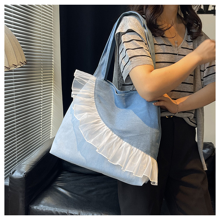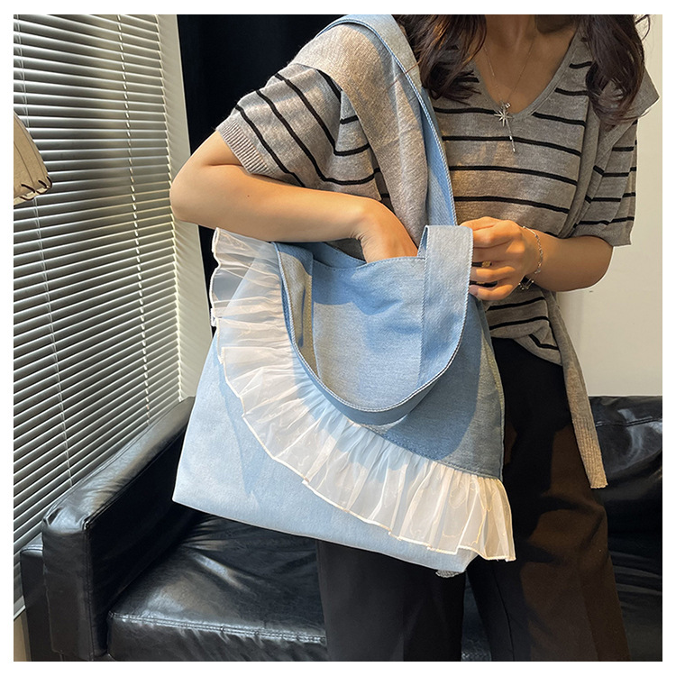 Versión coreana del bolso de nicho 2025 verano nuevo bolso femenino bolso de encaje lindo bolso de hombro de color de contraste de gran capacidad